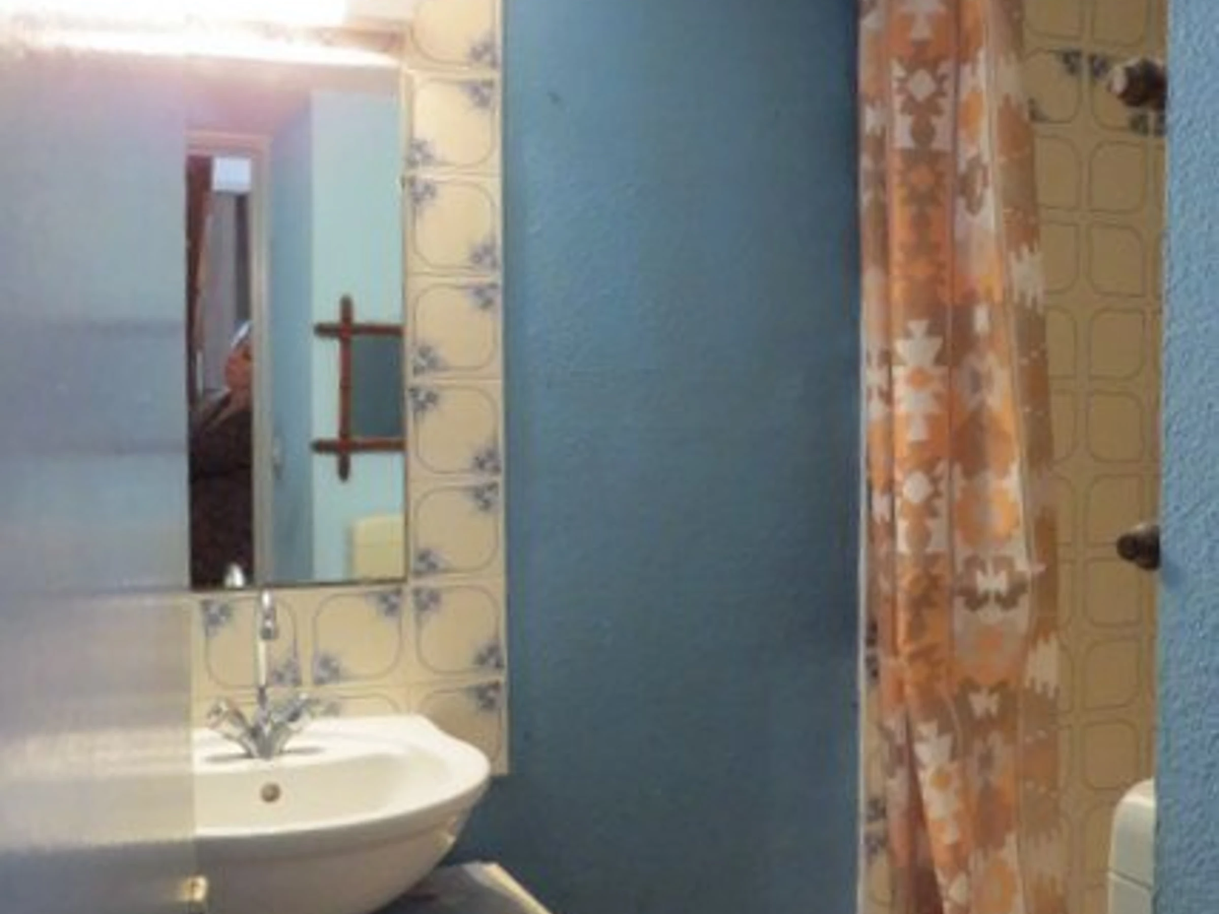 In a completely secure residence, small house comprising a living room with kitchen area equipped with fridge freezer, microwave, mini oven, washing machine, small dishwasher, BZ sofa, television and air conditioning.