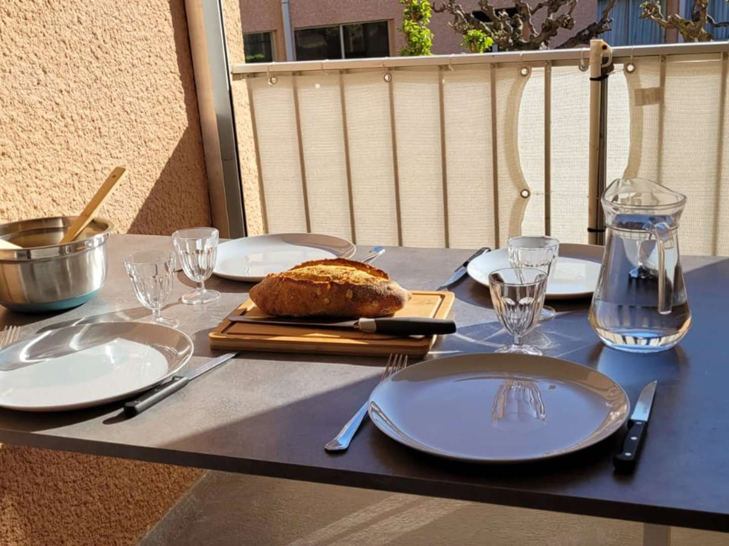 One bedroom with a 140cm double bed, a sleeping alcove with two bunk beds, and a bathroom with a shower and toilet. A terrace for outdoor dining!