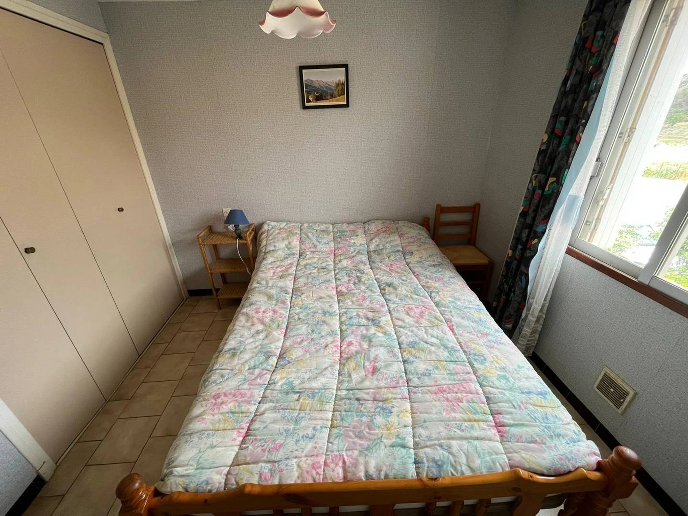 Upstairs a bedroom with double bed, bathroom with shower and toilet.
