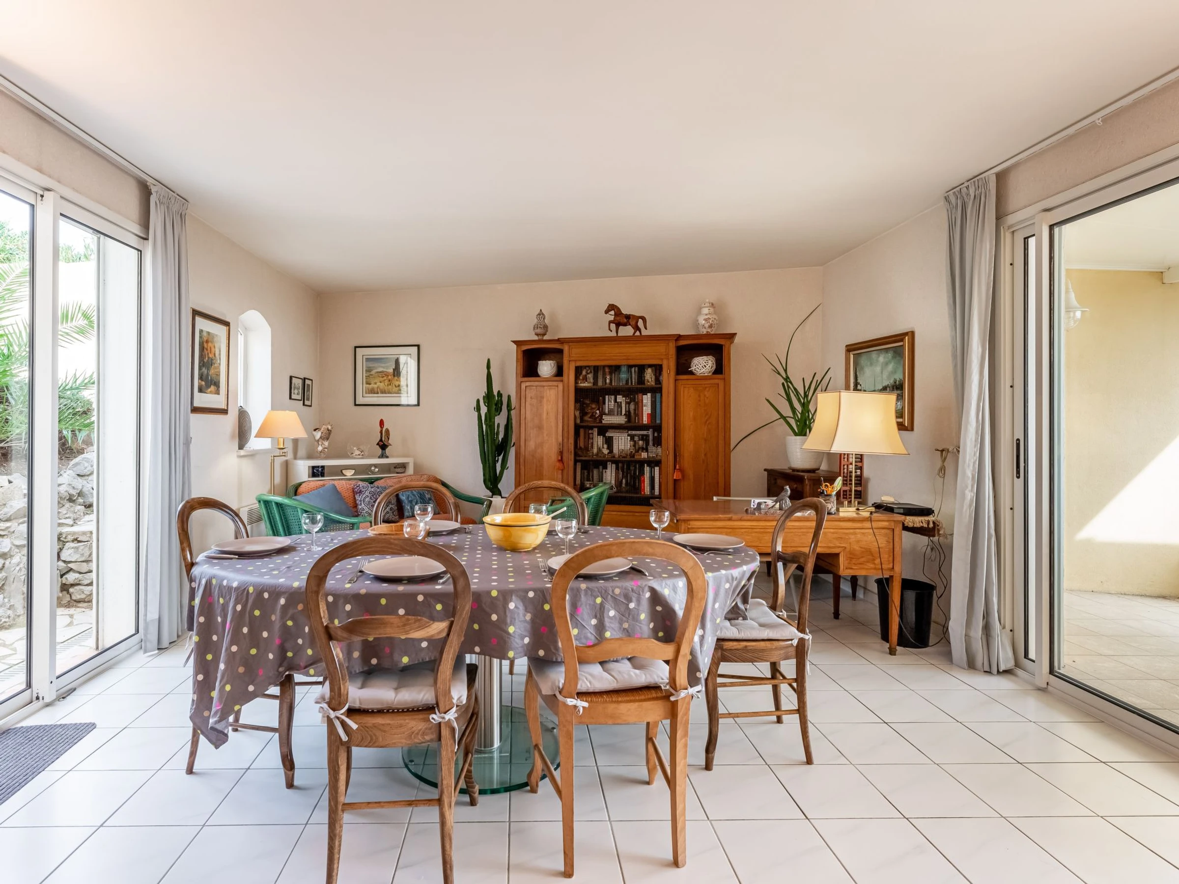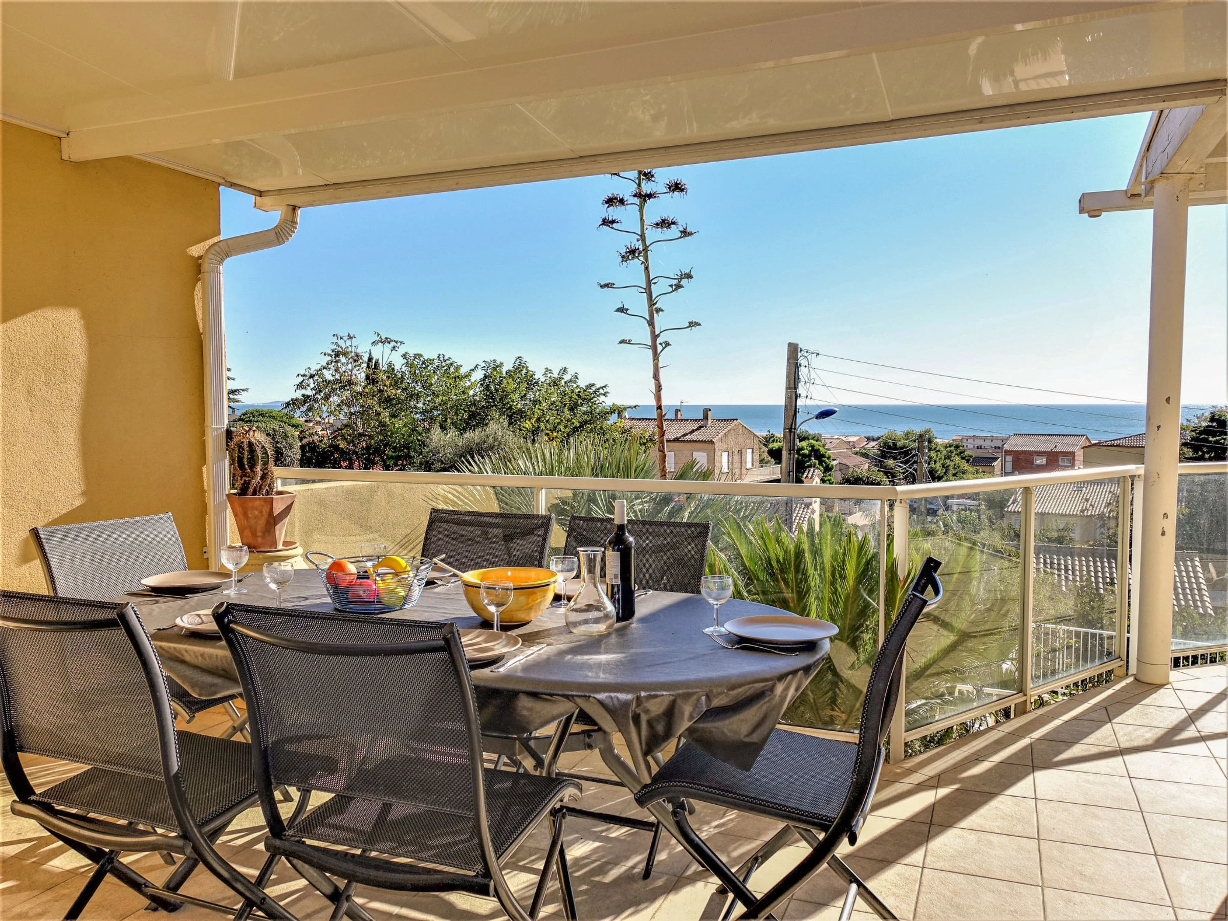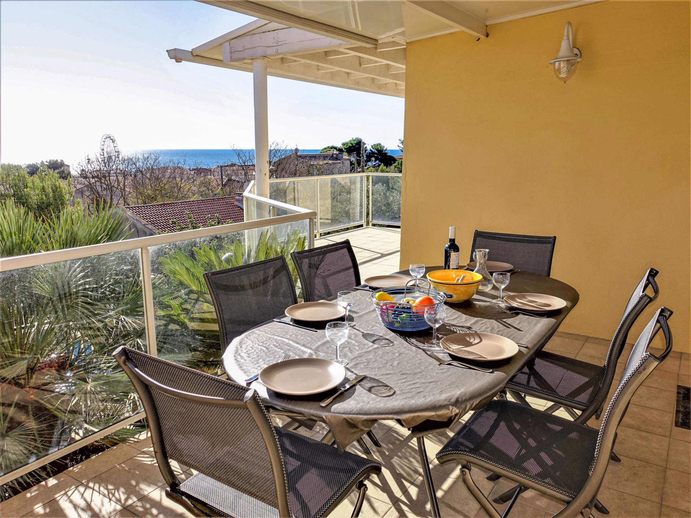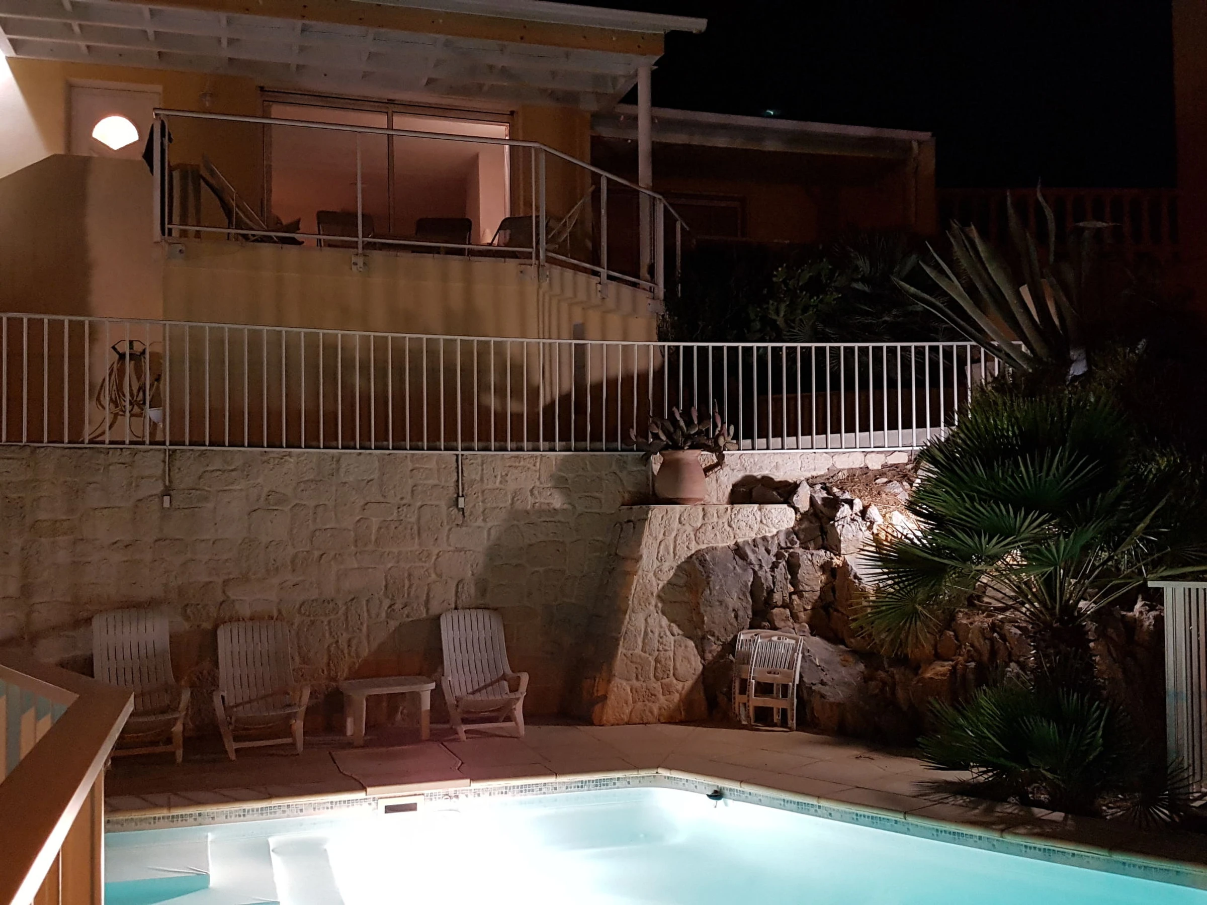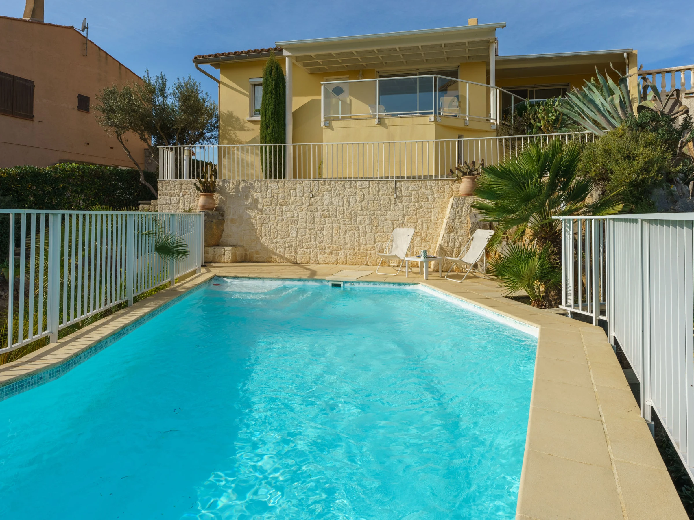 4-room house 110 m2. Comfortable and beautiful furnishings: living/dining room 50 m2 with open-hearth fireplace (only for decoration), TV (flat screen). Exit to the terrace, south-east facing position. 3 rooms, each room with 1 french bed (140 cm, length 190 cm). Kitchen (oven, dishwasher, 4 ceramic glass hob hotplates, microwave, freezer, electric coffee machine, Capsules for coffee machine (nespresso) extra). Exit to the terrace, west facing position. Shower, sep. WC. Electric heating, air-conditioning. Large garden 700 m2. Terrace furniture, barbecue. Very beautiful view of the sea and the swimming pool. Facilities: washing machine, hair dryer. Internet (WiFi, free). Parking (fenced). Please note: smoke alarm. Please note: The barbecue is indoor, in the kitchen. Please note: Fiber optic connection available. Please note: Access to the front of the house and the swimming pool via stair steps. Full access is possible at the rear of the house, on the kitchen side. The interior of the house is also on one level. Offer by a private individual according to Art. 155, IV of CGI. [hidden]