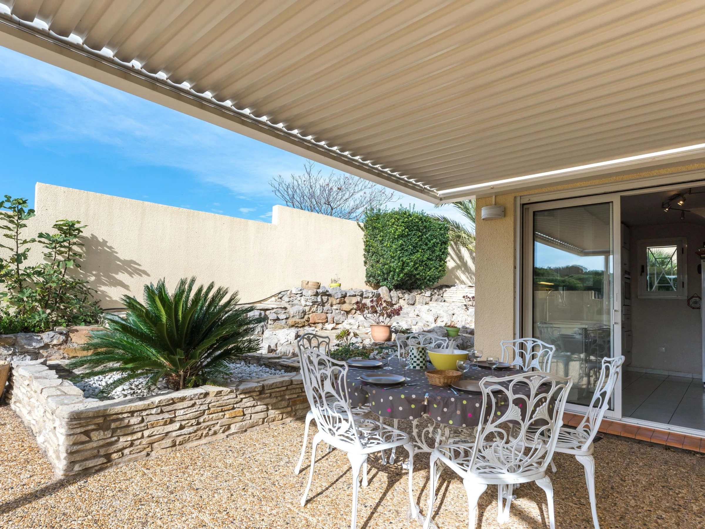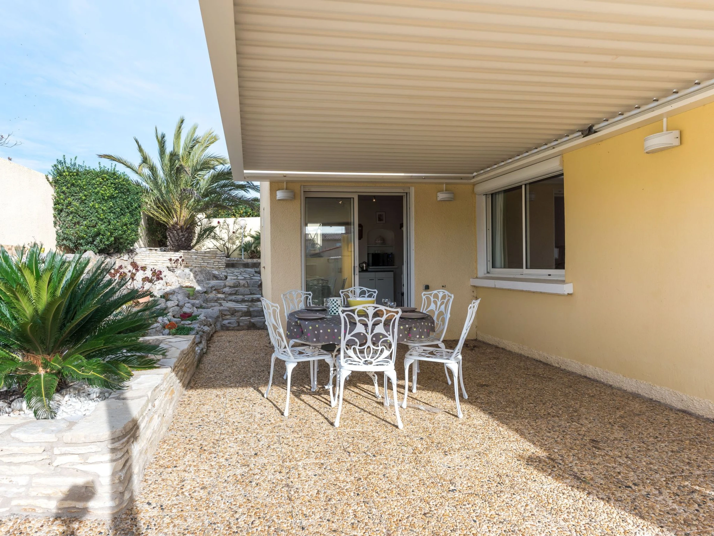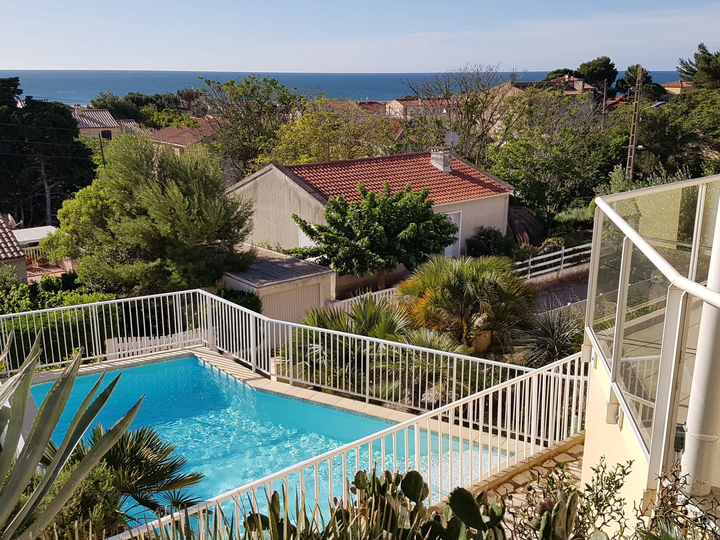 Single-family house "La Maison des Cades". In the resort 400 m from the centre of St Pierre La Mer, in a quiet position, 500 m from the sea. Private: well-kept garden 700 m2 (fenced), swimming pool (8 x 4 m, depth 100 - 160 cm, seasonal availability: [hidden] - [hidden] with salt-electrolysis pool-cleaning system. Outdoor shower, terrace, garden furniture, barbecue, parking. Grocery, restaurant, bar 300 m, bus stop 350 m, diving center 2 km. Sports harbour 1.5 km, sailing school 1.5 km, riding stable 3.5 km. Nearby attractions: Espace Balnéoludique de Gruissan 10 km, Réserve Africaine de Sigean 36 km, Cité de Carcassonne 78 km. The keys‘ handover takes place by the agency in Narbonne Plage, 3 km. Please note: The barbecue is indoor, in the kitchen. A video surveillance camera is installed outside, on the parking side.