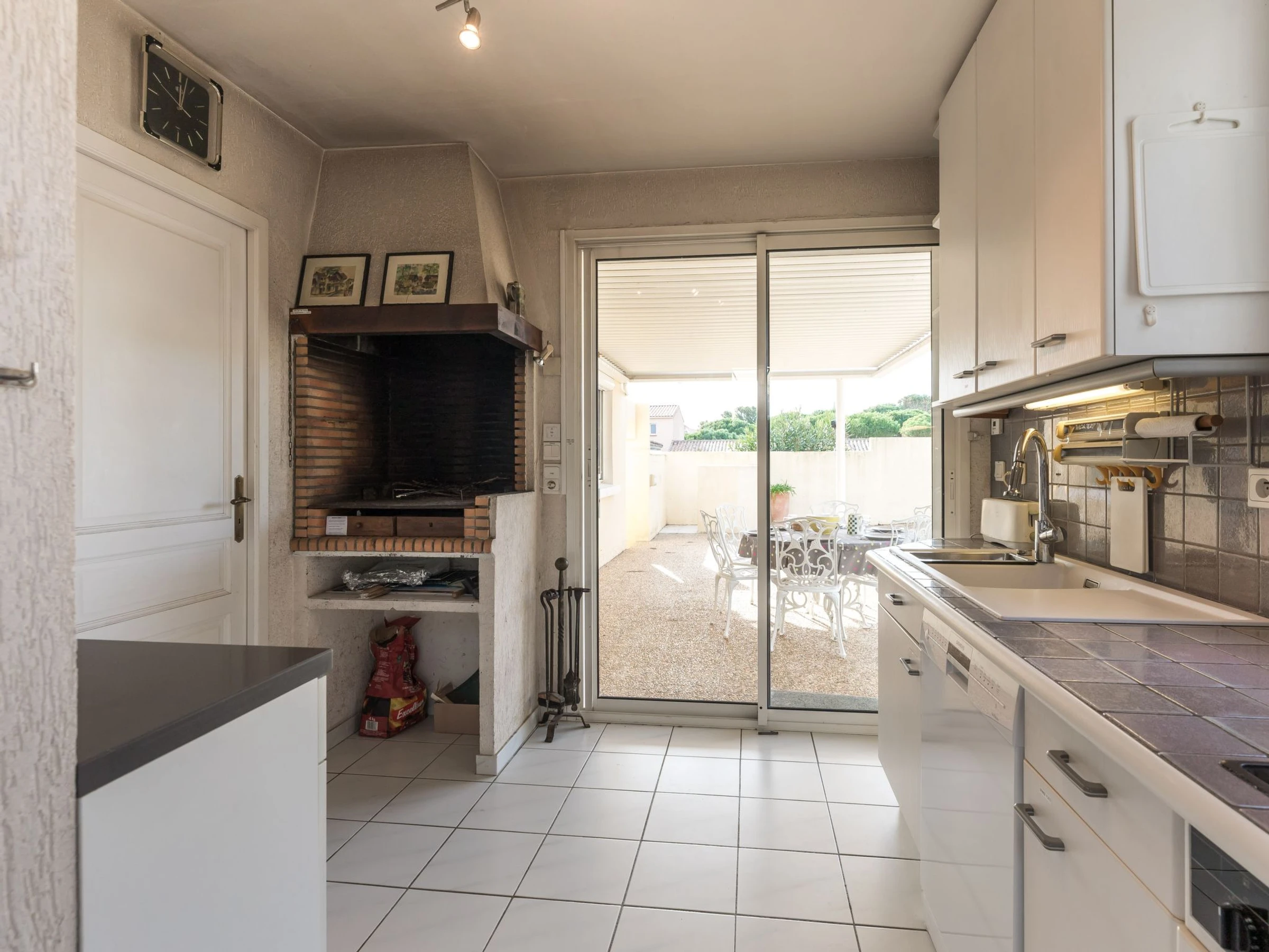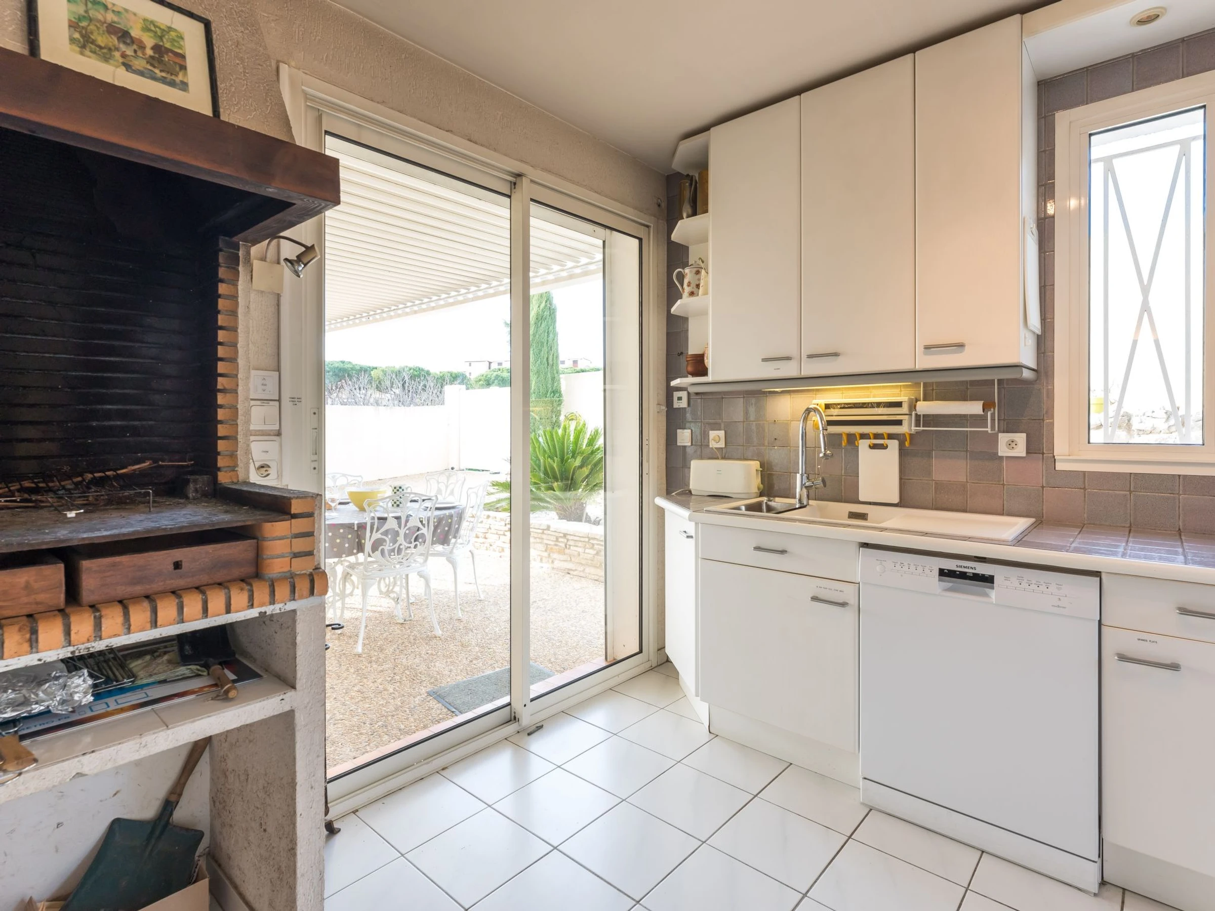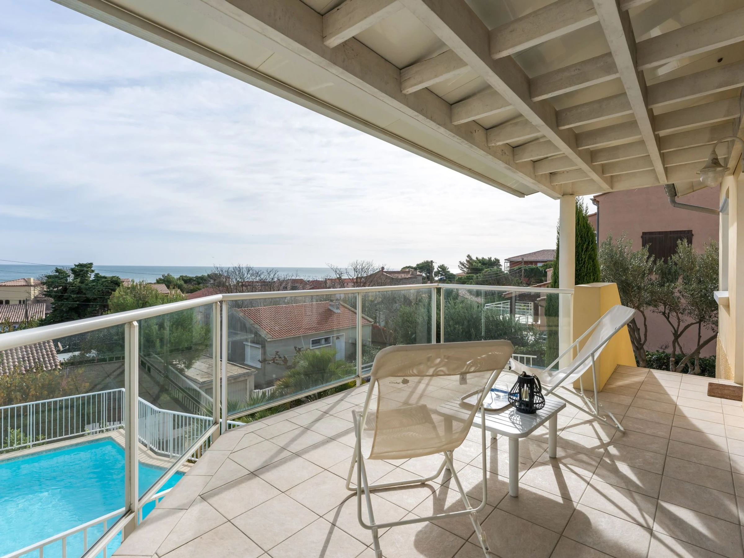 Single-family house "La Maison des Cades". In the resort 400 m from the centre of St Pierre La Mer, in a quiet position, 500 m from the sea. Private: well-kept garden 700 m2 (fenced), swimming pool (8 x 4 m, depth 100 - 160 cm, seasonal availability: [hidden] - [hidden] with salt-electrolysis pool-cleaning system. Outdoor shower, terrace, garden furniture, barbecue, parking. Grocery, restaurant, bar 300 m, bus stop 350 m, diving center 2 km. Sports harbour 1.5 km, sailing school 1.5 km, riding stable 3.5 km. Nearby attractions: Espace Balnéoludique de Gruissan 10 km, Réserve Africaine de Sigean 36 km, Cité de Carcassonne 78 km. The keys‘ handover takes place by the agency in Narbonne Plage, 3 km. Please note: The barbecue is indoor, in the kitchen. A video surveillance camera is installed outside, on the parking side.