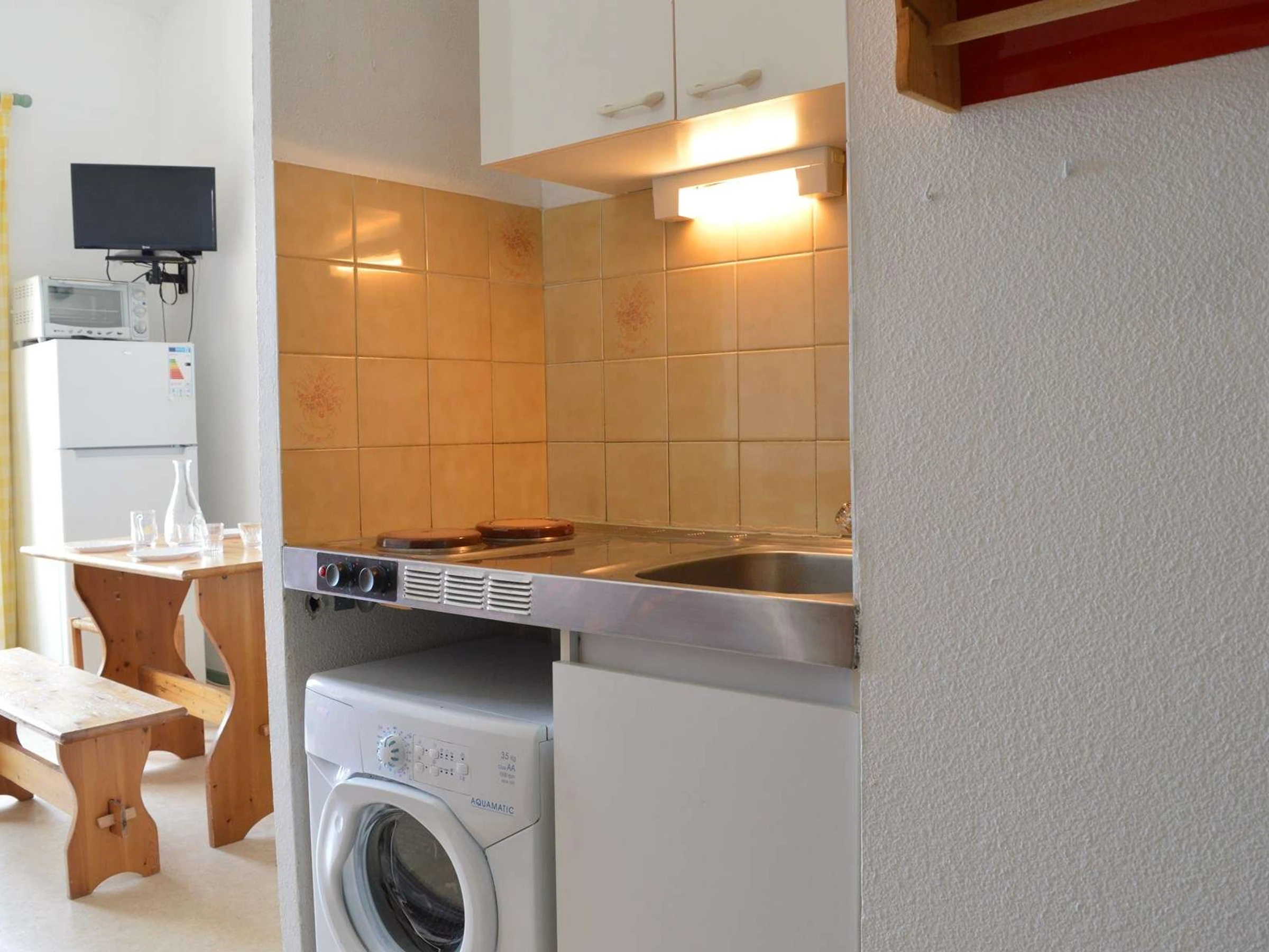 This furnished holiday rental, located on the 3rd floor (without elevator), includes a living room with a sofa bed for two people and a television (subject to good reception), a fully equipped kitchenette, a sleeping alcove with two single bunk beds, and a bathroom with toilet.