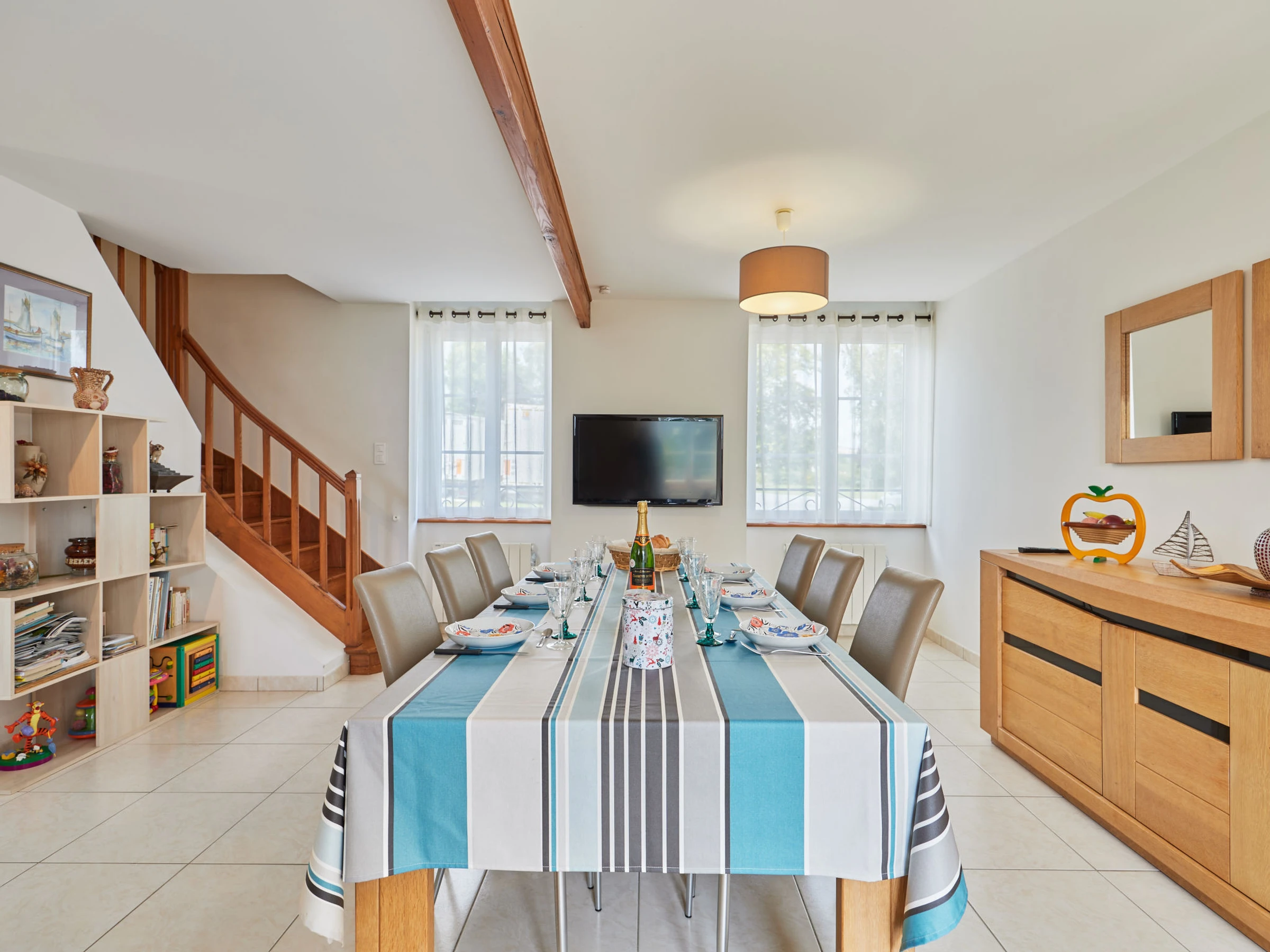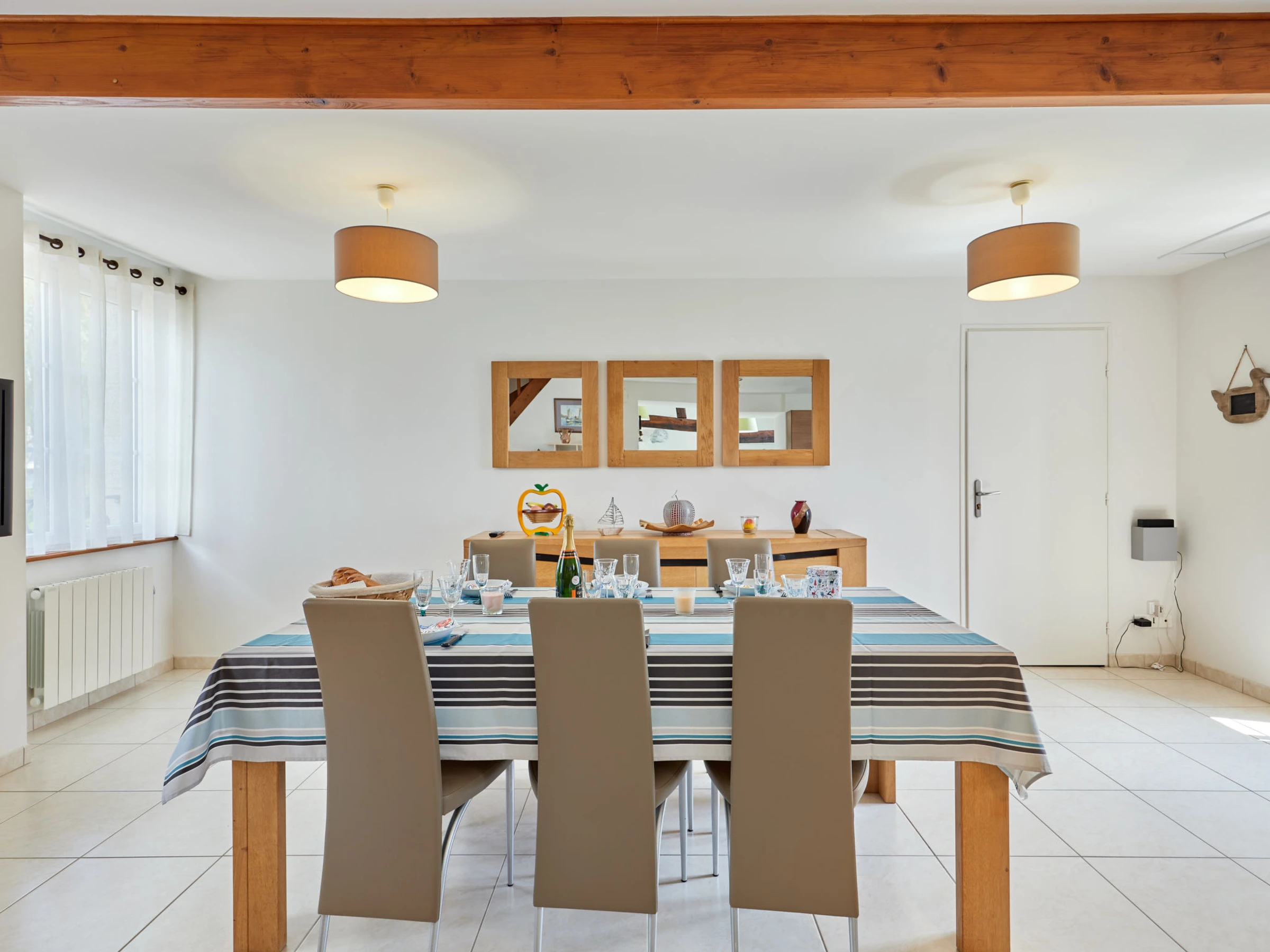 "Domaine 2", 4-room terraced house 120 m2 on 2 levels. Comfortable and beautiful furnishings: living/dining room with open-hearth fireplace (only for decoration), TV (flat screen). Exit to the terrace. 2 rooms (140 cm, length 190 cm). Open kitchen (4 hot plates, oven, dishwasher, toaster, kettle, electric coffee machine). Sep. WC. Electric heating. Upper floor: bath/WC. Terrace. Terrace furniture, barbecue, deck chairs (4). Facilities: washing machine, children's high chair, baby cot for up to 3 year olds. Internet (WiFi, free). Parking at the house. Please note: 2 small pets/ dogs allowed. Smoke alarm. Offer by a private individual according to Art. 155, IV of CGI.