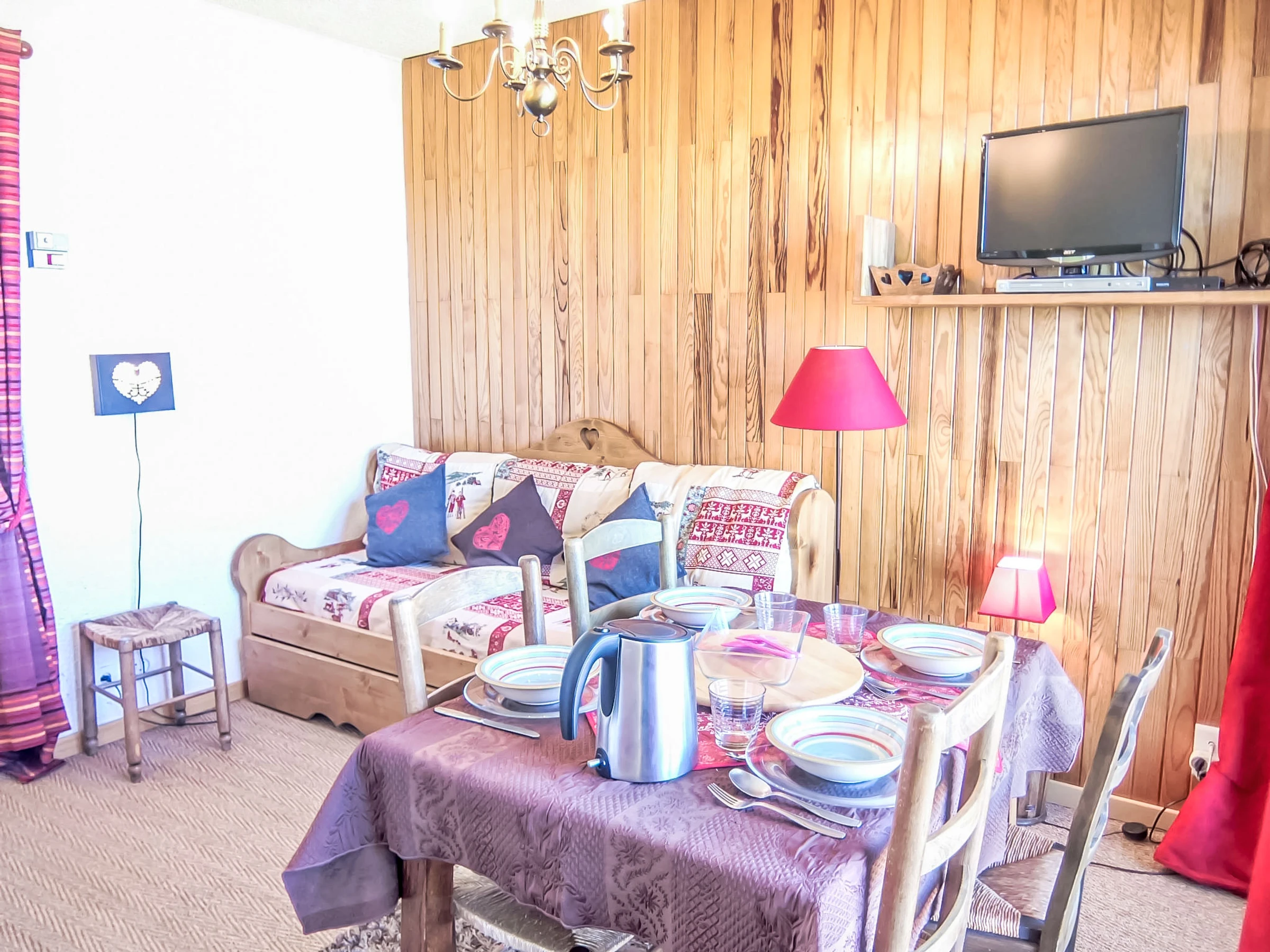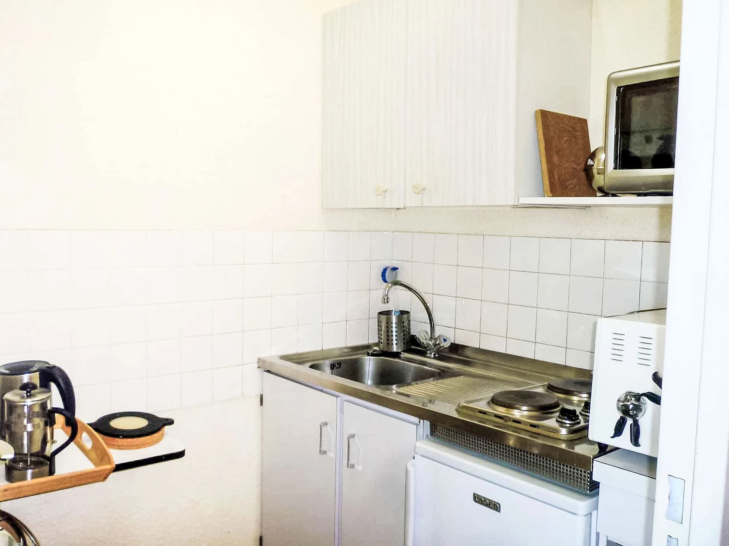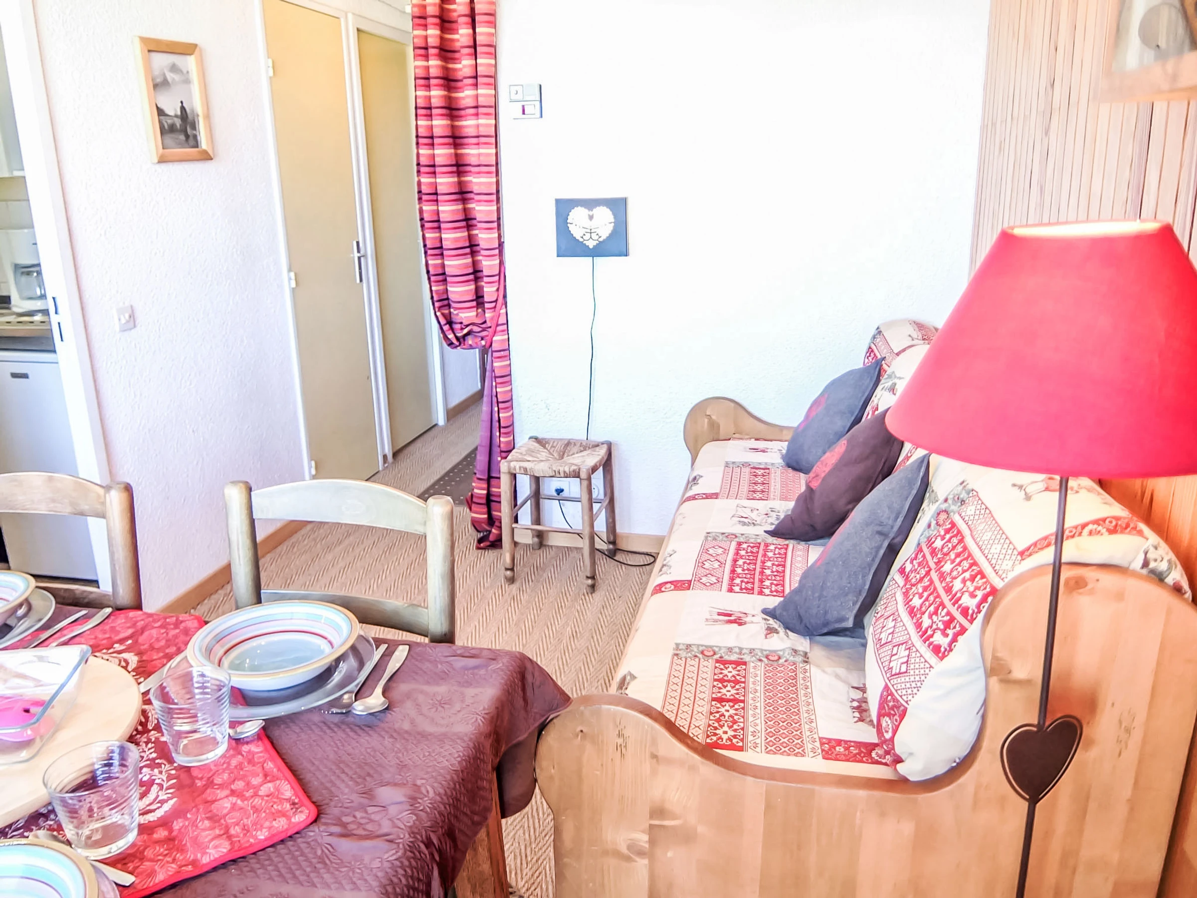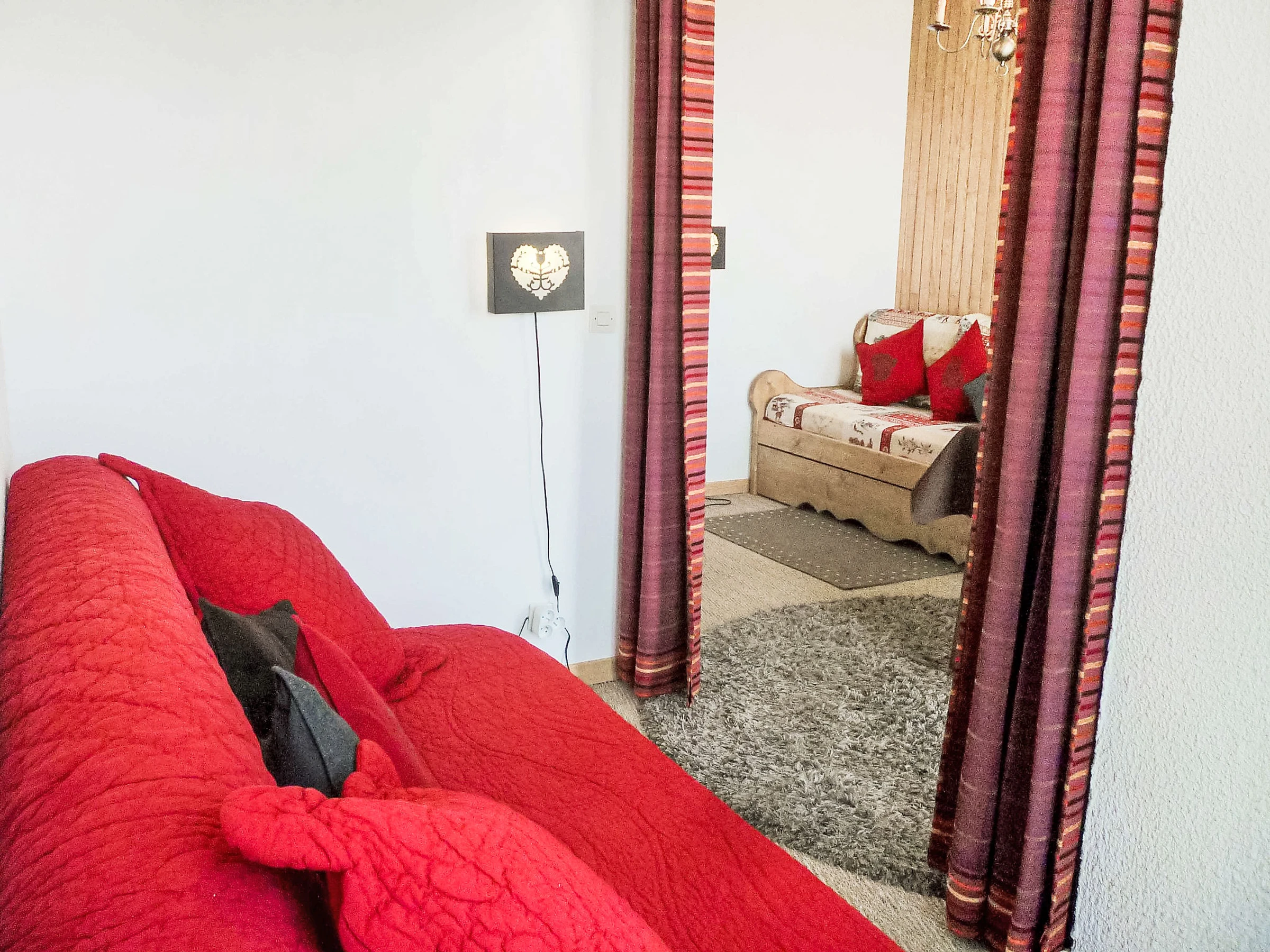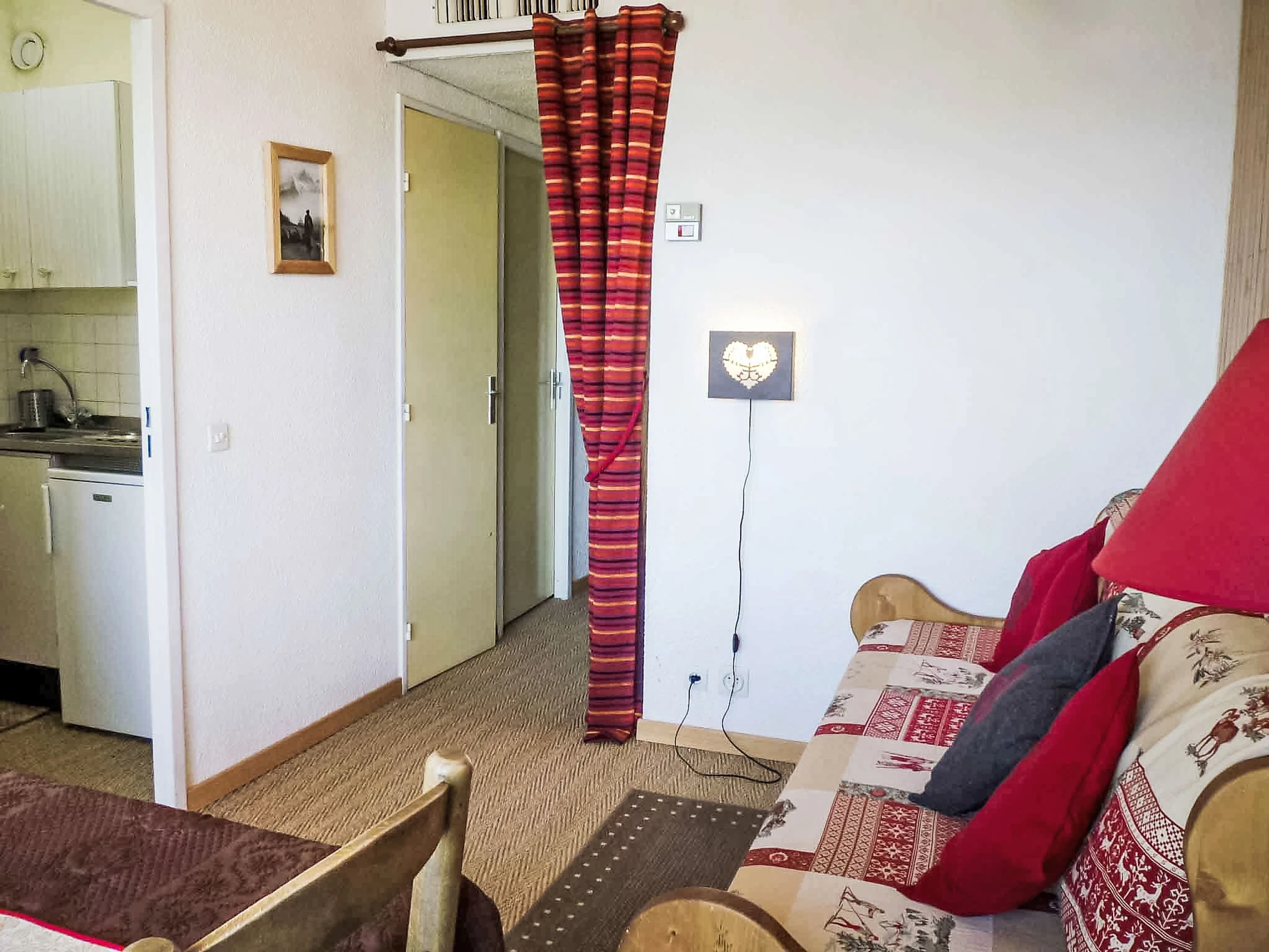 1-room apartment 23 m2 on 7th floor, north facing position. Beautiful and cosy furnishings: living/dining room with panoramic window with 1 pull-out bed (2 pers. 2 x 80 cm, length 190 cm), TV (flat screen), DVD. Exit to the balcony. Alcove with curtain with 1 double sofabed (140 cm, length 190 cm). Small kitchen (2 hot plates, mini-oven, toaster, kettle, microwave, electric coffee machine). Bathroom, sep. WC. Heating. Parquet floors. Balcony 4 m2, north facing position. Marvellous panoramic view of the mountains, the valley and the resort. Facilities: hair dryer. Internet (WiFi, extra). Please note: non-smokers only. Smoke alarm. FOR THOSE GUESTS ARRIVING BY BUS, please contact us 48 hrs in advance to arrange key collection. Instead of an enclosed bedroom, some sleeping areas are located in an open-plan area (gallery, alcove, etc.). Offer by a private individual according to Art. 155, IV of CGI.