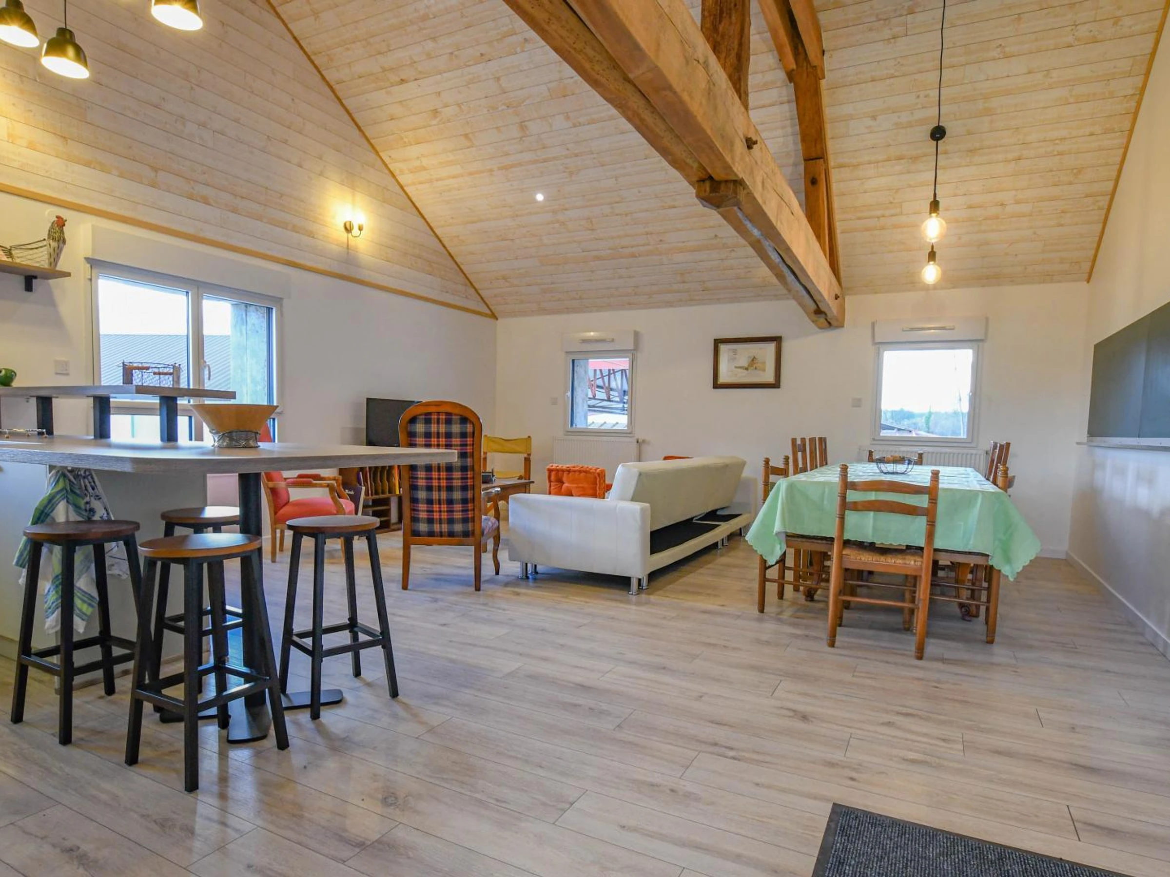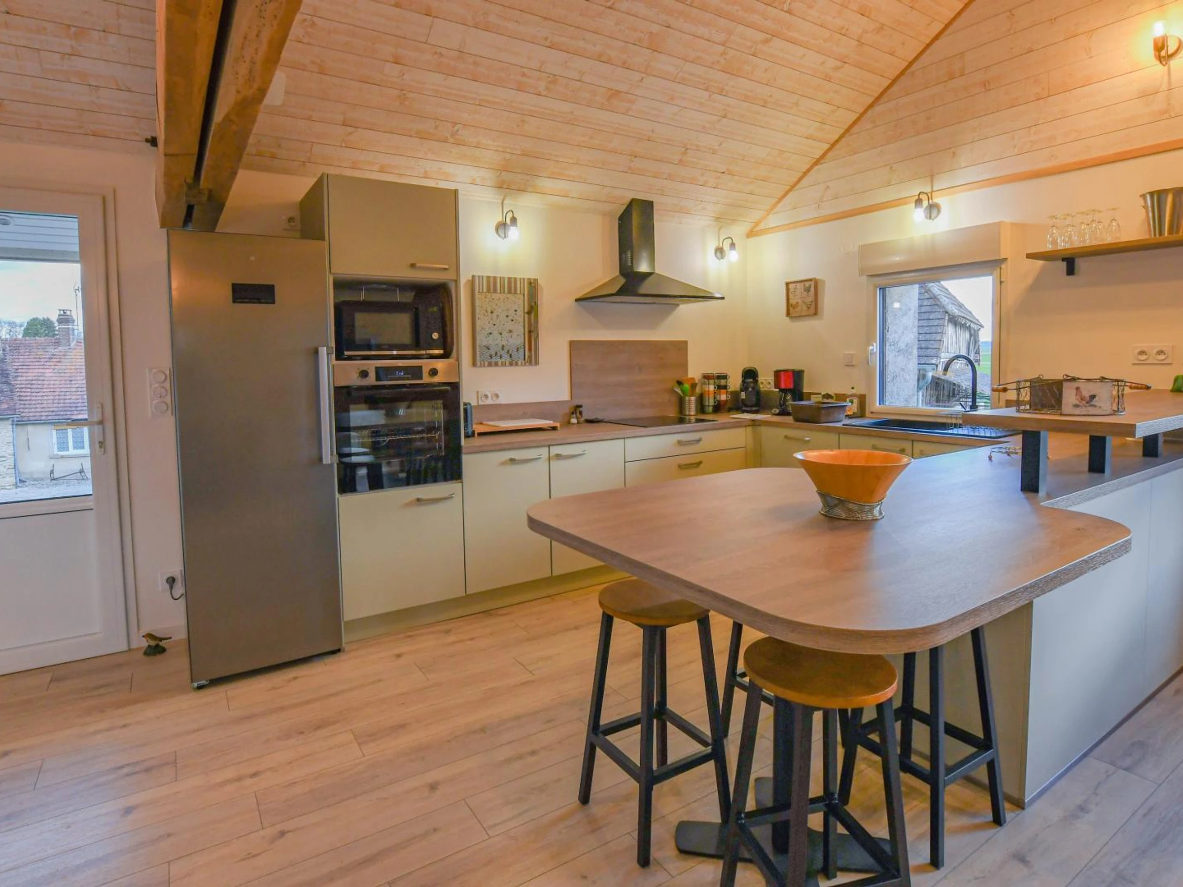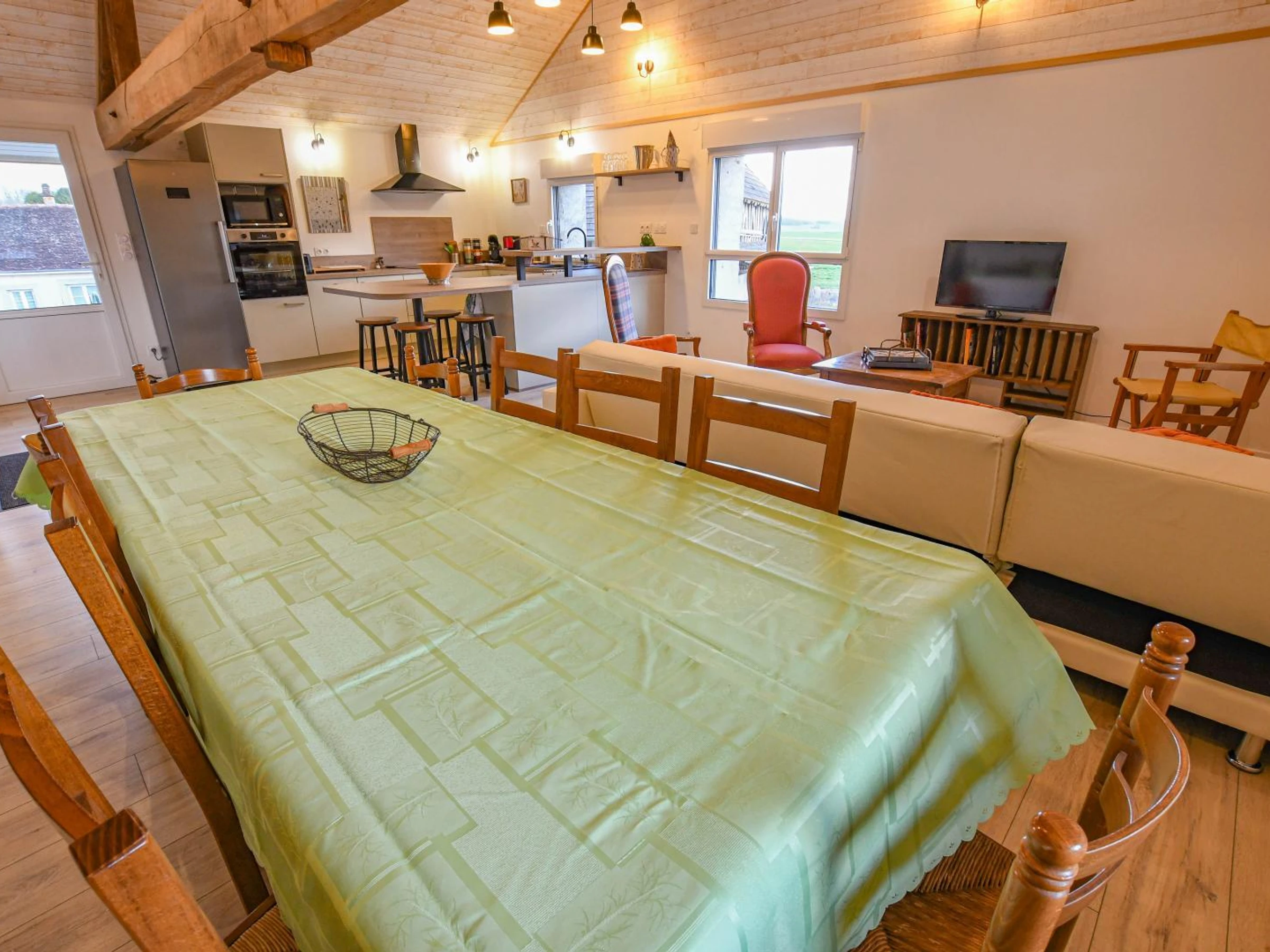 This charming property can accommodate up to 12 people and comprises two separate accommodations. The main stone house, warm and inviting, sleeps 10. It is located above a shop selling local produce, a true invitation to discover the flavors of the region. Just below, you'll find a selection of local and artisanal products from the property and neighboring producers. The house features a living area with a fully equipped kitchen, a lounge and dining area perfect for socializing, a bathroom (shower, sink, toilet), and a separate toilet. For sleeping, there is a double bedroom and two family bedrooms, each with a double bed and two single beds on a mezzanine. For added privacy, a separate, ground-floor annex for two people is also available on the property, ideal for a couple or guests seeking a quieter space. Just 25 minutes from Troyes and 10 minutes from Bar-sur-Seine, near the Champagne vineyards and in the heart of an organic farm, experience an authentic and immersive stay in a unique setting that blends nature, local produce, and traditional craftsmanship. Your stay will take place in a vibrant and fascinating environment: the farm houses a brewery, a malt house, and a craft distillery, all committed to organic practices. Depending on the season, you can observe the farm's activities, discover the inner workings of grain processing, or simply enjoy the unique atmosphere of a place where agriculture and craftsmanship meet. You will have the opportunity to attend tours and tastings of our beers (by reservation) or even participate in one of our pizza nights. The flour from our grains is milled on-site, as is the wood-fired bread that we sell at the farm twice a week.