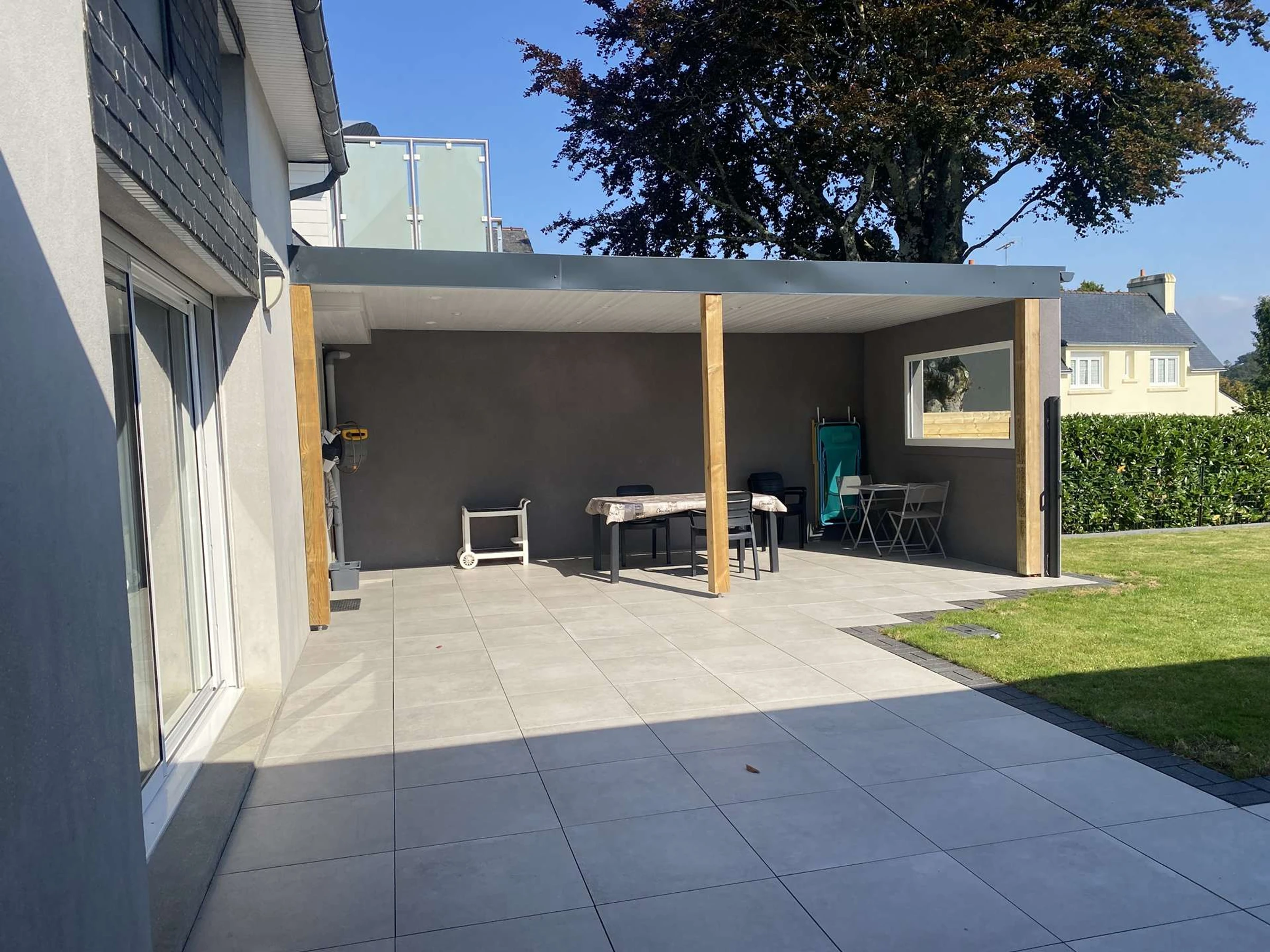- A small patio with sun loungers