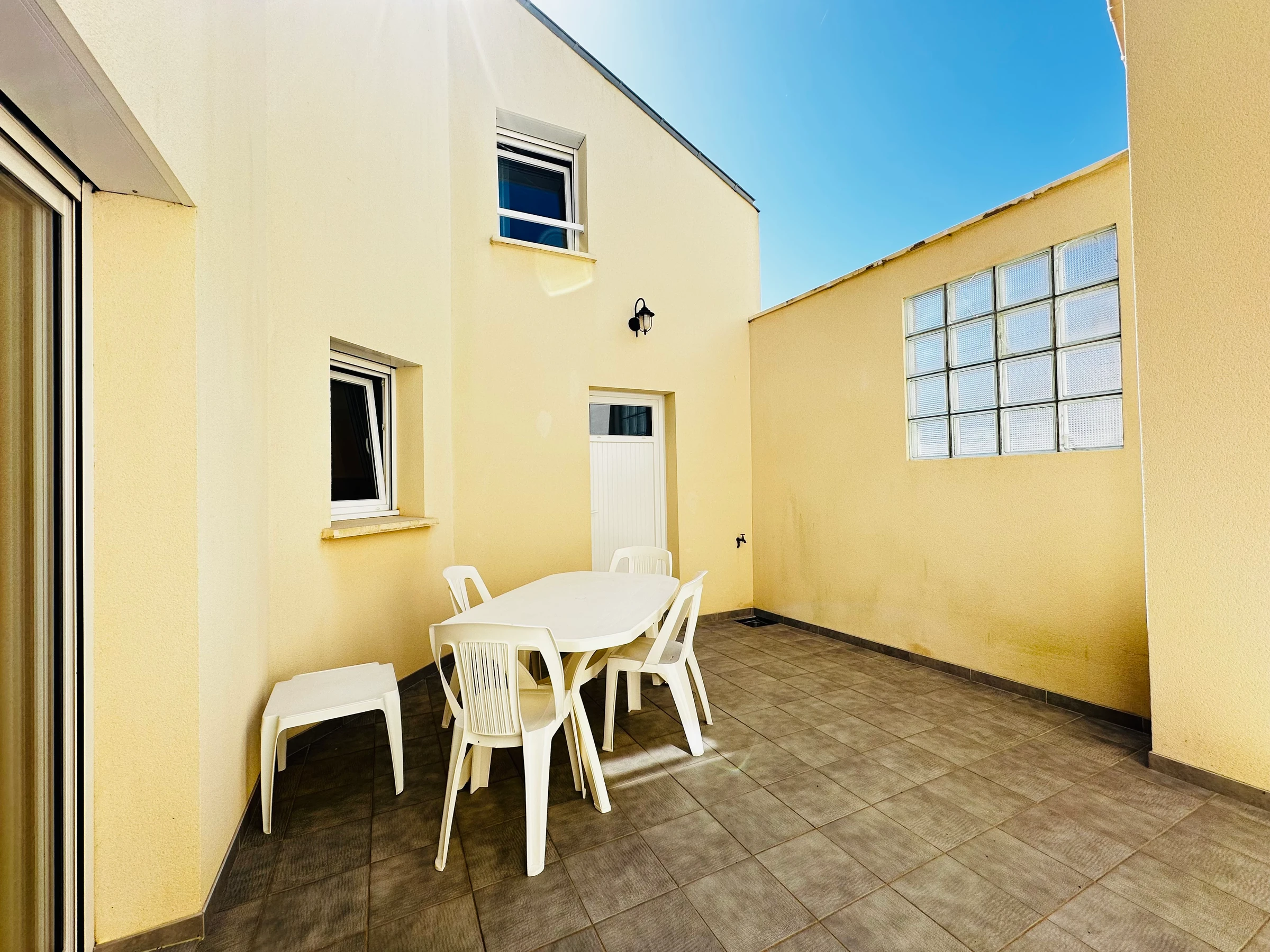 For family holidays, townhouse with a surface area of 120 m² and equipped for 5 people, a few meters from the beaches and the town center. On the ground floor: living room, open kitchen, utility room, WC, shower room. Upstairs: mezzanine office, 3 bedrooms, shower room. Enclosed courtyard. Kitchen layout: vacuum cleaner, fridge-freezer, extractor fan, dishwasher, ... Comfort elements: flat screen TV ... Leisure equipment: garden furniture, barbecue, parasol ... Sleeping: 2 X 140. Parking. Surface area: 120 m². Located 200m from the south beach and the town center, 500m from the Grande Plage. TO BE PAID upon arrival: security deposit of €600 for the rental, €150 for cleaning, and tourist tax. OPTIONAL SERVICES to be arranged before arrival: sheets €12 per bed per week, set of 2 bath or beach towels €12 per week, set of 2 bath mats €7 per week, kitchen linen (2 tea towels and 2 hand towels) €7 per week. Cleaning: €150. The rental is granted for a stay that begins on the day of arrival from 2:30 [hidden] and ends on the day of departure at 10:00 [hidden] at the latest.