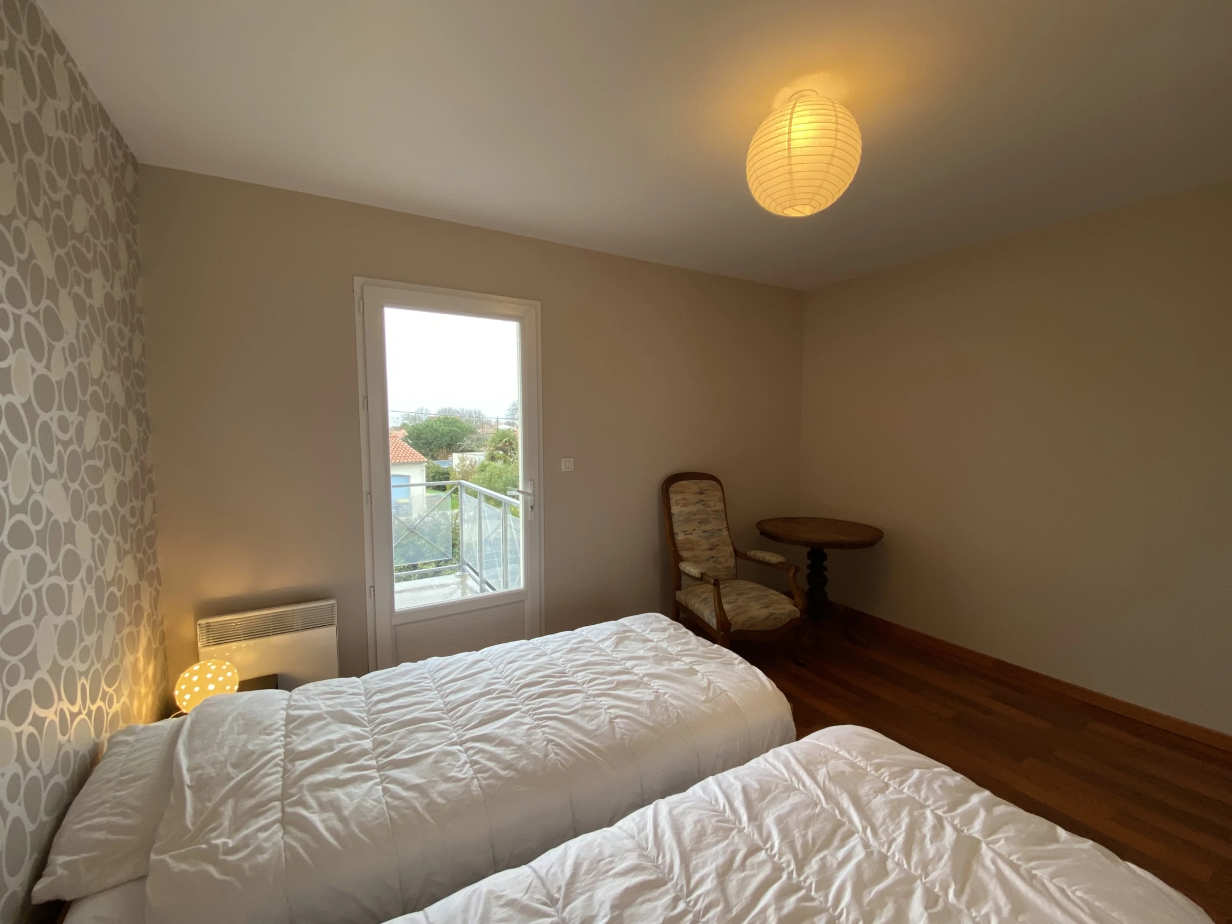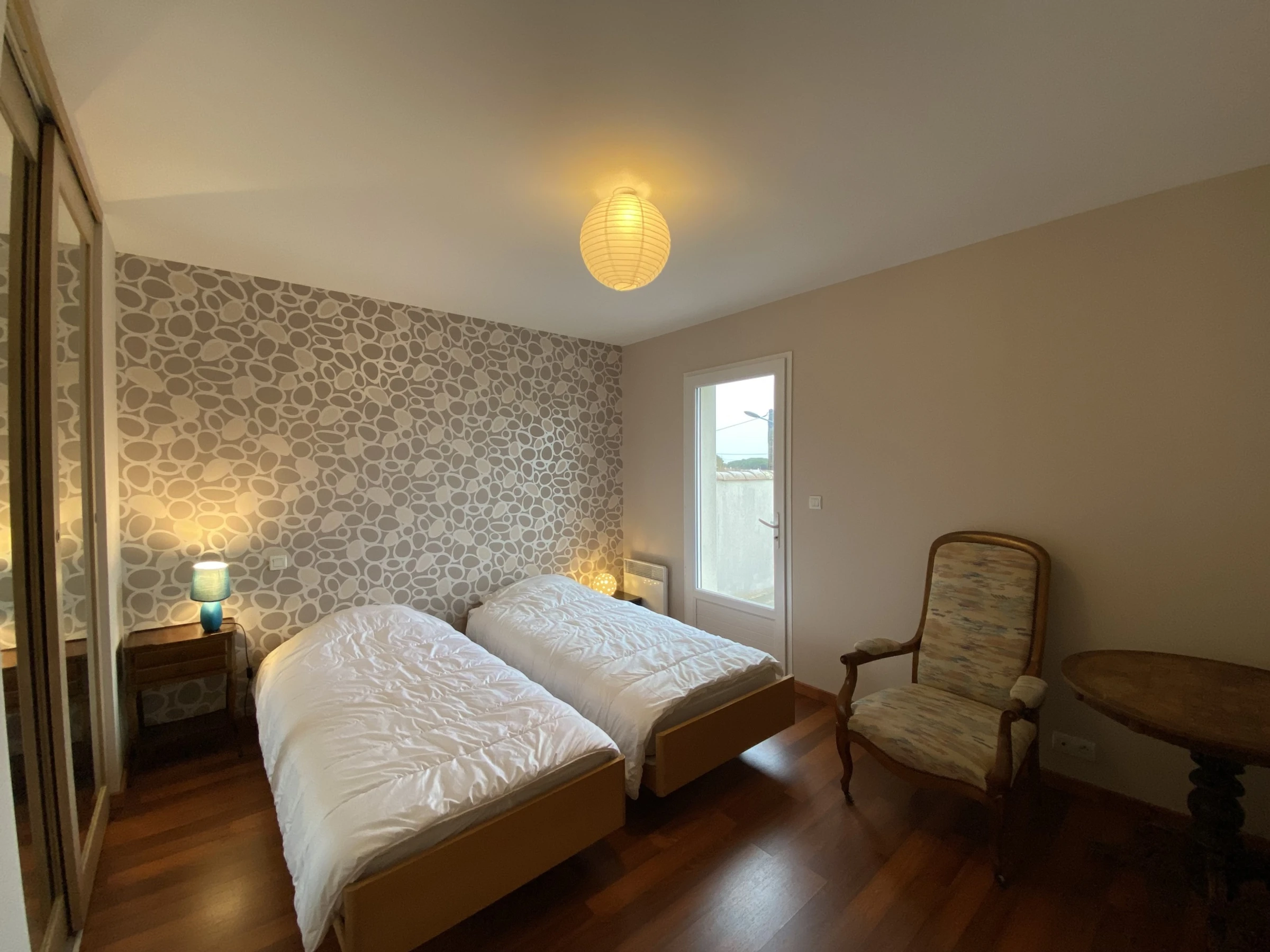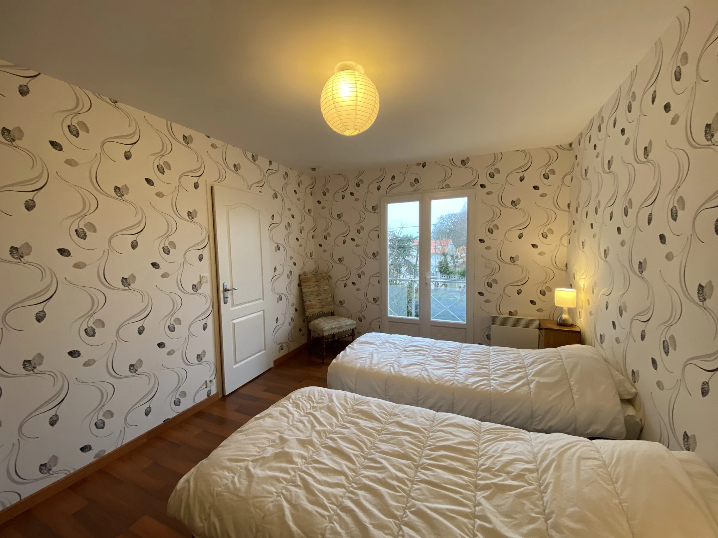 Very pleasant villa, spacious, in excellent condition, all comfort, for 6 people, located 10 minutes from the sea, comprising on the ground floor: large living room, fully fitted open kitchen, 1 bedroom with private bathroom and dressing room, storeroom and very large garage. Upstairs: 2 large bedrooms, shower room, WC. Terrace, large fully enclosed garden. Kitchen equipment: dishwasher, fridge + freezer, oven, microwave, coffee maker, washing machine... Bed: 1 x 160 + 4 x 90. Leisure equipment: TV, wifi, garden furniture, barbecue, deckchair, awning... Vehicle access. Surface area: 140 m². NEARBY: 800 m from the city center, beach 800 m. Bus station 1.5 km and SNCF train station 6.3 km, Rochefort thermal spa 15 min. Located 450 m from the south beach and the city center, 600 m from the Grande Plage and the North Beach. TO BE PAID upon arrival: security deposit of €600 for the rental, €150 for cleaning, and tourist tax. OPTIONAL SERVICES to be arranged before arrival: sheets €12 per bed per week, set of 2 bath or beach towels €12 per week, set of 2 bath mats €7 per week, kitchen linen (2 tea towels and 2 hand towels) €7 per week. Cleaning: €150. The rental is granted for a stay that begins on the day of arrival from 2:30 [hidden] and ends on the day of departure at 10 [hidden] at the latest.