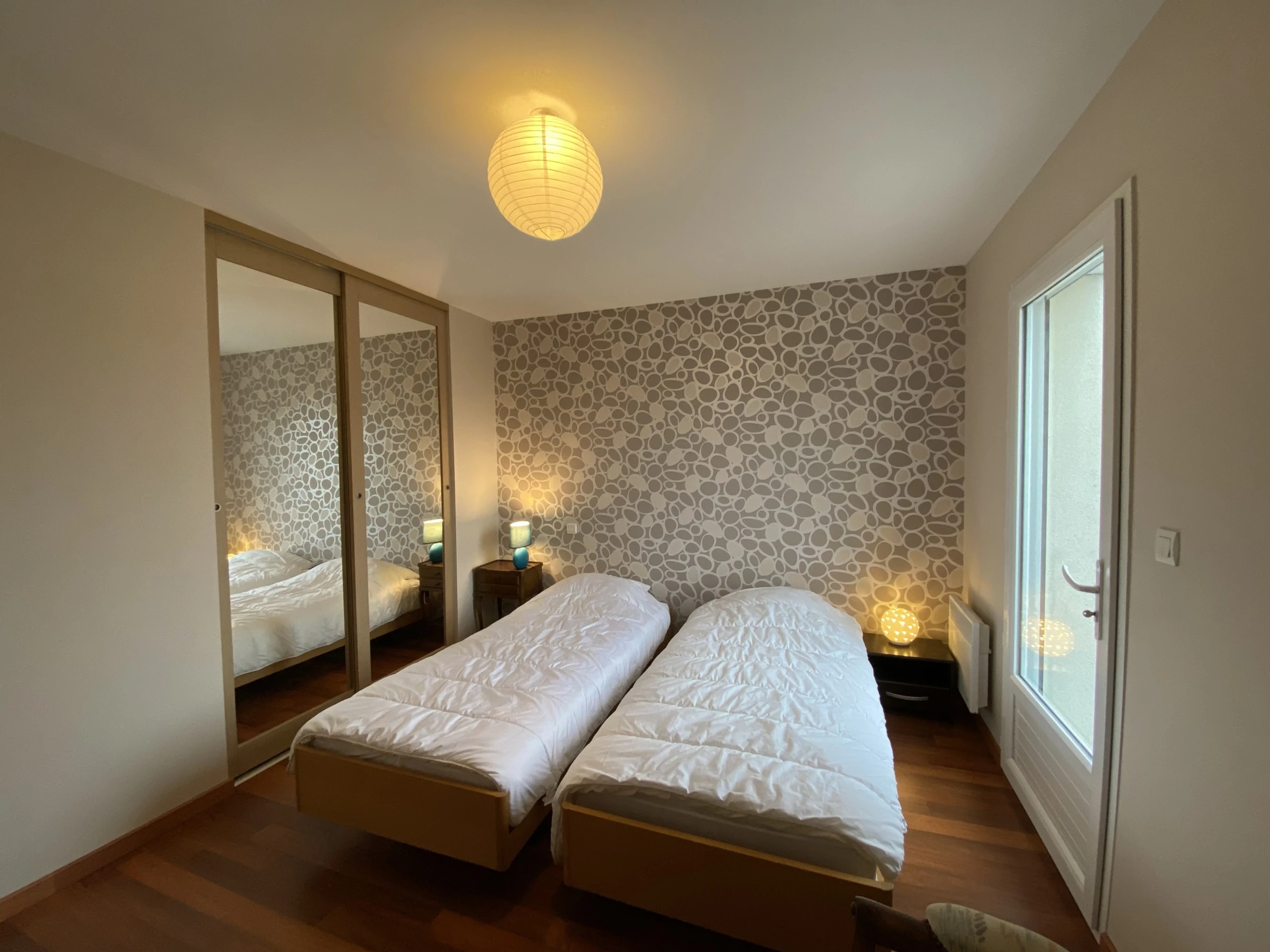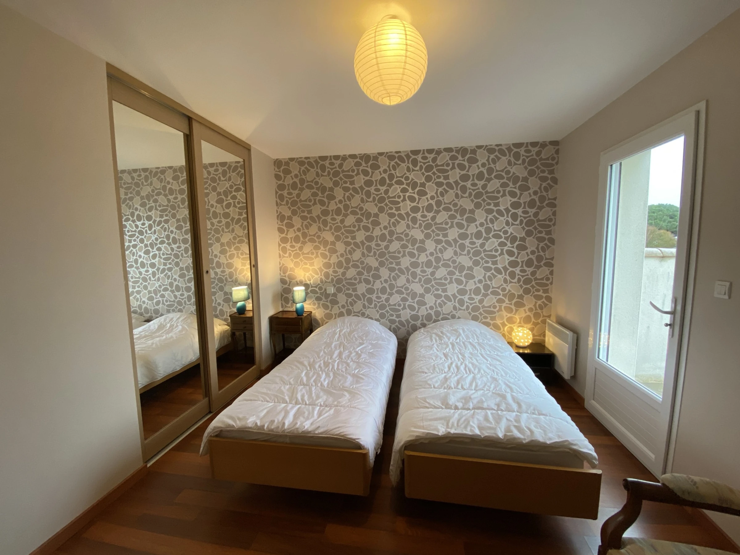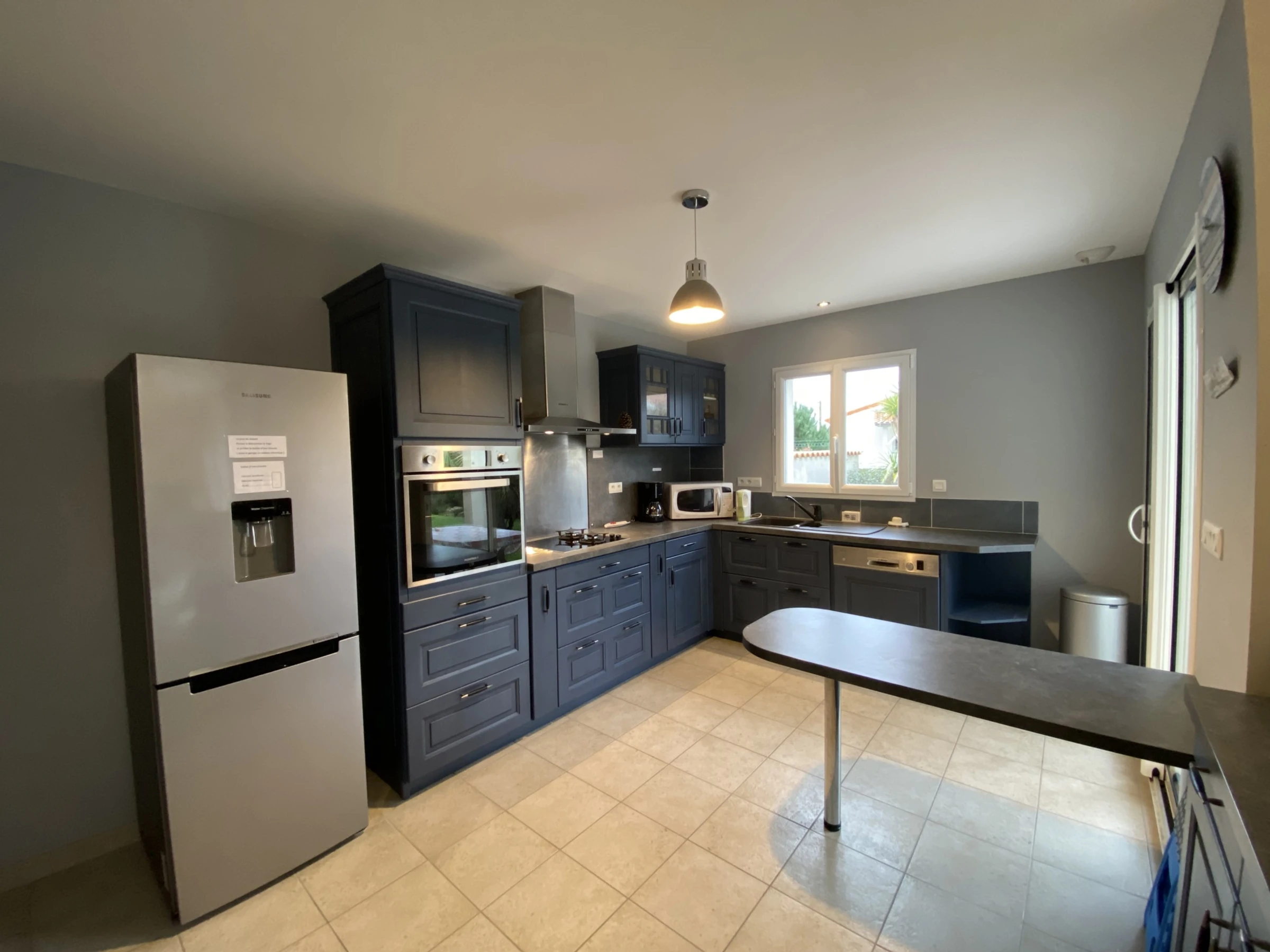 Very pleasant villa, spacious, in excellent condition, all comfort, for 6 people, located 10 minutes from the sea, comprising on the ground floor: large living room, fully fitted open kitchen, 1 bedroom with private bathroom and dressing room, storeroom and very large garage. Upstairs: 2 large bedrooms, shower room, WC. Terrace, large fully enclosed garden. Kitchen equipment: dishwasher, fridge + freezer, oven, microwave, coffee maker, washing machine... Bed: 1 x 160 + 4 x 90. Leisure equipment: TV, wifi, garden furniture, barbecue, deckchair, awning... Vehicle access. Surface area: 140 m². NEARBY: 800 m from the city center, beach 800 m. Bus station 1.5 km and SNCF train station 6.3 km, Rochefort thermal spa 15 min. Located 450 m from the south beach and the city center, 600 m from the Grande Plage and the North Beach. TO BE PAID upon arrival: security deposit of €600 for the rental, €150 for cleaning, and tourist tax. OPTIONAL SERVICES to be arranged before arrival: sheets €12 per bed per week, set of 2 bath or beach towels €12 per week, set of 2 bath mats €7 per week, kitchen linen (2 tea towels and 2 hand towels) €7 per week. Cleaning: €150. The rental is granted for a stay that begins on the day of arrival from 2:30 [hidden] and ends on the day of departure at 10 [hidden] at the latest.