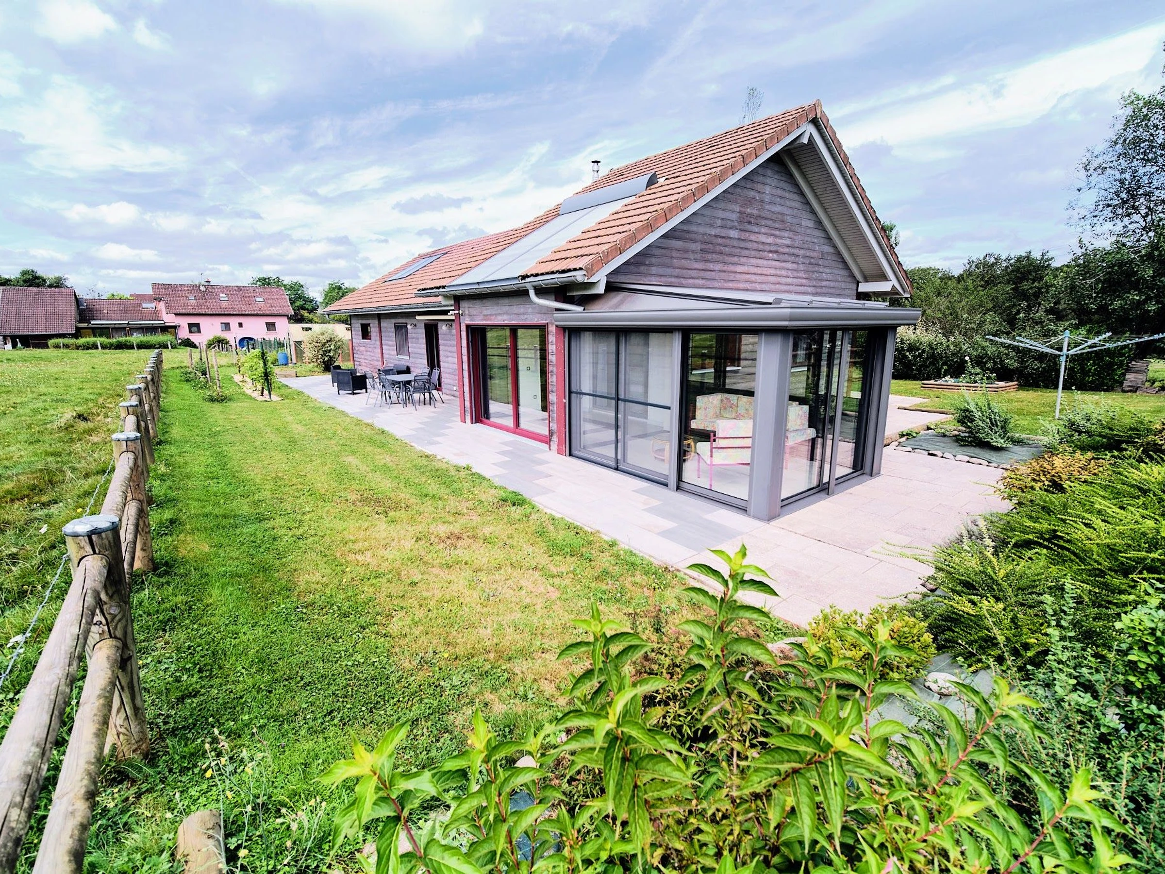 Gîte near the farm. At the foot of the Vosges Mountains, many leisure activities are possible: hiking, skiing, fishing... Cultural activities: Belfort 6km - Ronchamp Chapel Site, by Le Corbusier, convent and gatehouse of the architect Renzo PIANO; Maison de la Négritude in Champagney. Christmas markets: Montbéliard (25km), Colmar (80km). Events: Eurockéennes Festival in Belfort, 5km (early July). Malsaucy Leisure Center: 5km Ecogîte, single-story timber-framed house, accessible to people with reduced mobility. In a quiet environment. Spacious entrance. Equipped kitchen, Large, very bright living room: dining/lounge room with wood stove. 1 bedroom (2 beds 100/200) + 1 bedroom (2 twin beds 80/200). A bathroom (walk-in shower, hairdryer). Separate toilet. Spacious veranda with access to the terrace and views of the meadows. Garden furniture and barbecue. Carport for 2 cars. Geothermal underfloor heating. "Marque Parc" certified. Gite near the farm.