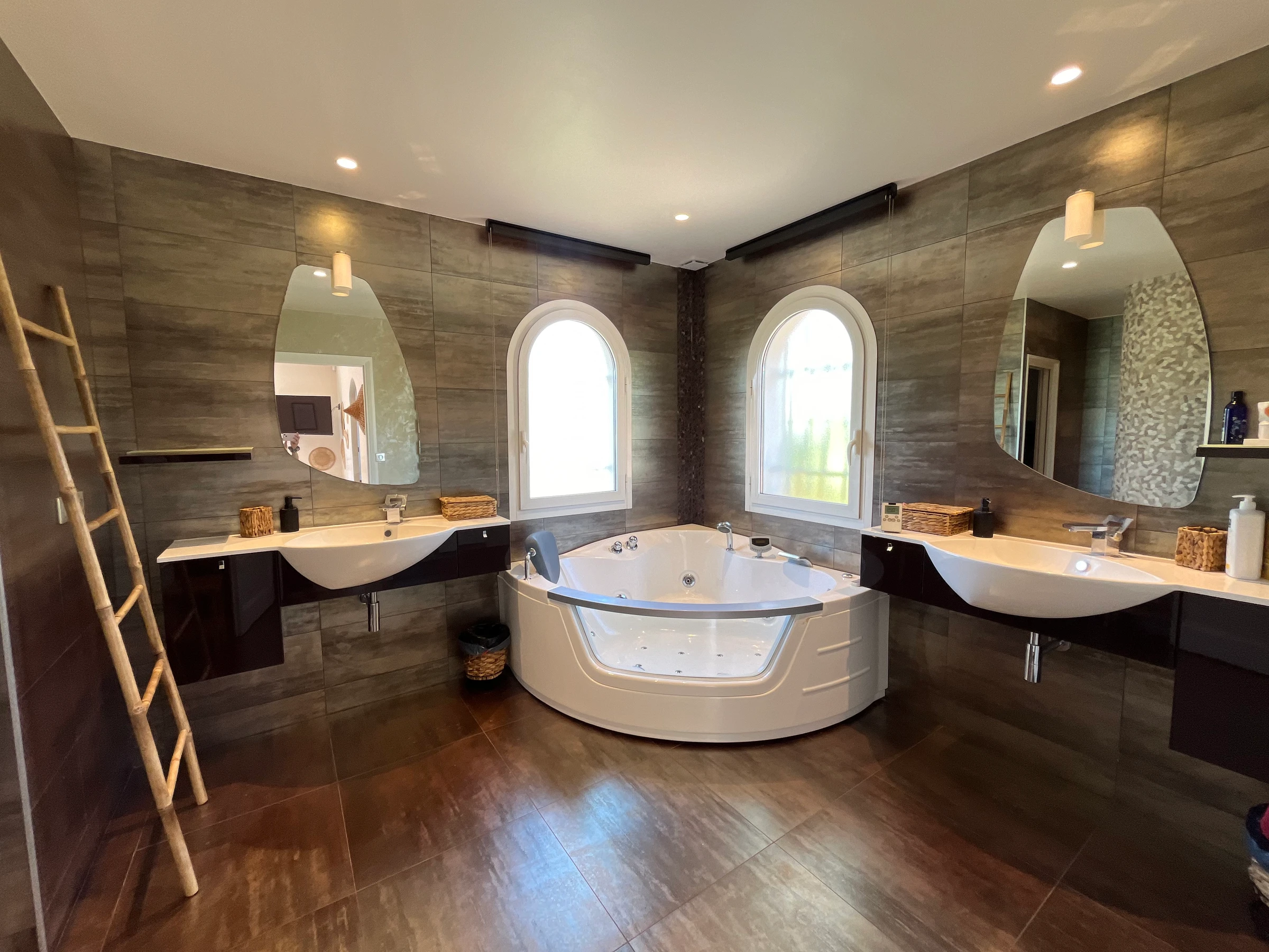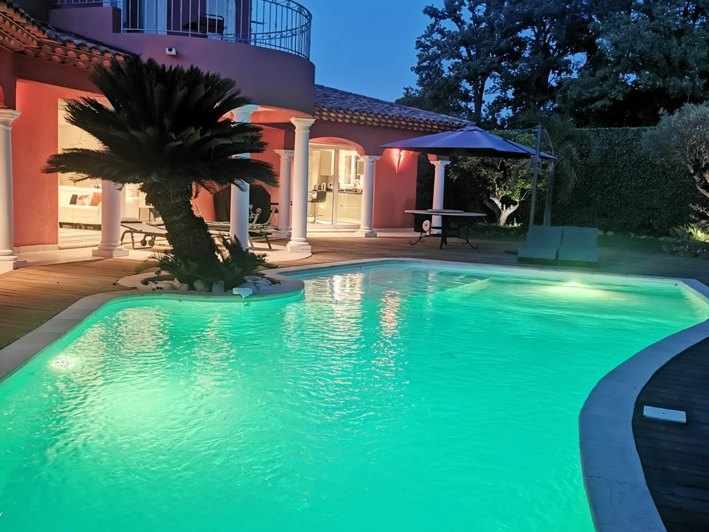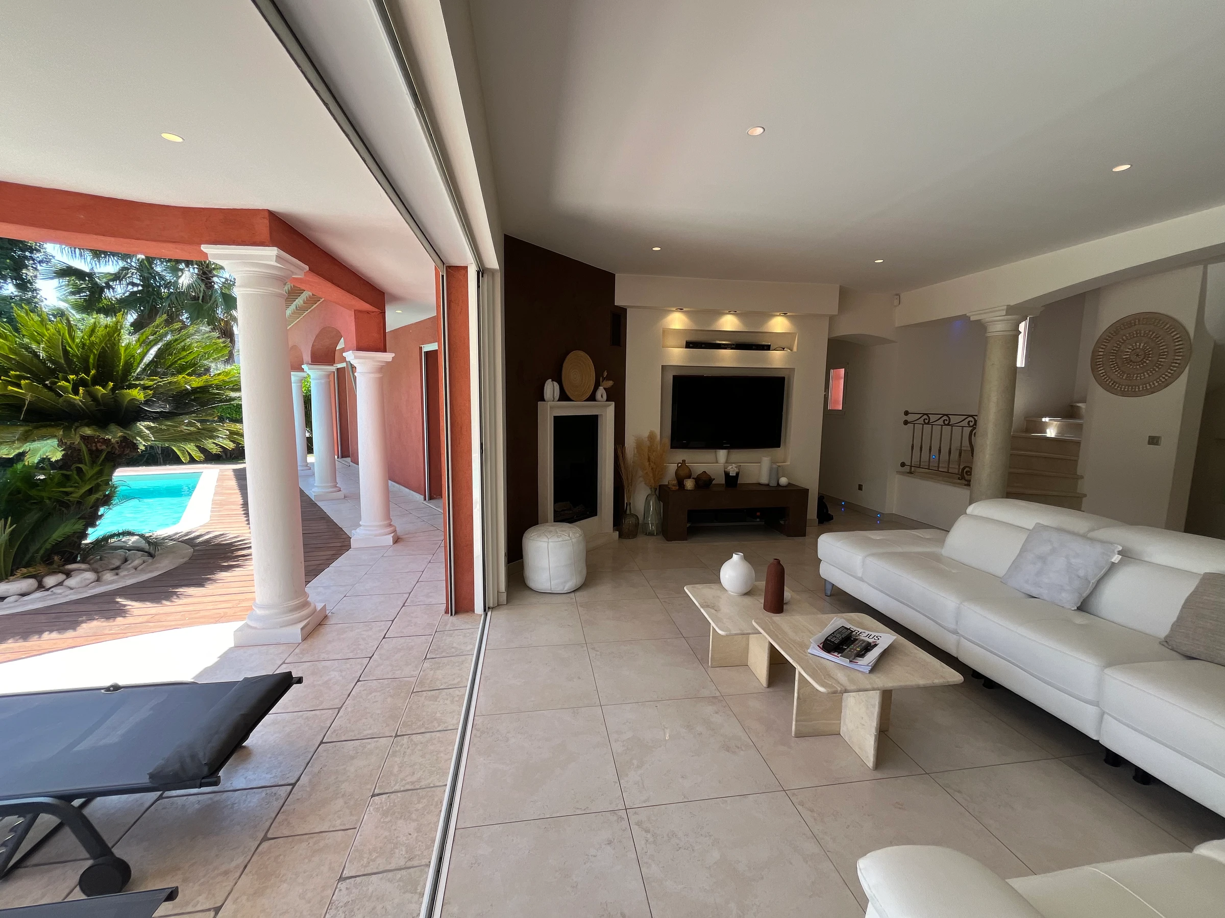 In Fréjus, this magnificent villa of approximately 200 m² with a sumptuous 500 m² garden - located 3 km from the beach, 750 m from the bakery, and close to all shops and amenities - offers you serenity and a haven of peace for an unforgettable vacation.