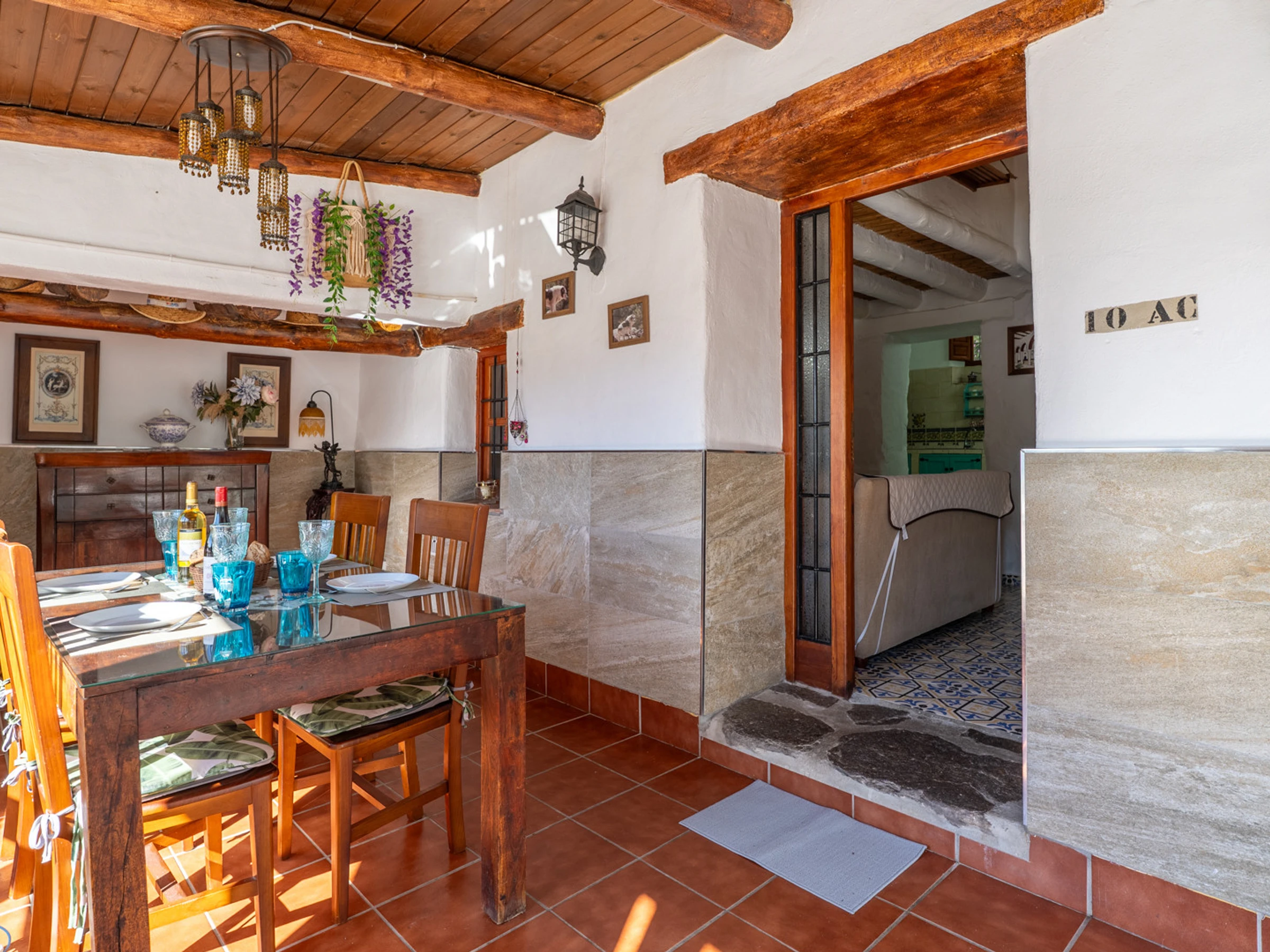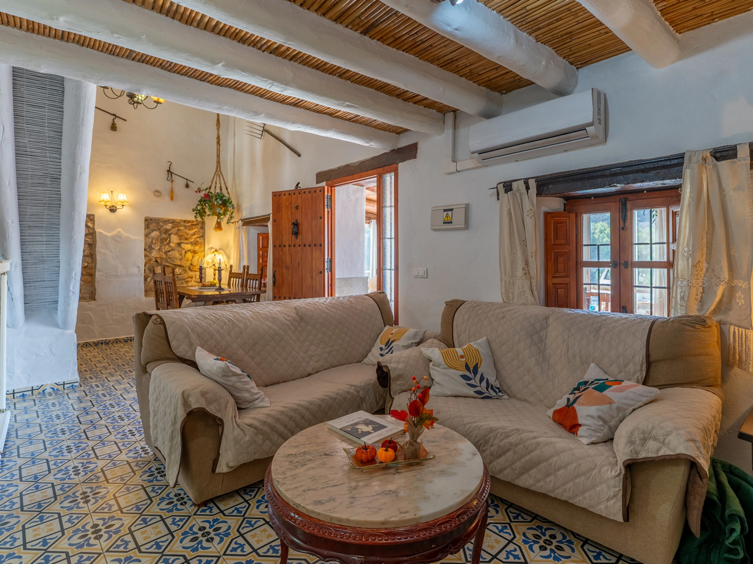 The cottage, restored by its local owners, combines authentic Spanish character with rustic charm. Inside, you’ll be welcomed by wooden beamed ceilings, terracotta floors, and walls painted in warm, varied colours that create a cosy atmosphere.