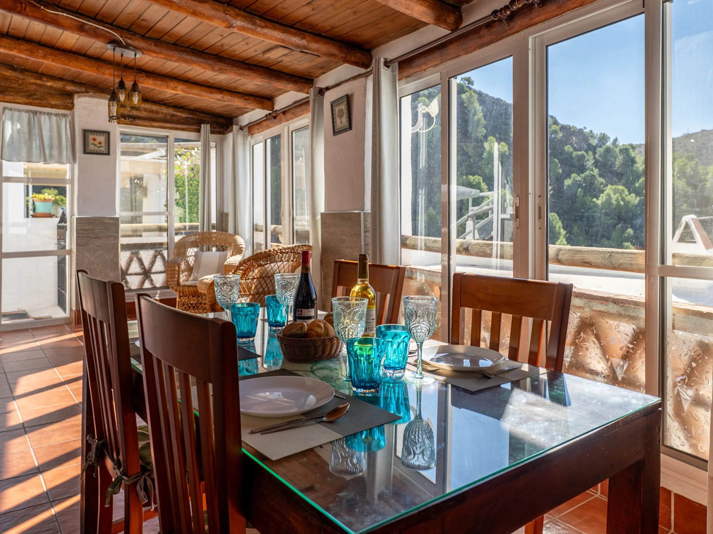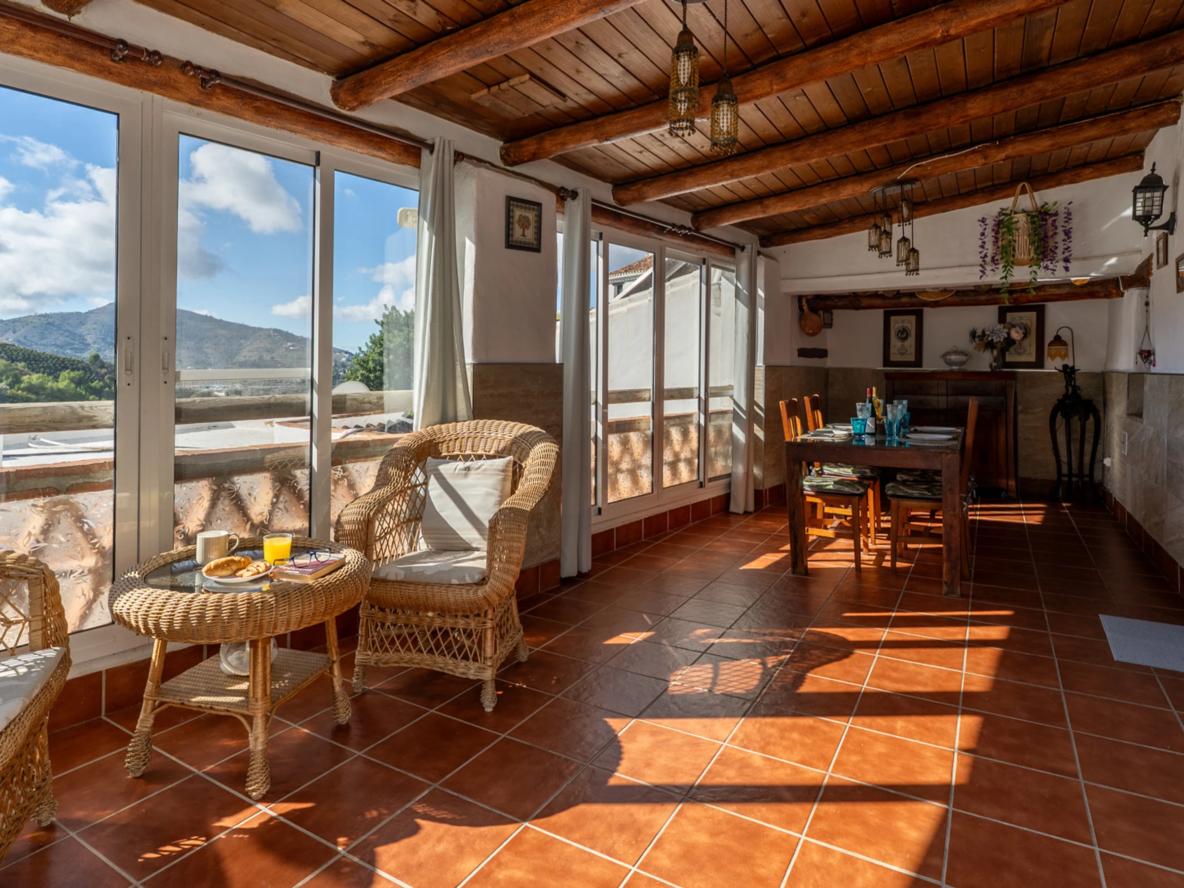 Today, El Acebuchal is a haven of peace with no shops but a highly regarded bar-restaurant serving traditional local dishes such as game, wild boar, and goat. Access is via a winding mountain road, with the final 2 km along an unpaved track. In Frigiliana you will find small supermarkets, many shops and a wide selection of tapas bars and restaurants. Larger supermarkets and gas stations are located in Nerja, 14 km from the house.
