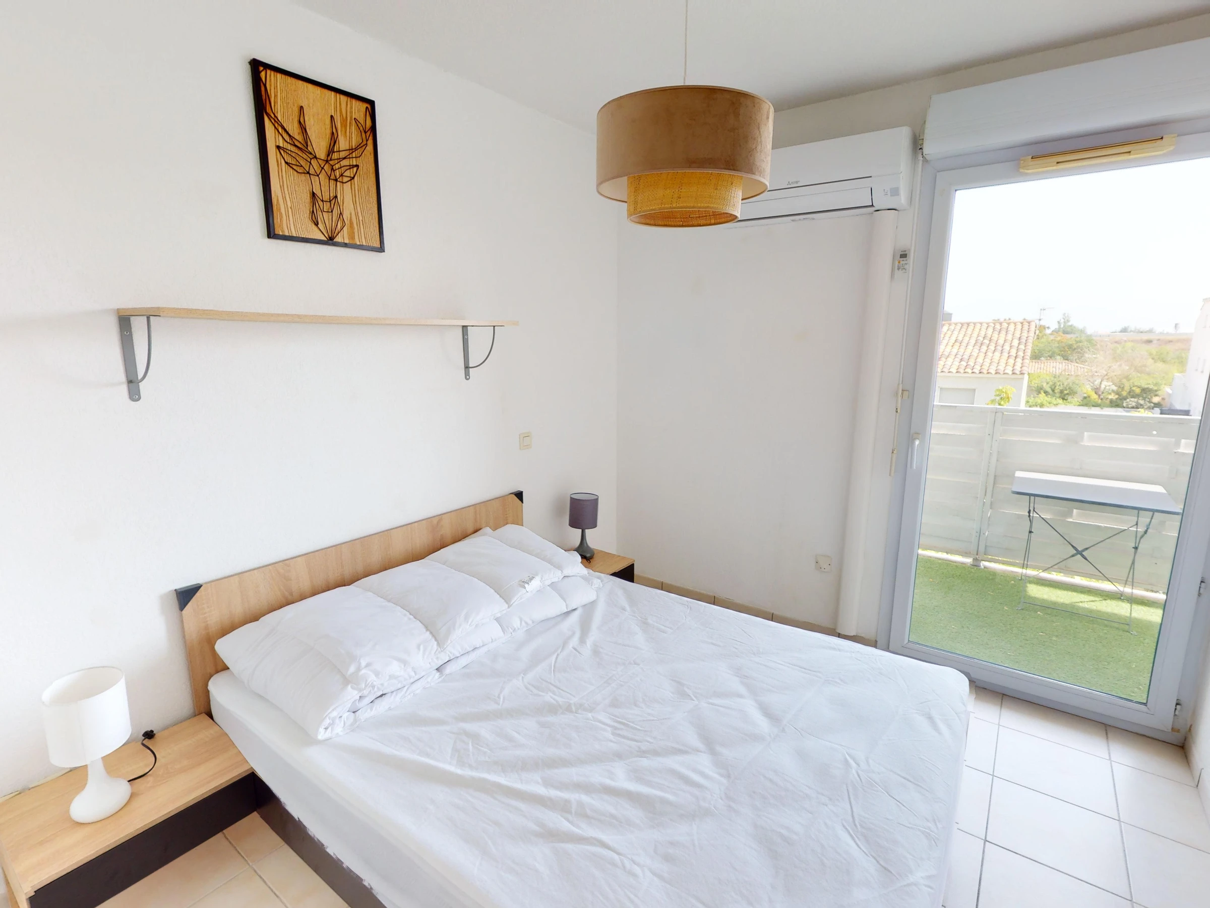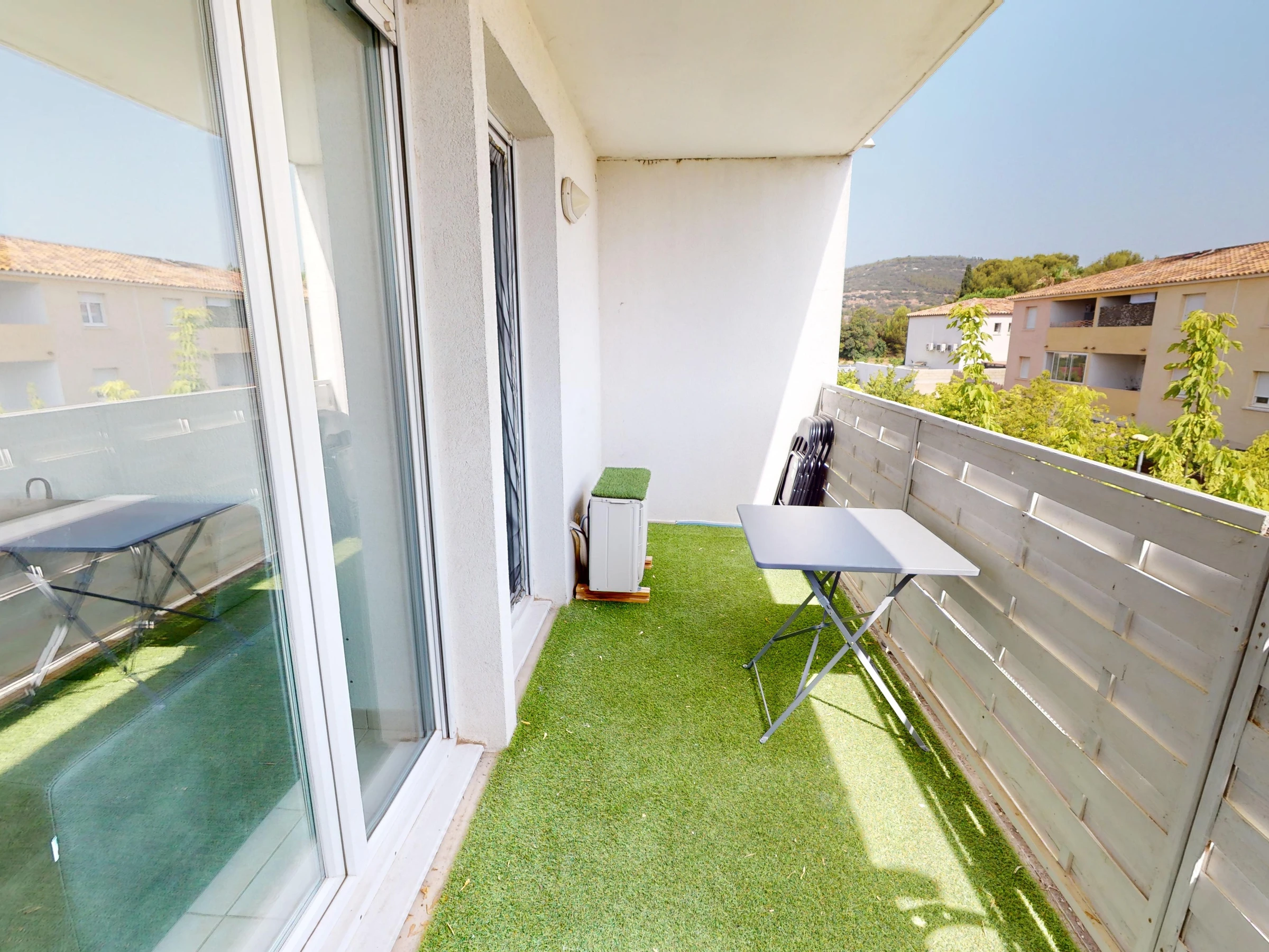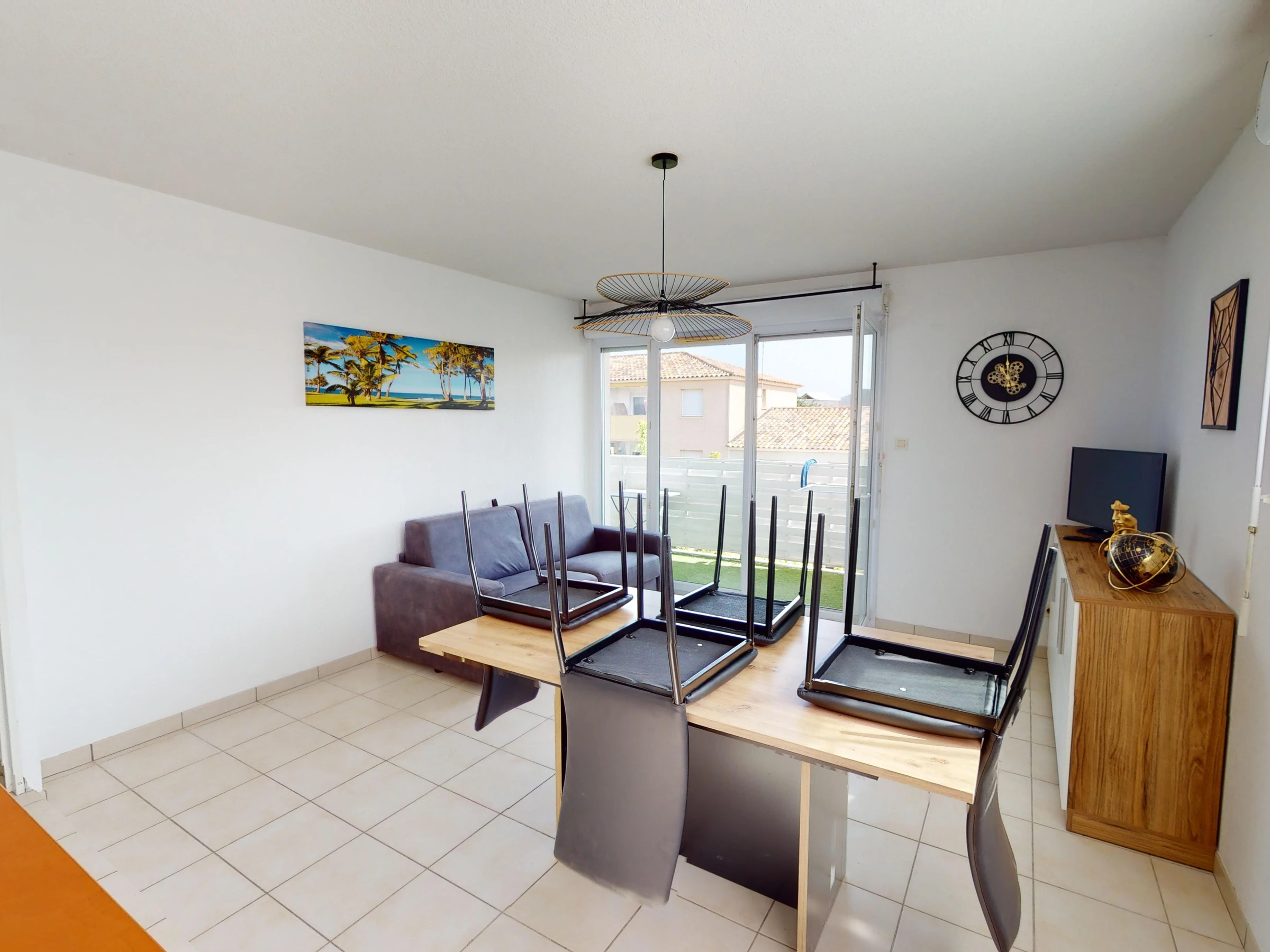 Fully furnished, it can accommodate up to 4 people thanks to a spacious air-conditionned bedroom that opens onto the terrace, equipped with a double bed, and a sofa-bed in the living room.