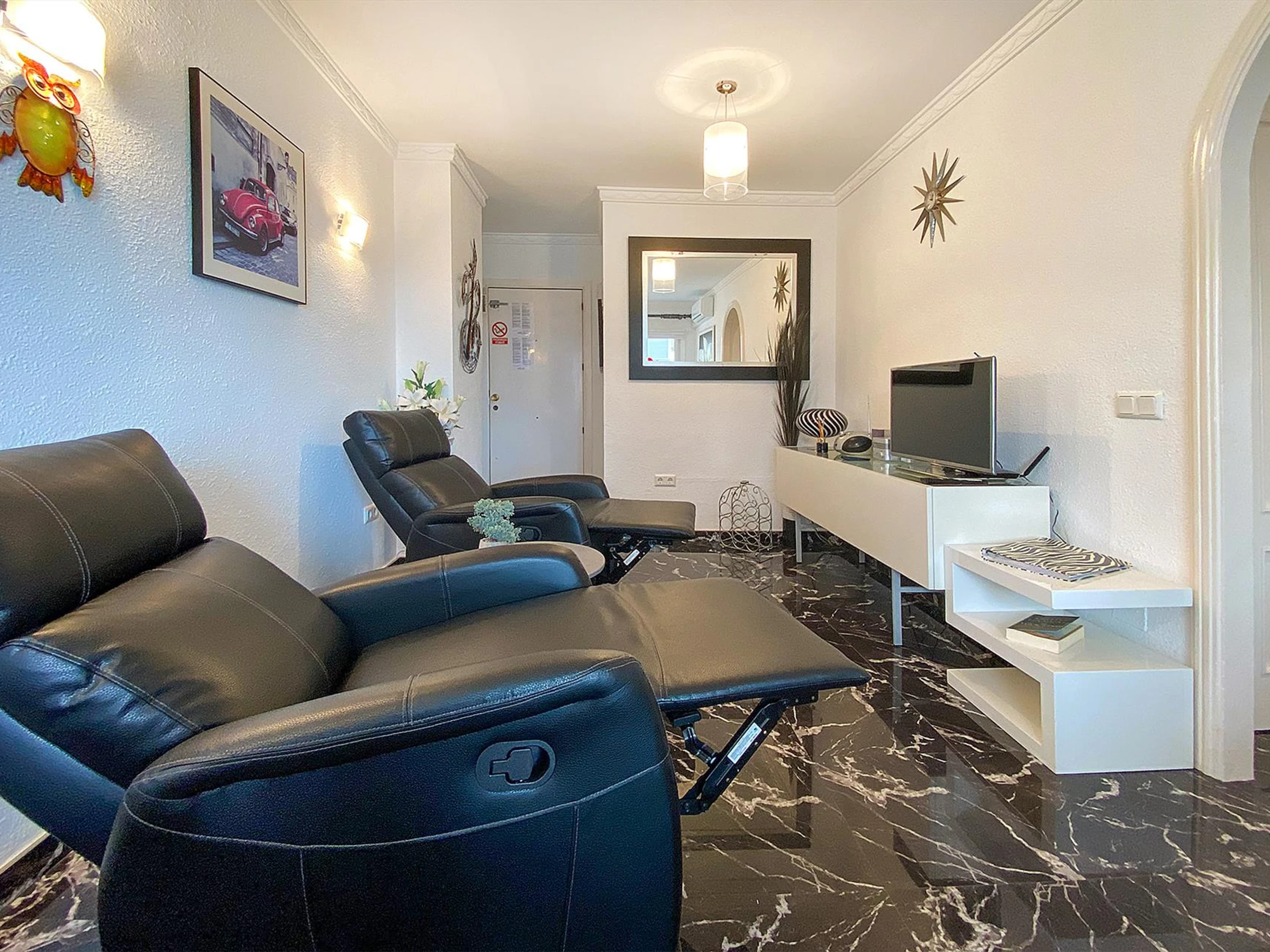 promenade in Fuengirola. The flat has a living room with 2 comfortable recliner