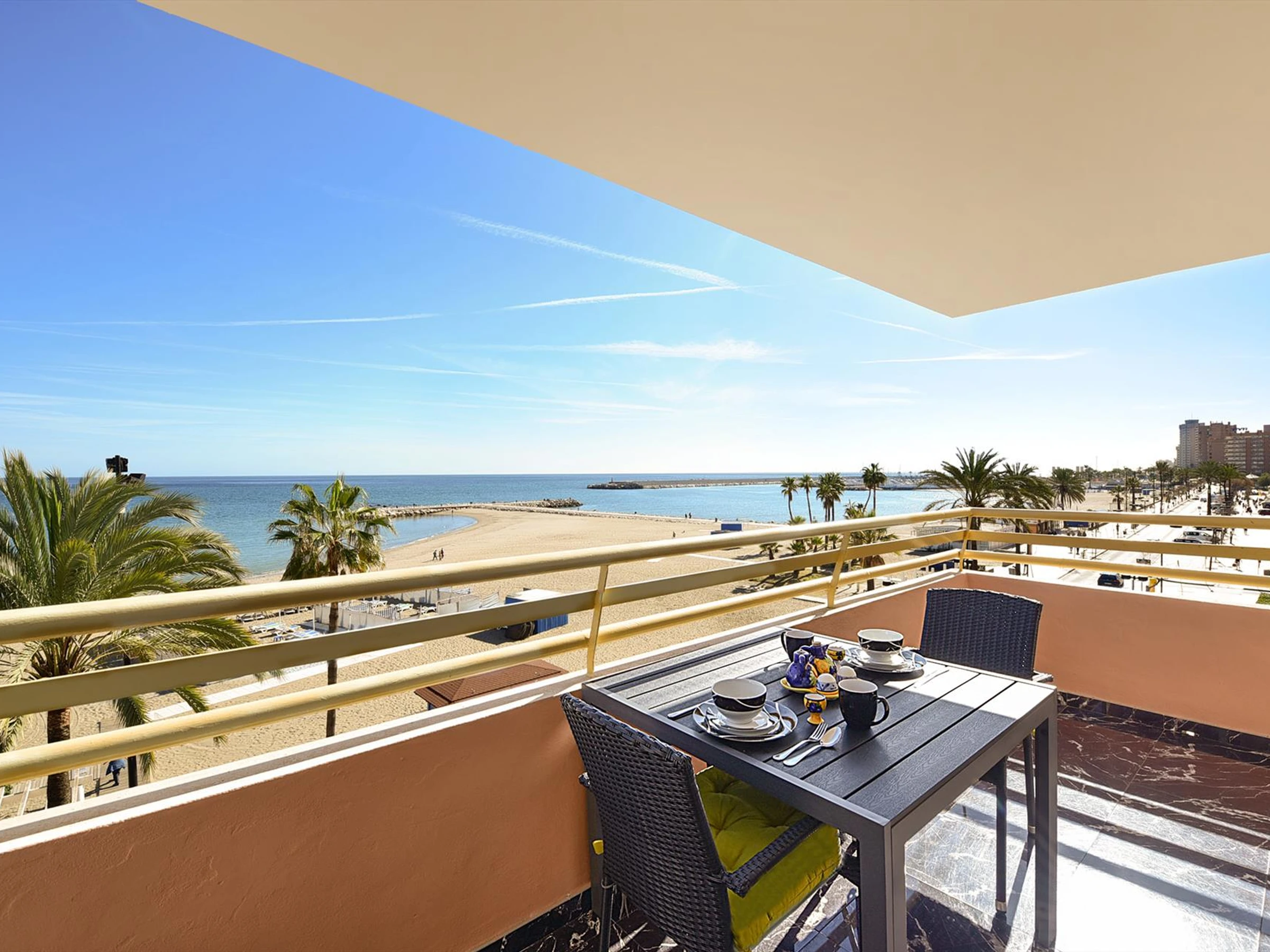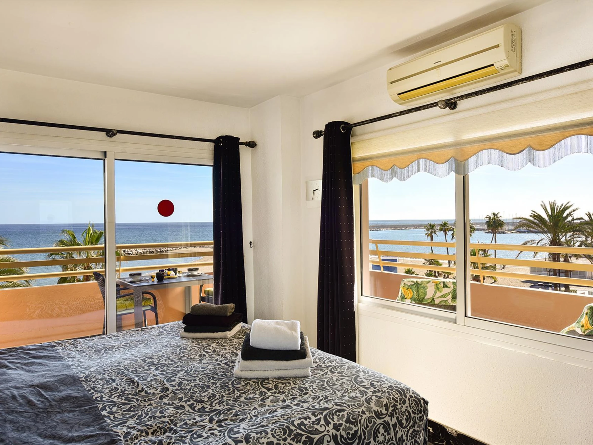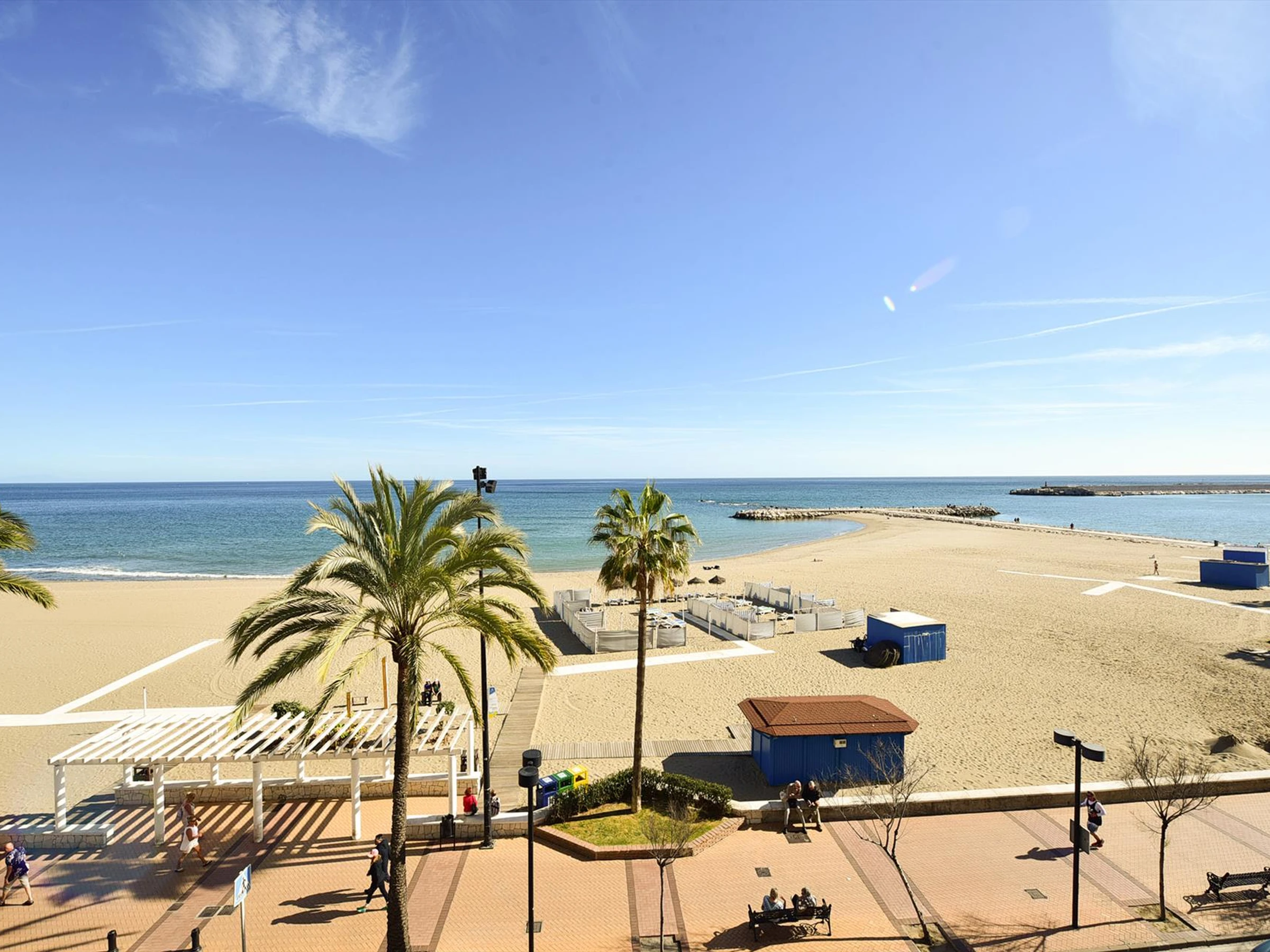 For rent - Top beach locationBeach holiday appartment with 1 bedroom, 1 bathroom, a small kitchen and a large corner terrace with fantastic views of the sea, the promenade and the port of Fuengirola. The holiday flat is located right on the beach and promenade in Fuengirola.