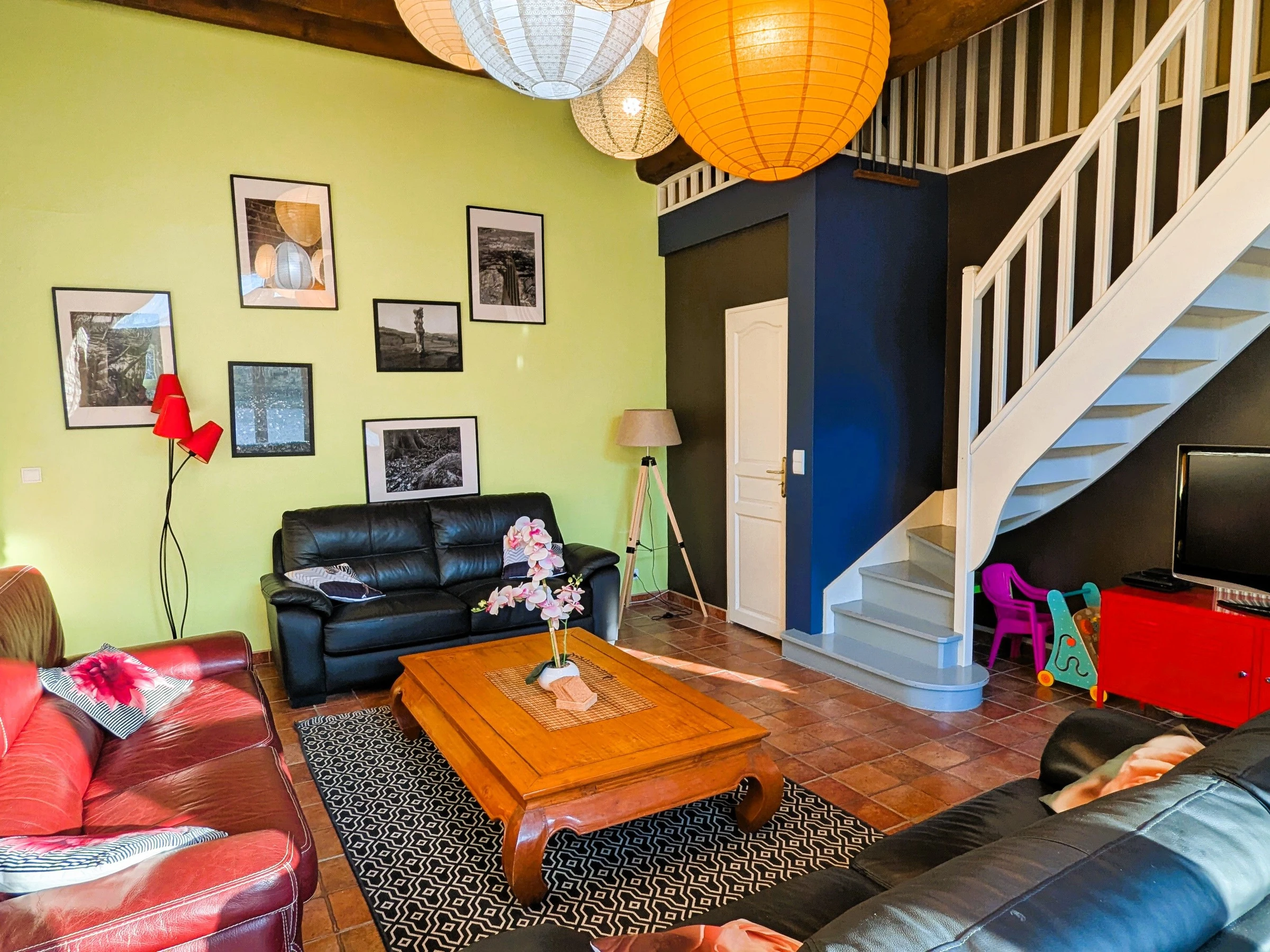 Florence and Hervé welcome you to this fully restored former farmhouse, where the original character has been carefully preserved while offering modern comforts. With 250 m² of living space, the house impresses with its generous proportions, abundant natural light, and meticulous finishes.