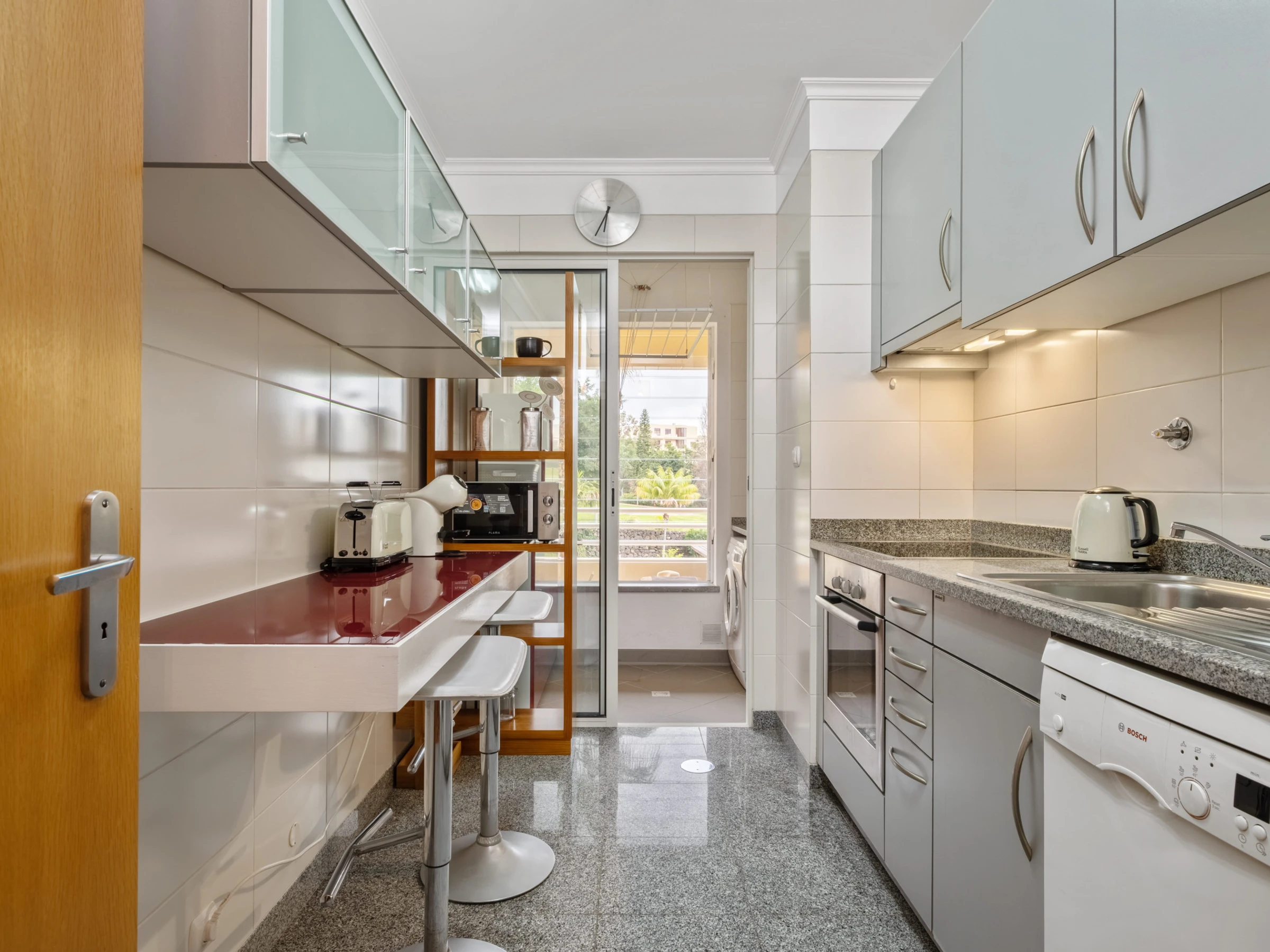 The modern and fully equipped kitchen, accompanied by a practical service area, has everything you need to prepare your meals with convenience.