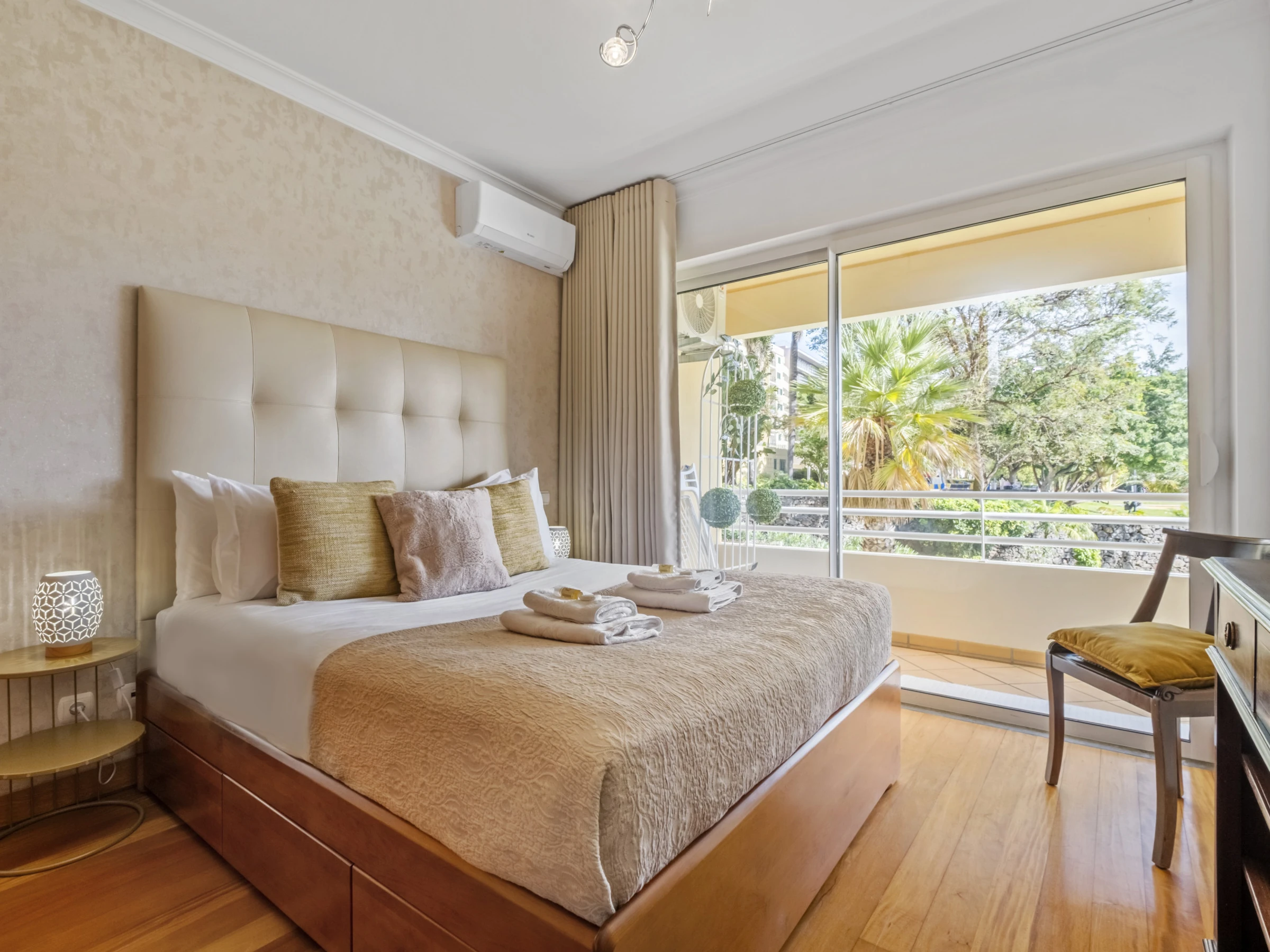 The spacious and bright room invites well-being, with direct access to a charming balcony, where an outdoor dining area provides unforgettable moments.