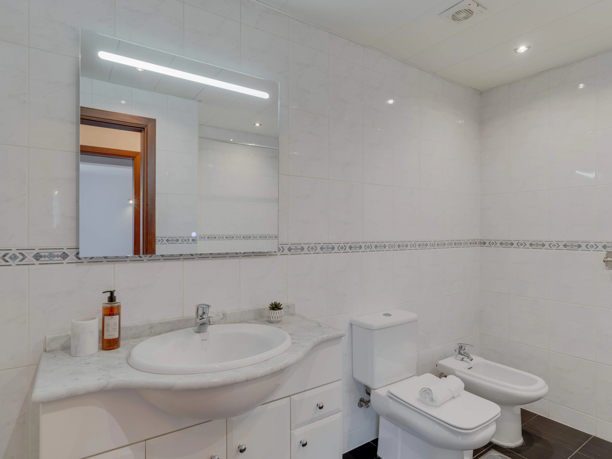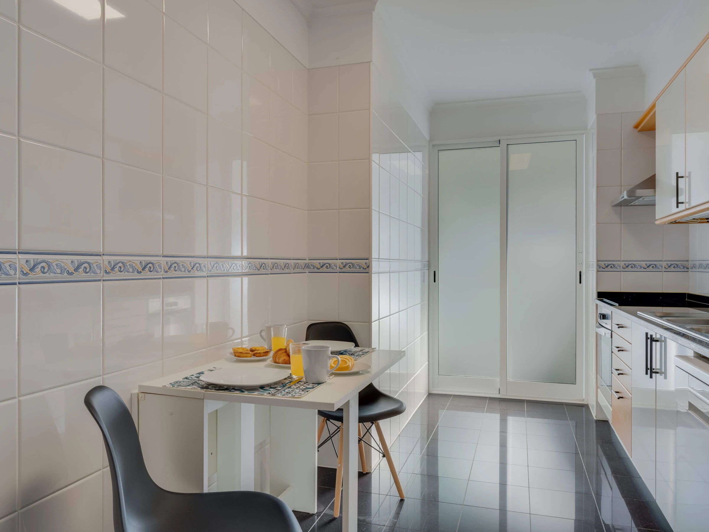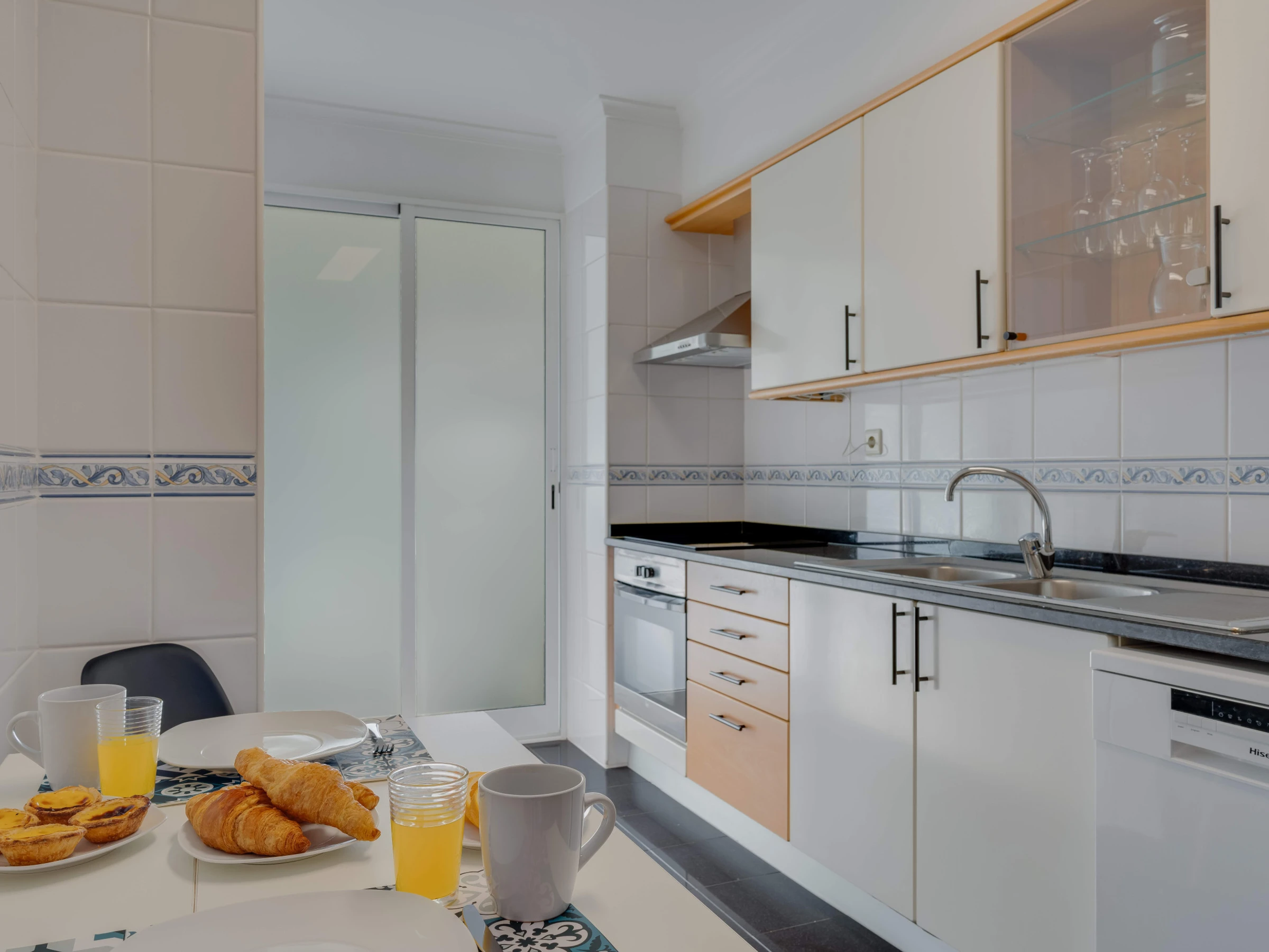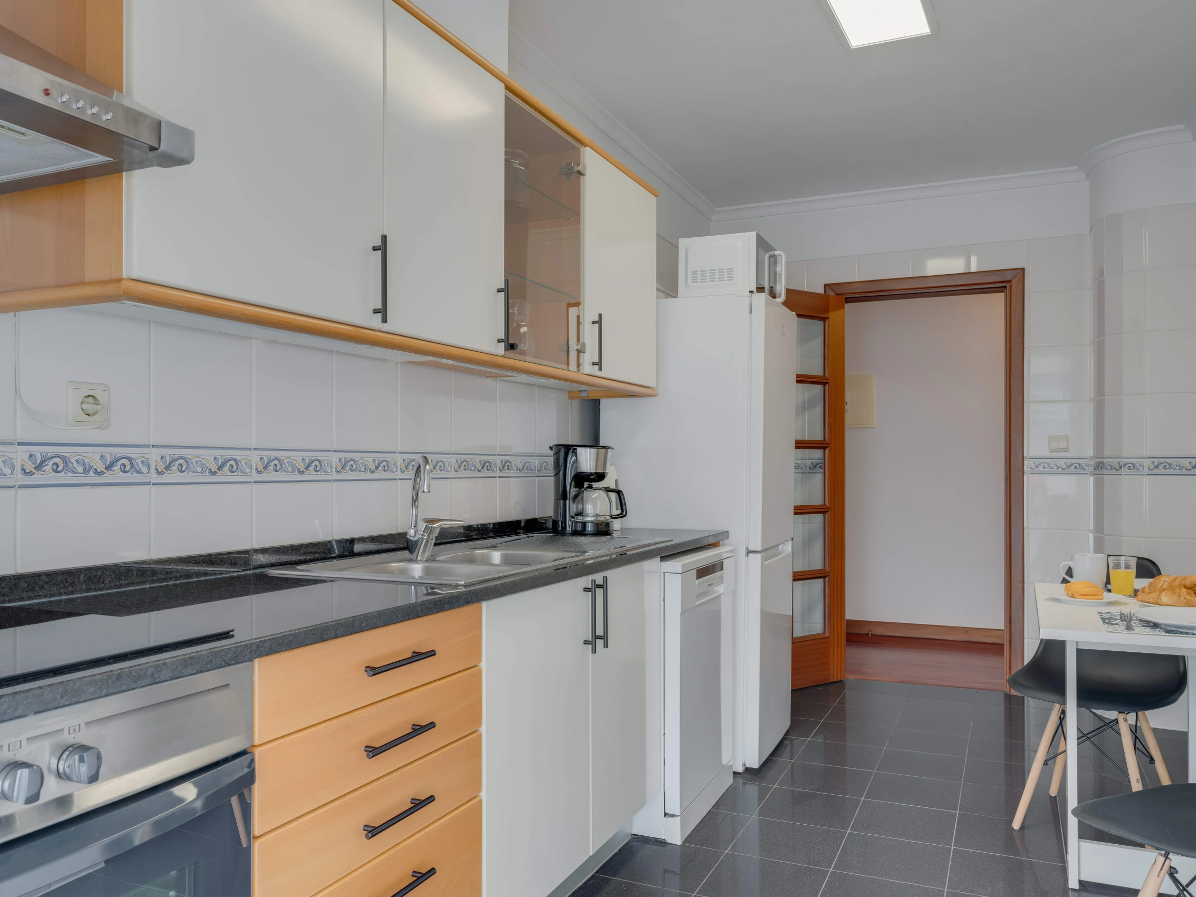 The apartment's kitchen is fully equipped with a fridge, freezer, oven, microwave, hob, blender, electric kettle and all the necessary utensils, allowing you to prepare your own meals, whether you need it or not. You will also have access to a washing machine and a hairdryer.
