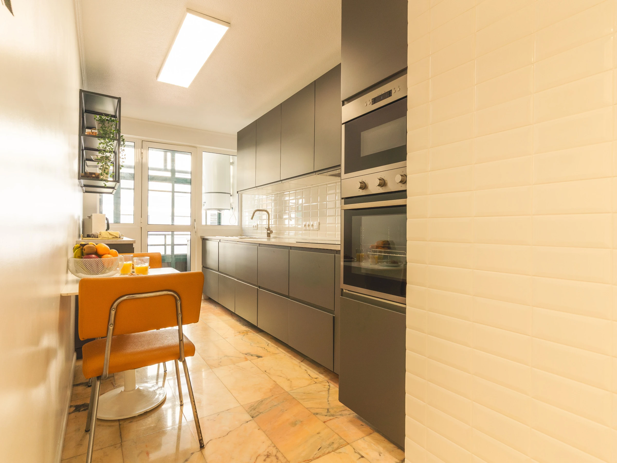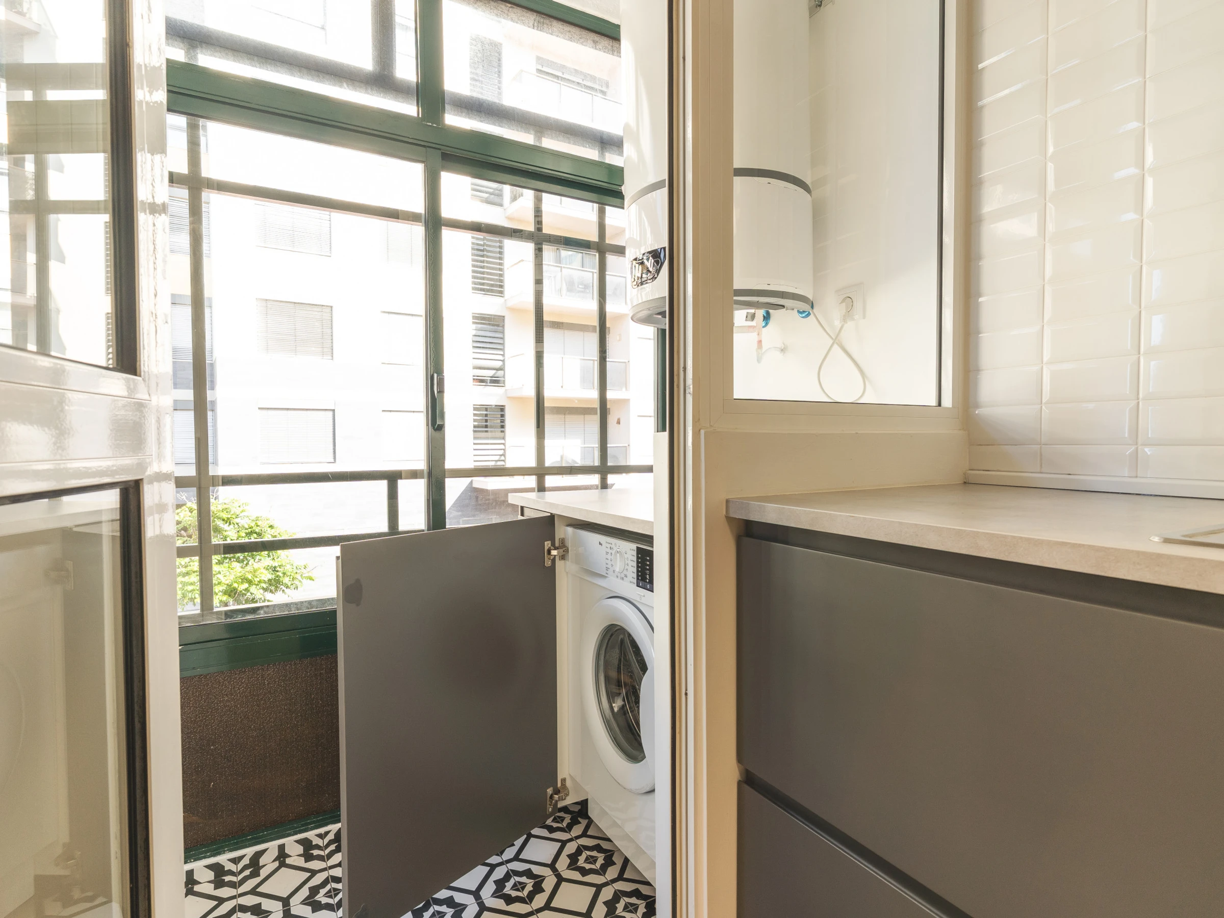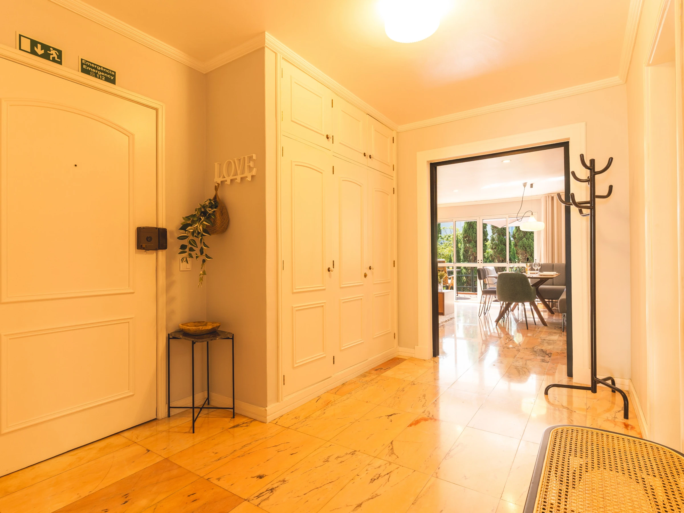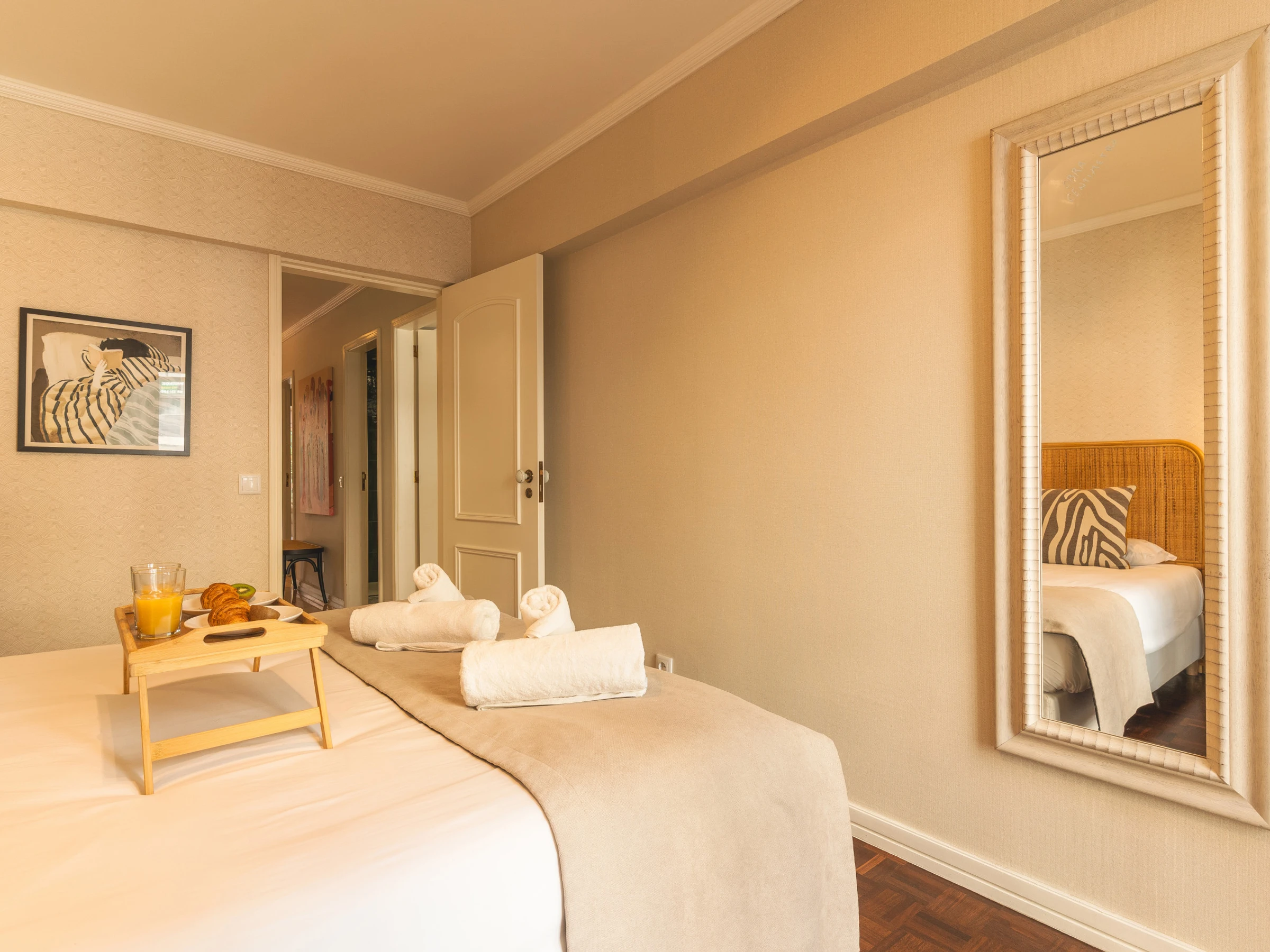For entertainment, you’ll find a Smart TV with a box, and the apartment provides air conditioning in all areas. Parking is available with a private space in the garage for your vehicle.
