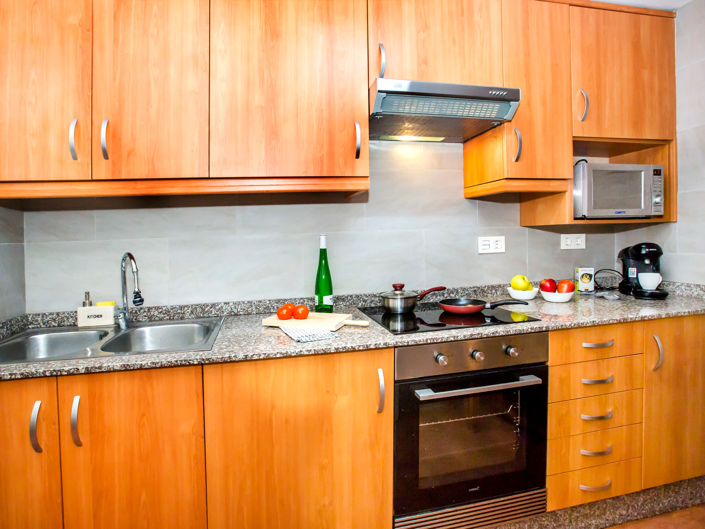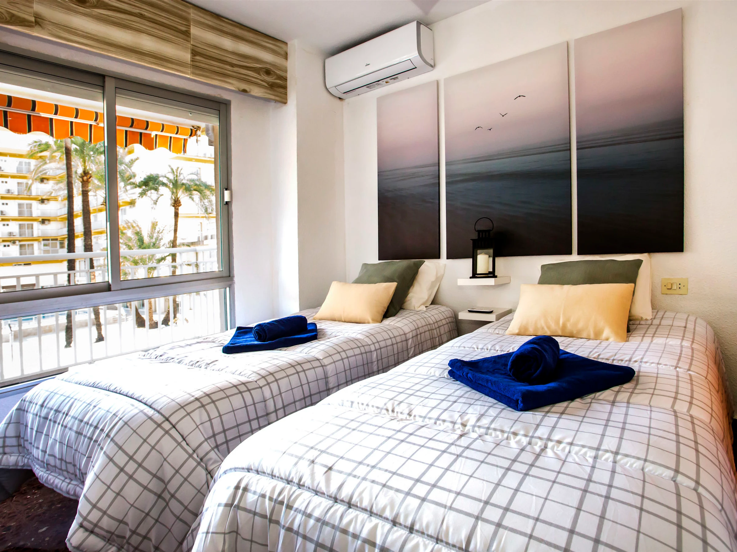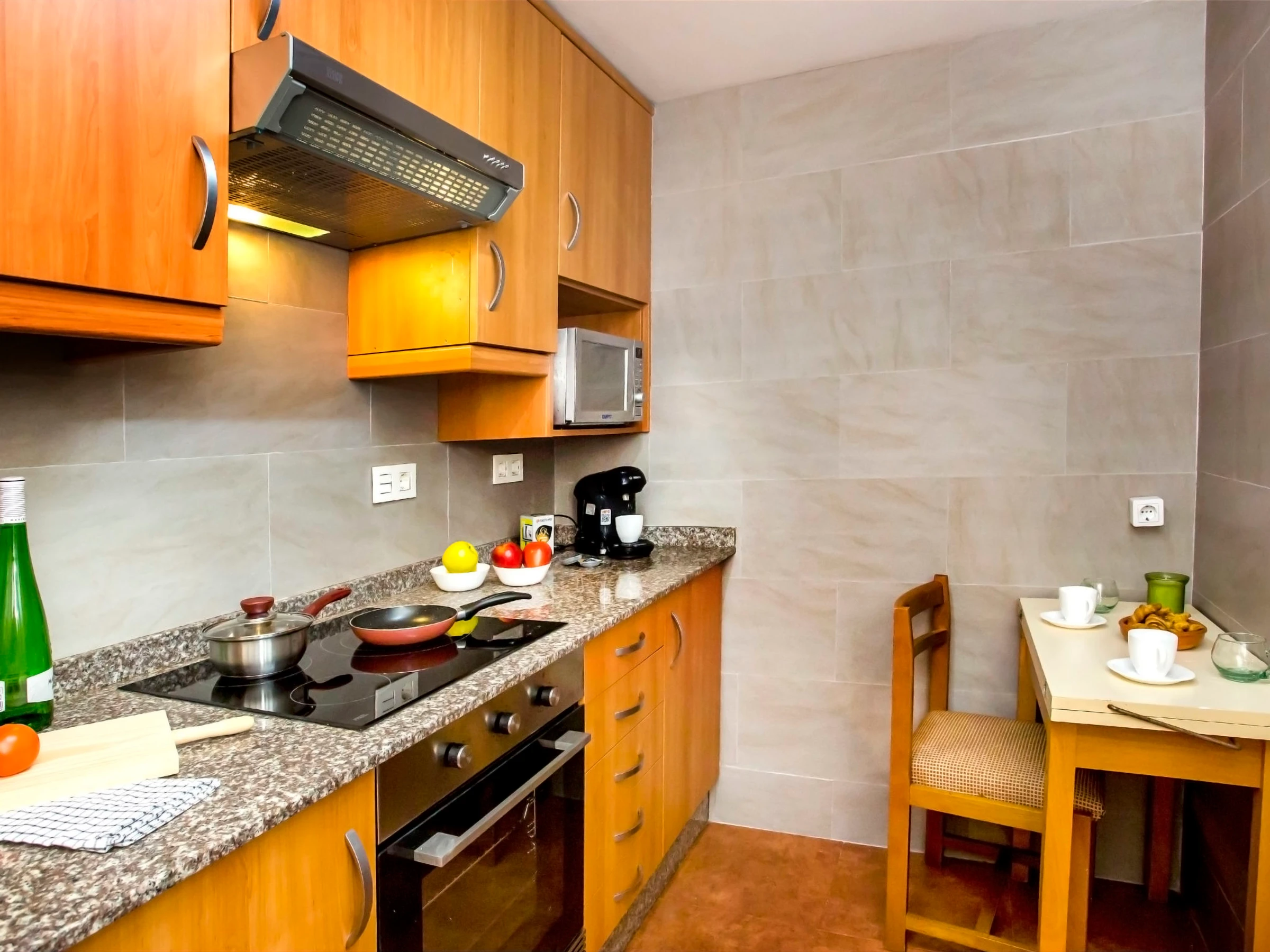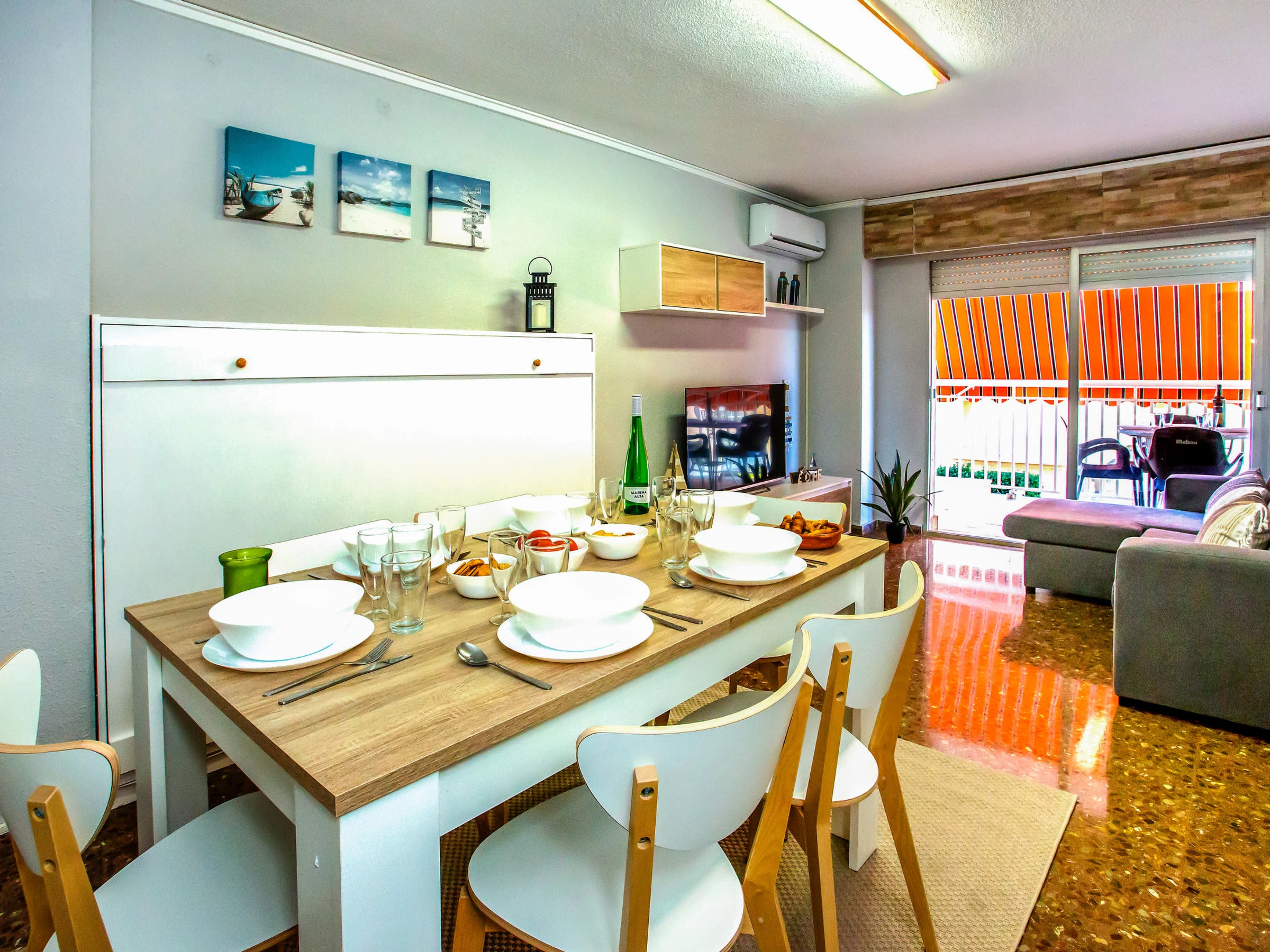 "Tiburon", 3-room apartment 75 m2. Comfortable and beautiful furnishings: living/dining room with digital TV, air conditioning and forced-air heating. Exit to the terrace. 1 room with 1 french bed (135 cm, length 200 cm), air conditioning, fan and forced-air heating. 1 room with 2 beds (90 cm, length 200 cm), air conditioning, fan and forced-air heating. Kitchen (oven, 3 ceramic glass hob hotplates, toaster, microwave, freezer). Bath/WC. Terrace 10 m2. Terrace furniture. Facilities: washing machine, iron, hair dryer. Internet (WiFi, free). Please note: TV only ES. [hidden]