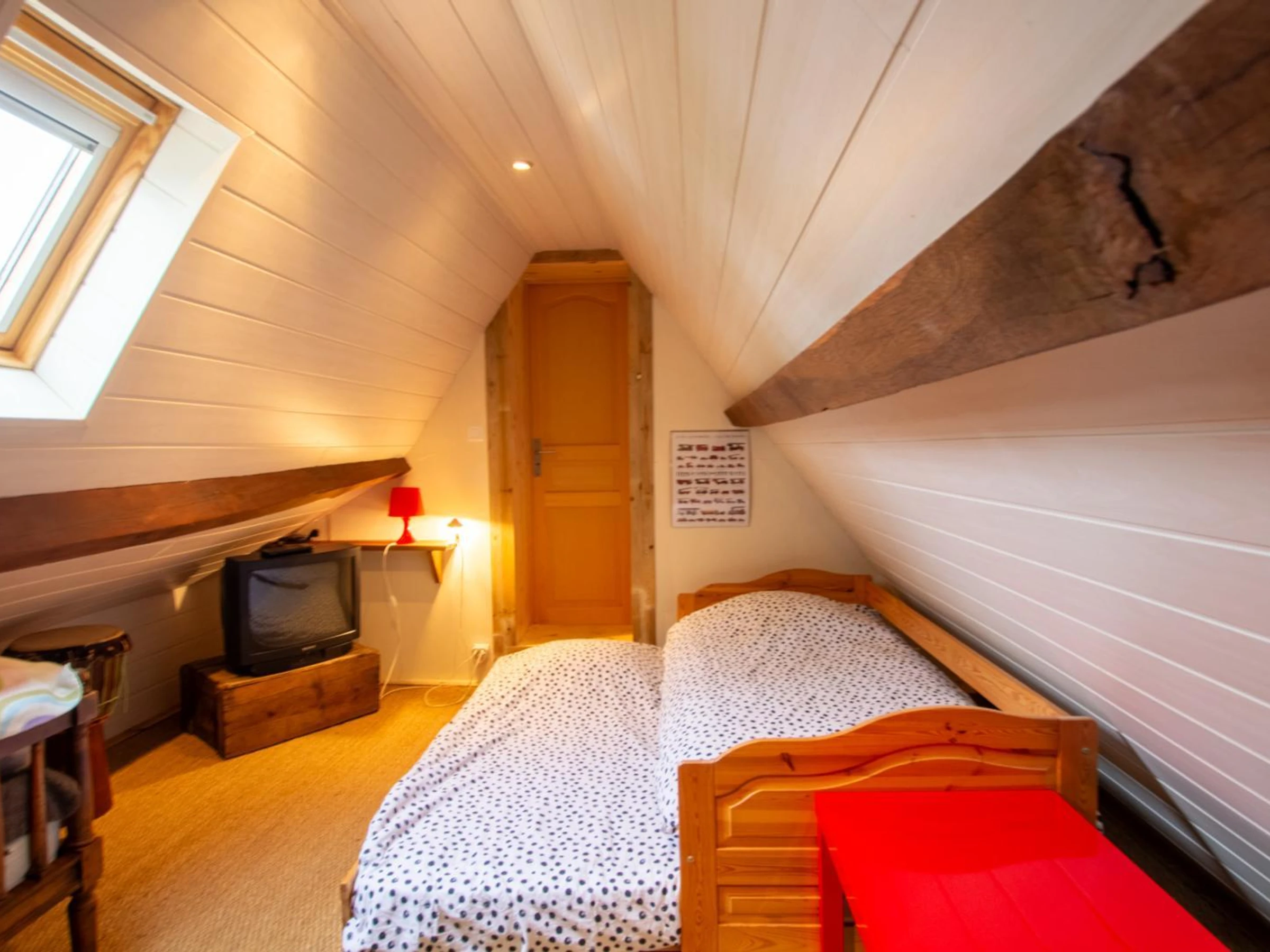 This traditional detached house sits on a 2000m² plot. It comprises a separate, fully equipped kitchen (dishwasher, fridge-freezer, 5-burner gas hob, microwave), a living room with TV, sofa, and Wi-Fi, and a mezzanine bedroom with a double bed (accessible from the living room).