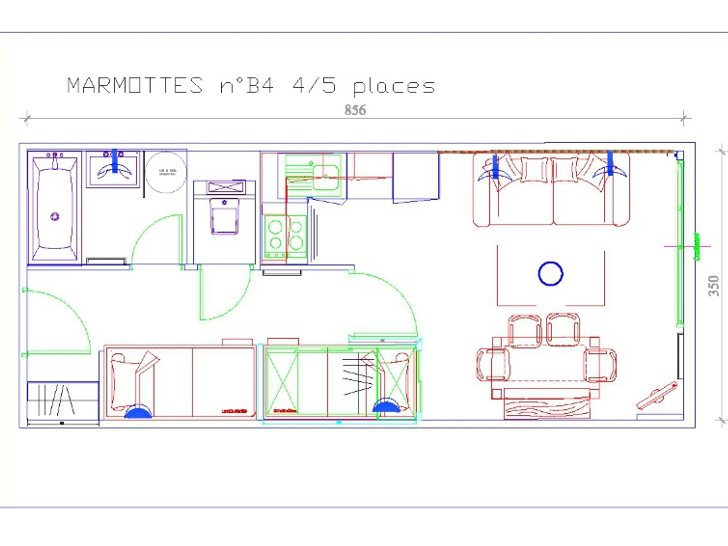 LES MARMOTTES residence, comfortable studio for 4/5 people, 4th floor, view of the slopes, 29m², south-east facing, ski locker, electric heating.