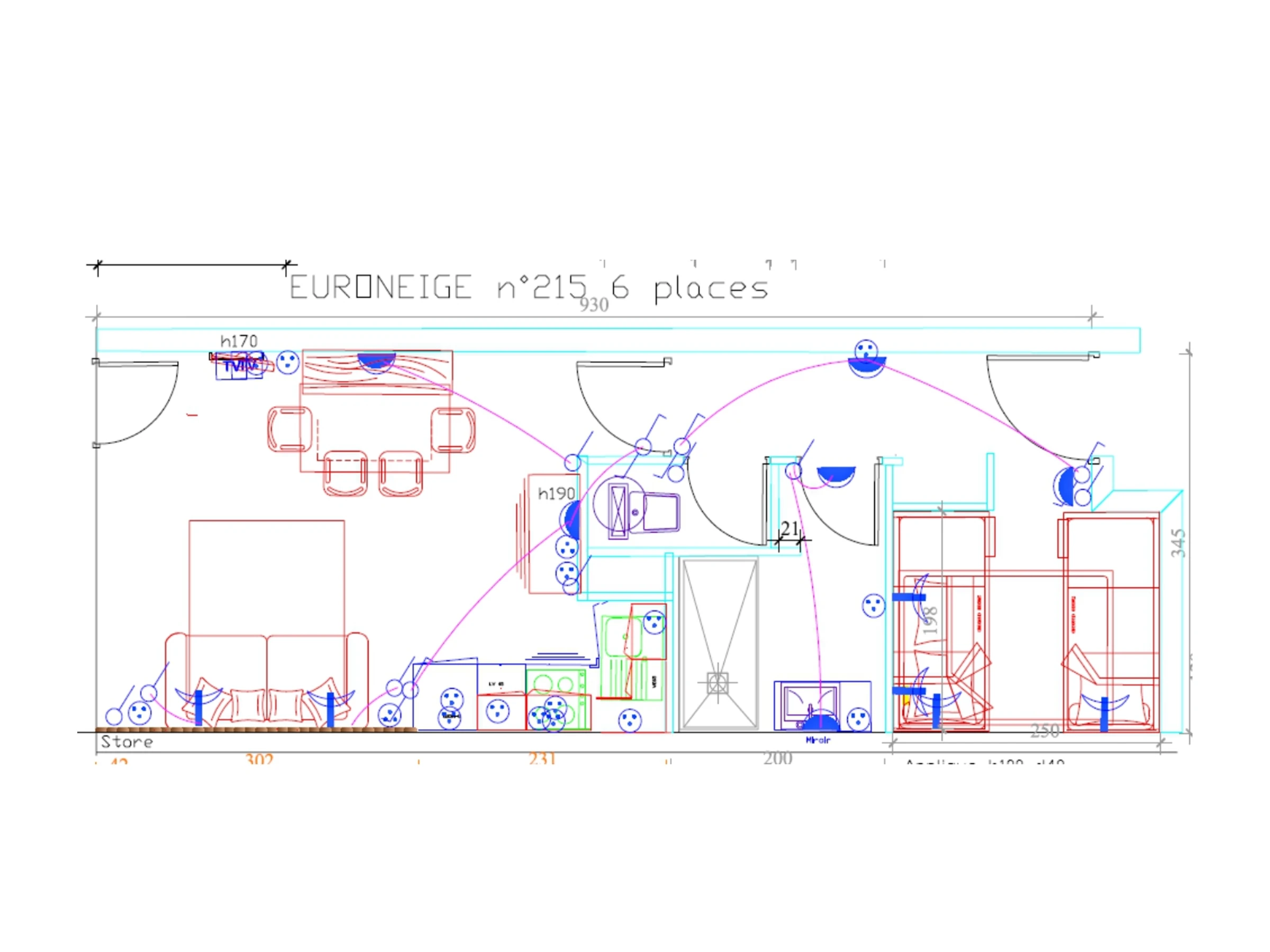 EURONEIGE residence, comfort category studio apartment, sleeps 6, 2nd floor, view of the slopes, 30m², south-west facing, electric heating.