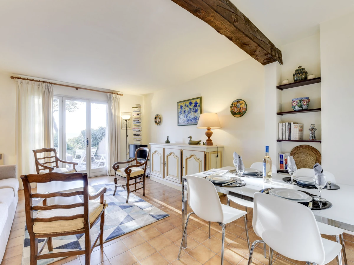 Residence "La Fons Couverte". In the resort 500 m from the centre of Grimaud, 5 km from the sea. For shared use: swimming pool (16 x 6 m, depth 90 - 220 cm, seasonal availability: [hidden] Parking. Shop, grocery 500 m, supermarket 5 km, restaurant 500 m, sandy beach "Port Grimaud" 5 km. Sports harbour 5 km, golf course (18 hole) 6 km, sailing school 5.5 km, riding stable 2 km. Nearby attractions: Port Grimaud 5 km, Parc d'attractions Azur Park 5 km, Saint Tropez 8 km, Plages de Pampelonne 16 km, Cannes 84 km, Nice 110 km. Well-known lakes can easily be reached: Lac de Saint Croix 92 km. Hiking paths: Massif de l'Esterel 50 km. Please note: car recommended.