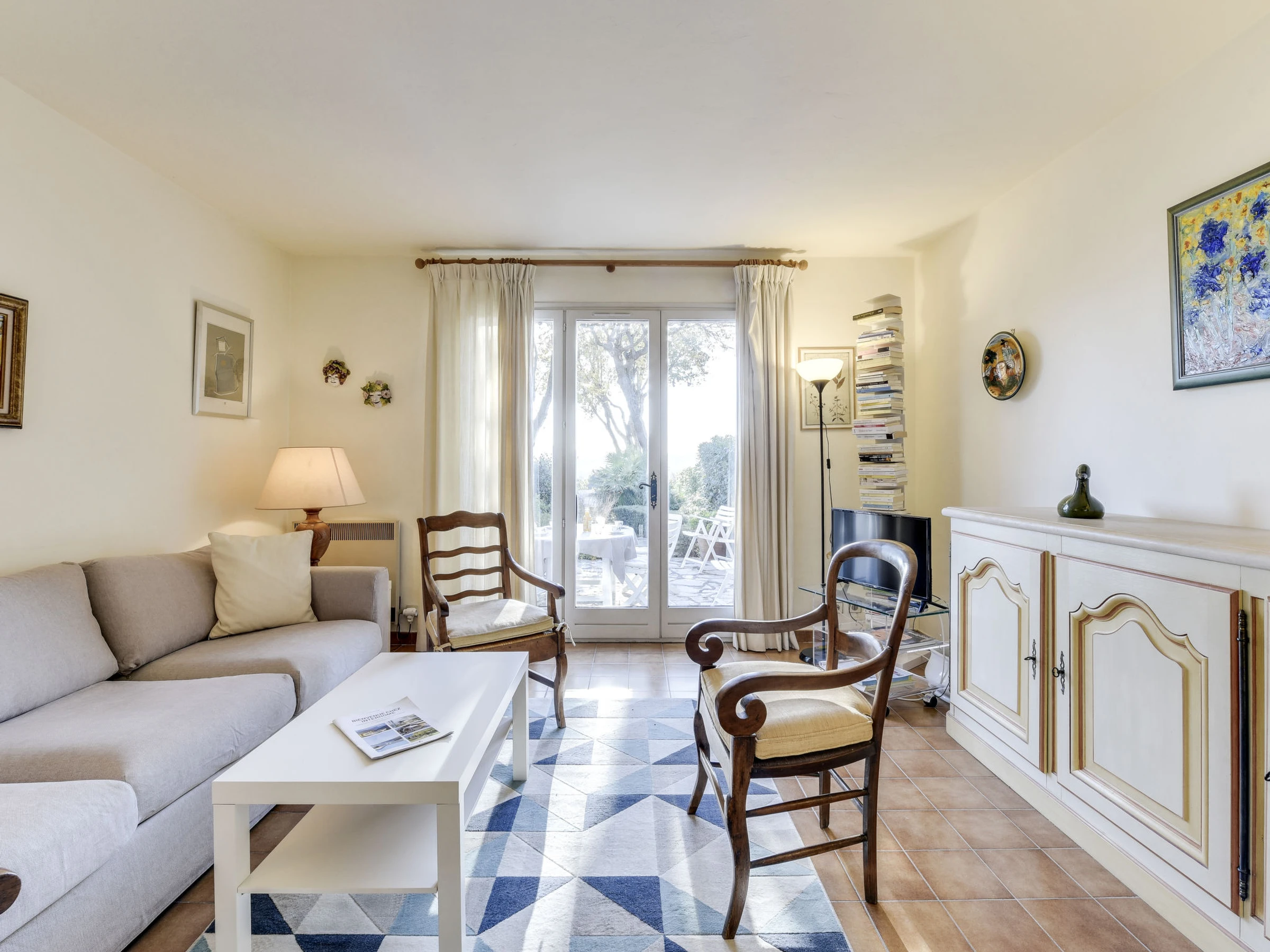 3-room terraced house 75 m2 on 2 levels. Comfortable furnishings: living/dining room with TV (flat screen). Exit to the terrace. Kitchen (dishwasher, 4 ceramic glass hob hotplates, microwave, electric coffee machine). Upper floor: 1 room with 1 french bed (160 cm, length 200 cm), air conditioning. 1 room with 1 double bed (2 x 90 cm, length 190 cm). Shower, sep. WC. Terrace 16 m2, patio 20 m2. Terrace furniture. View of the countryside. Facilities: washing machine. Internet (WiFi, free). Please note: smoke alarm. [hidden]