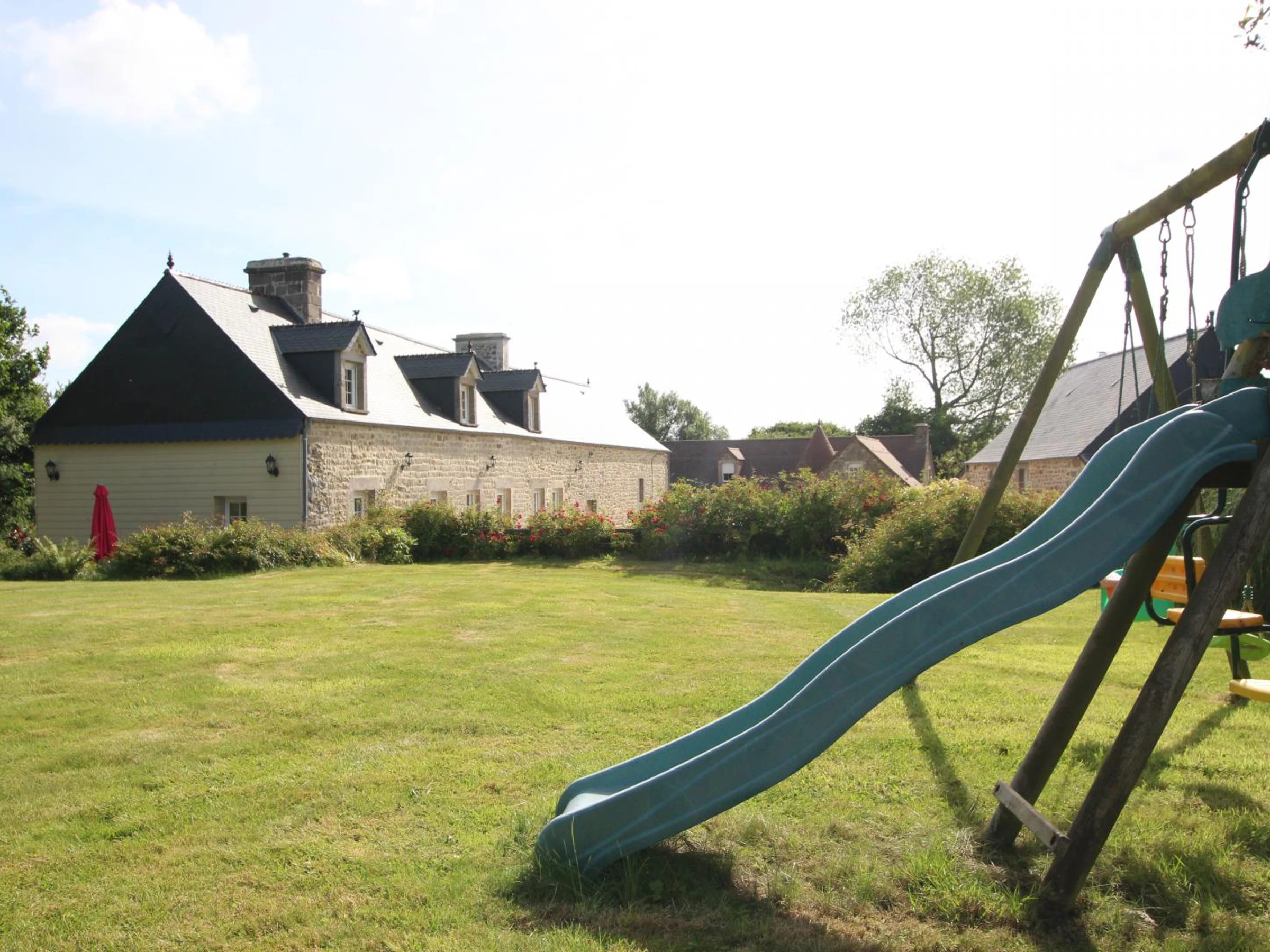 Detached house. Ground floor: Living room with fireplace (TV, Wi-Fi, DVD player, mini stereo system). Open-plan fitted and equipped kitchen (gas/induction hob, dishwasher, microwave, electric oven, espresso machine, separate freezer). Office (children's foosball table). Shower room with WC. Laundry room (washing machine, tumble dryer). Upstairs: Bedroom 1 (double bed 140x190cm), Bedroom 2 (queen bed 160x200cm). Bedroom 3 (single bed 90x190cm). Bathroom with WC (corner bath). Shared courtyard. Private, unfenced garden. Terrace. Garden furniture. Barbecue. Sun loungers. Covered shelter. Swing set. Table tennis. Bicycles available (3 adult bikes). Board games and books. Heat pump heating available at an extra charge from October to June. Bed linen and towels provided. Beds made on arrival. Baby equipment available. In a beautiful and peaceful rural setting, this stone house offers very spacious rooms, including a large open-plan kitchen and living room. A young orchard provides a lovely green space on the gable end.