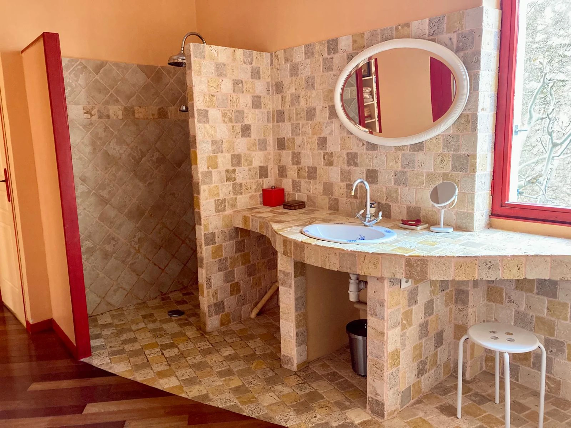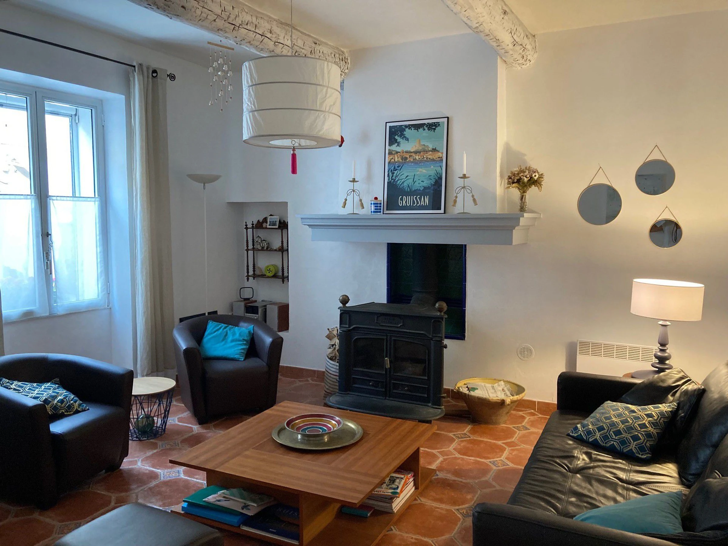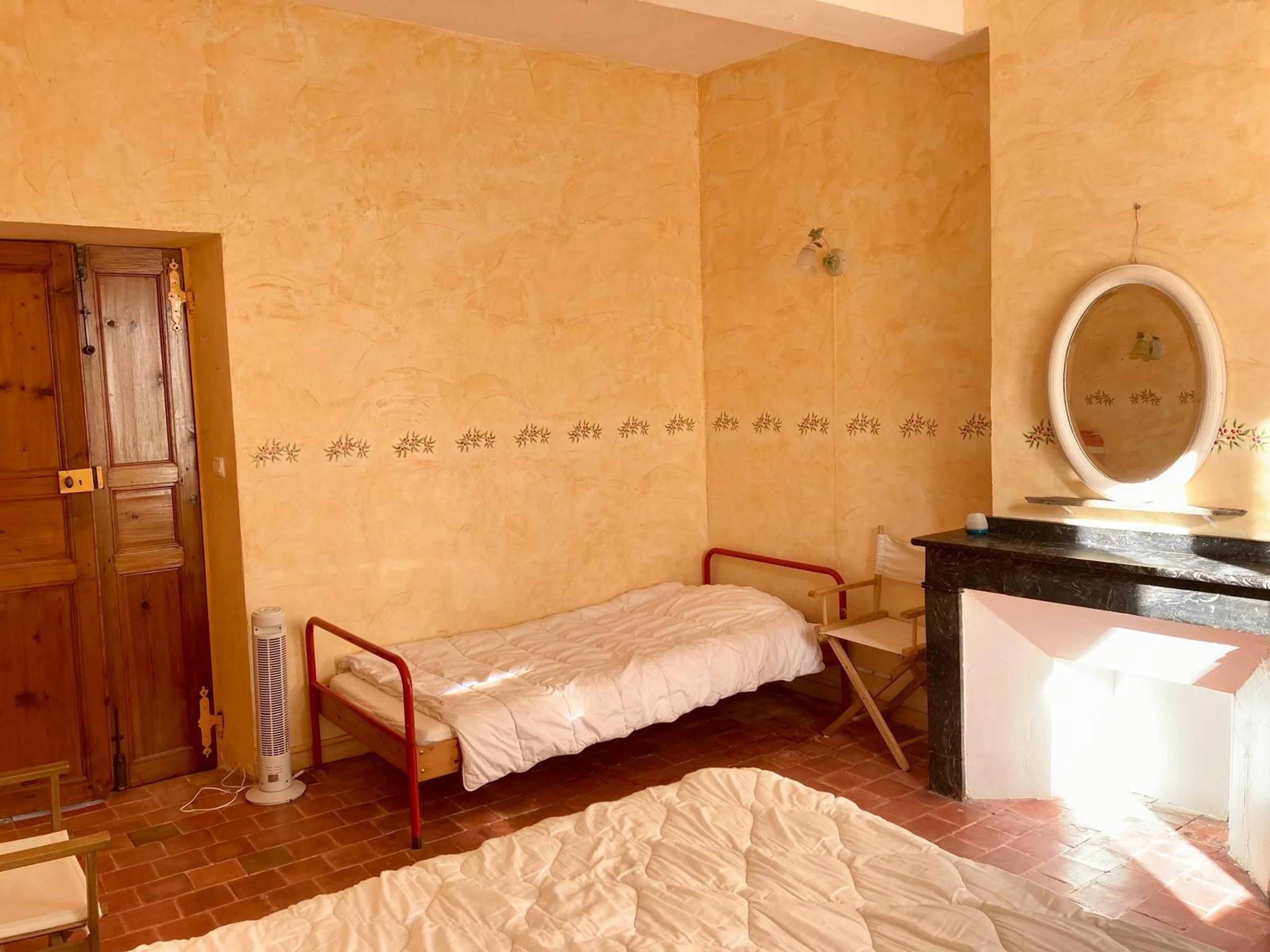 Donne sur une rue animée par le marché les lundi, mercredi et samedi.