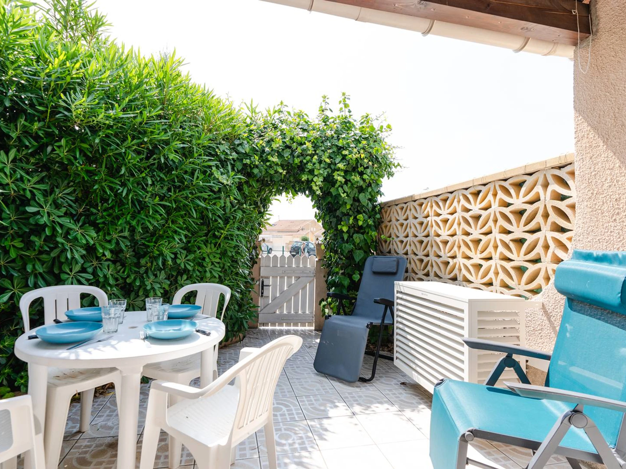 This pavilion is located in a gated residence close to Les Ayguades beach.