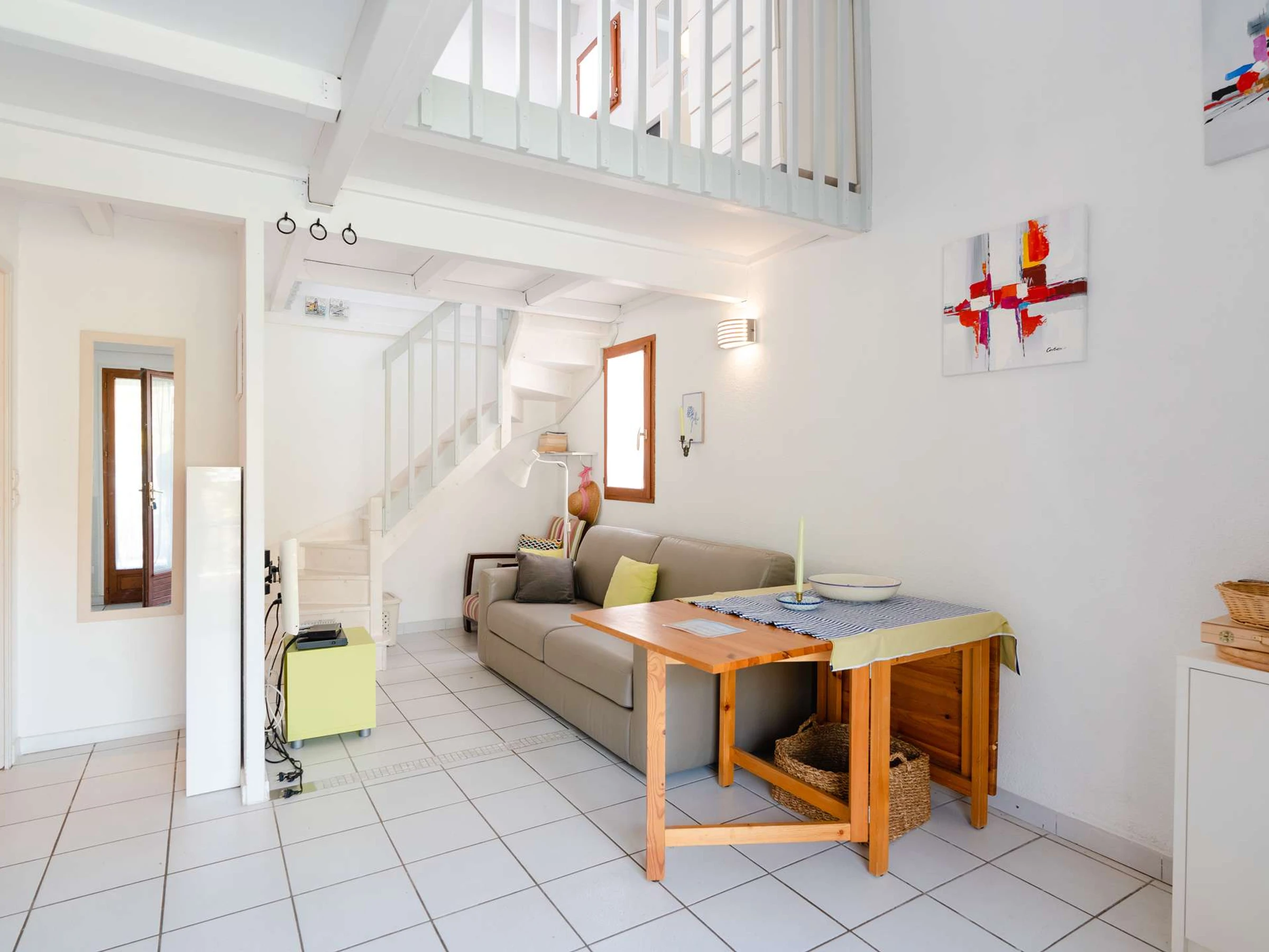 The mezzanine has 4 beds: 1 double bed (2 mattresses 80x200) and 2 single beds (80x200). This accommodation does not have a heating system.