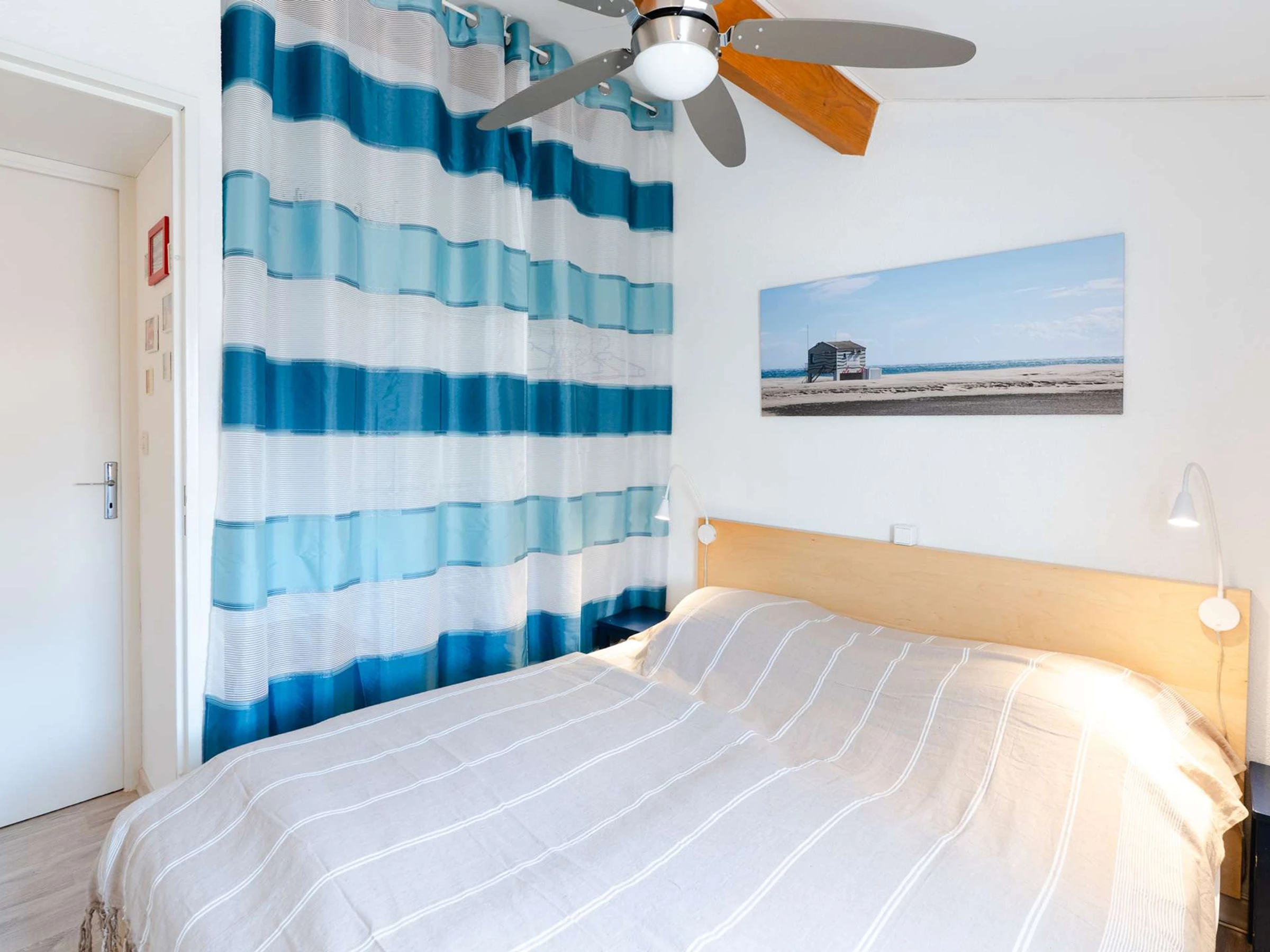 On the first floor, a bedroom with a double bed (2 mattresses 80x200) and its wardrobe, a second bedroom with bunk beds (2x90x190).