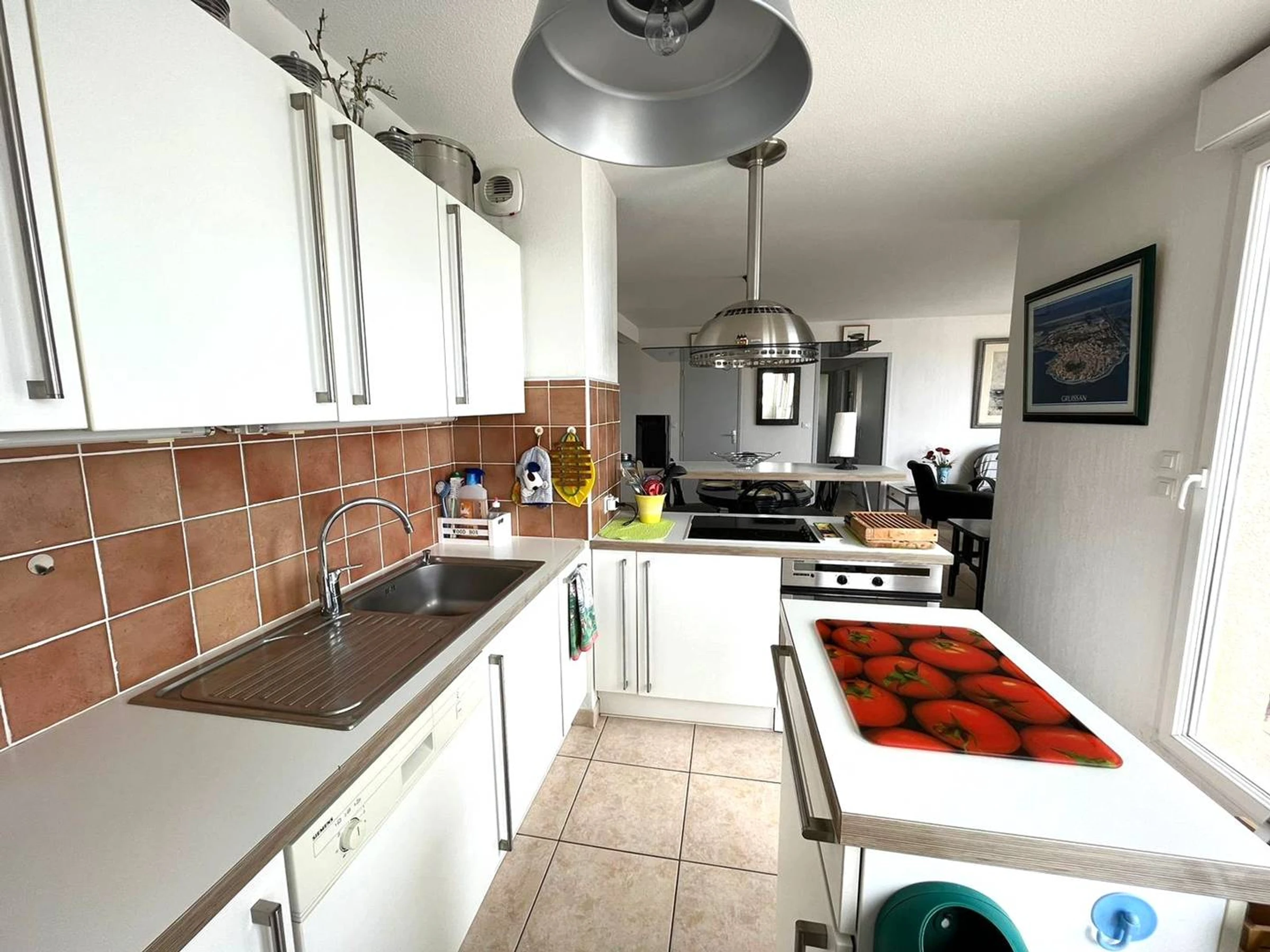 The residence has a sea view swimming pool. The apartment is located on the 3rd and last floor with elevator, it is composed of a fully equipped kitchen (Senseo, dishwasher, washing machine, 4-burner hob, a fridge-freezer, [hidden] main living room has a dining area and a lounge area with TV, sea view and direct access to the terrace from the kitchen living room.