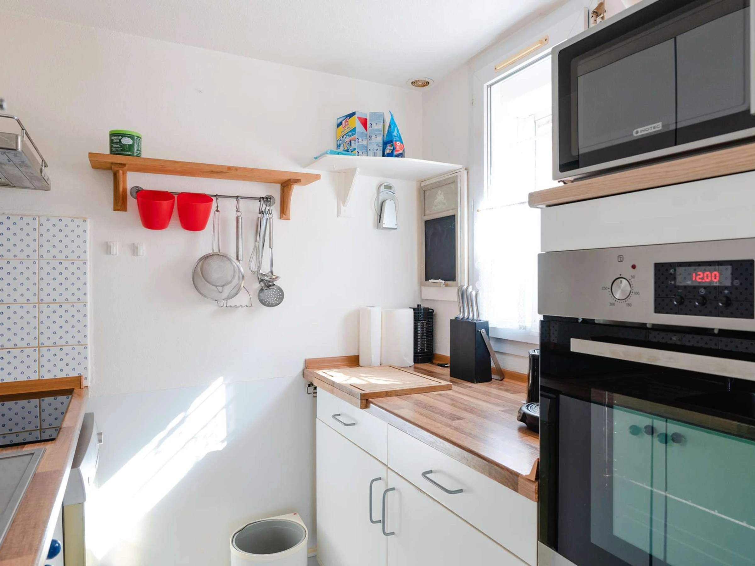 The terrace has awnings and garden furniture; the veranda has a sofa bed (140x190cm) and TV (German and French channels). The kitchen/dining area has a table with chairs, a chest of drawers and a fully-equipped kitchen (4-burner ceramic hob, extractor hood, Senseo coffee maker, toaster, kettle, fridge with freezer compartment, oven, microwave, washing machine and dishwasher). The shower room with shower and WC is on the ground floor.