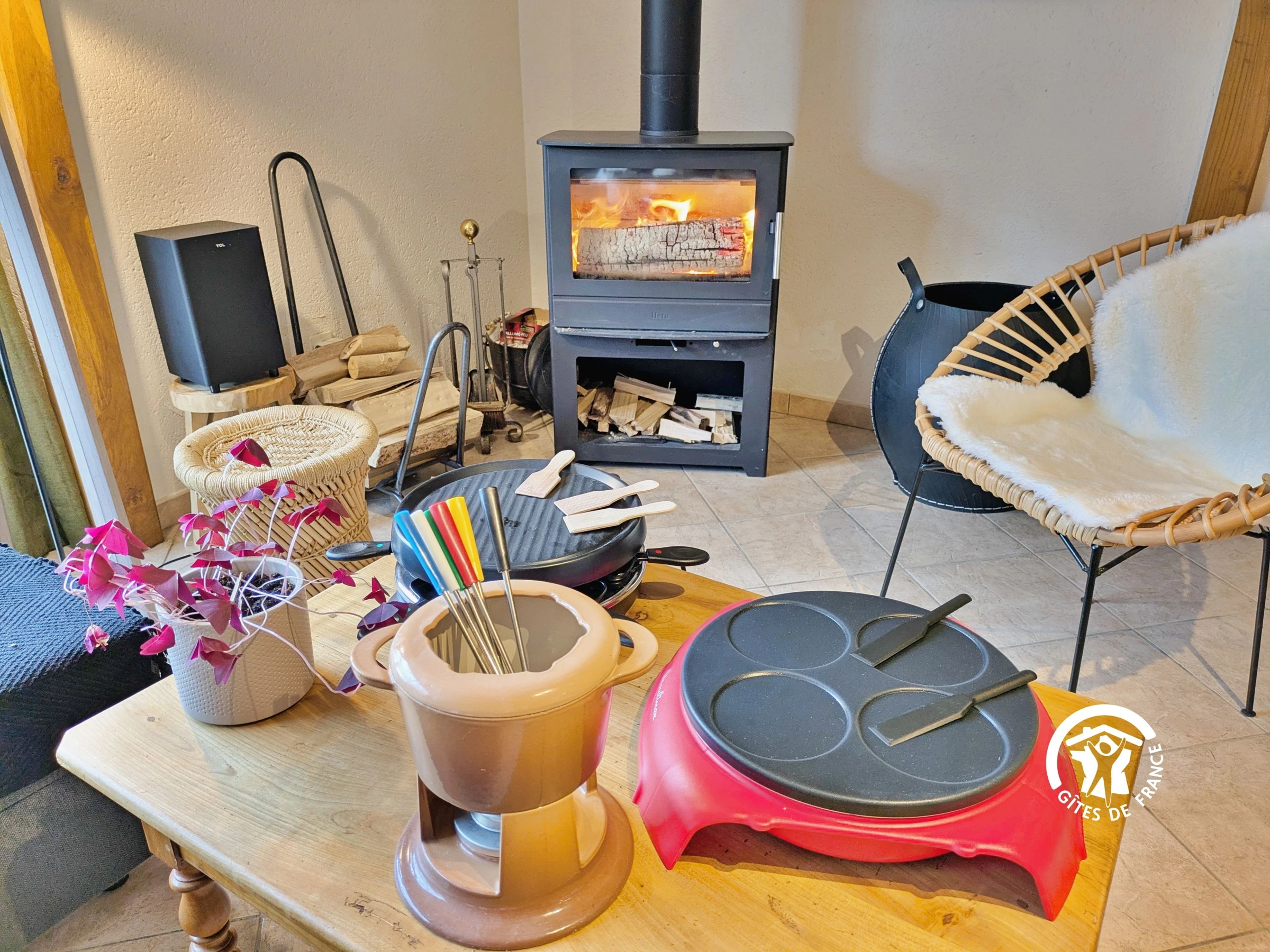 Electric heating and wood-burning stove.