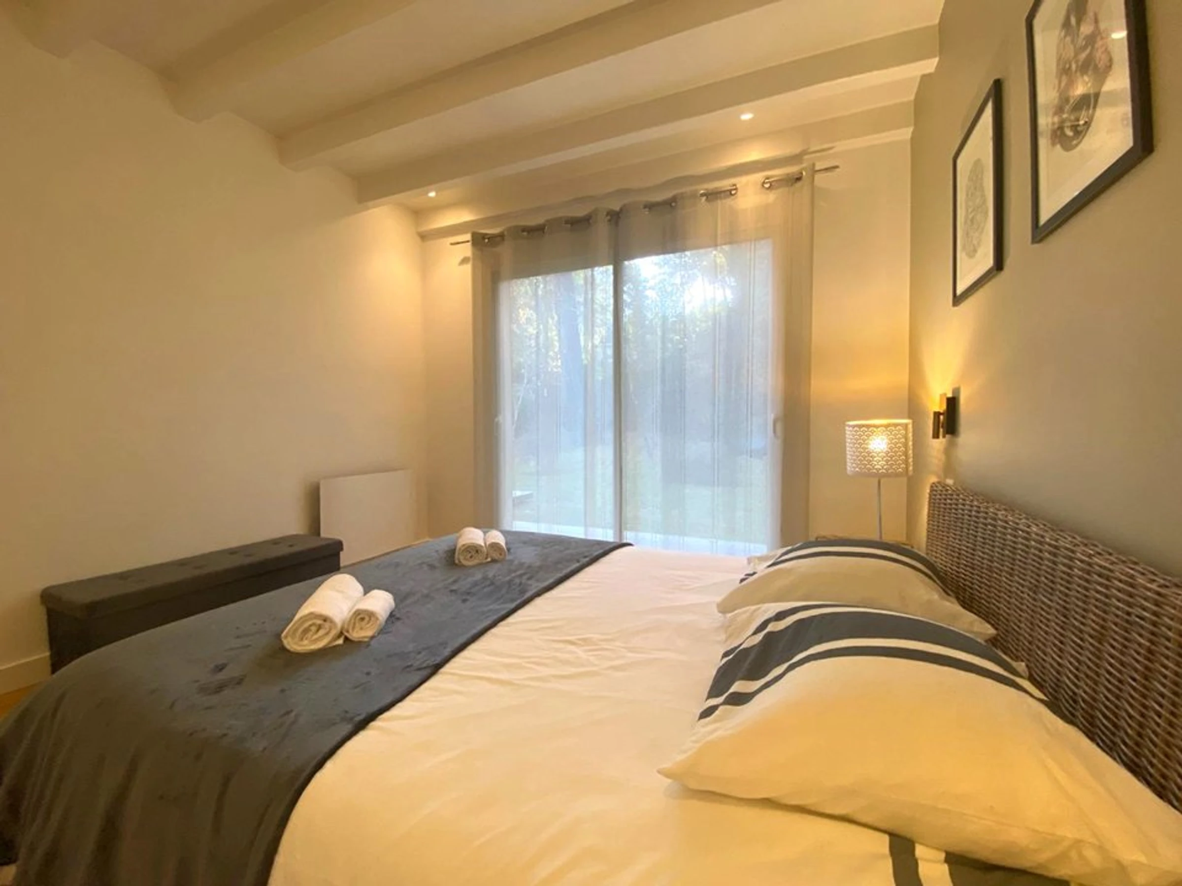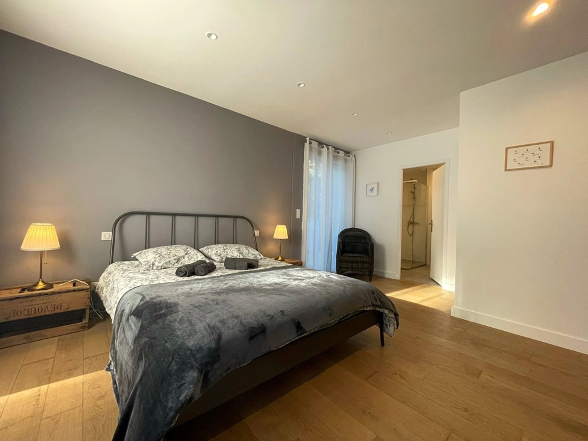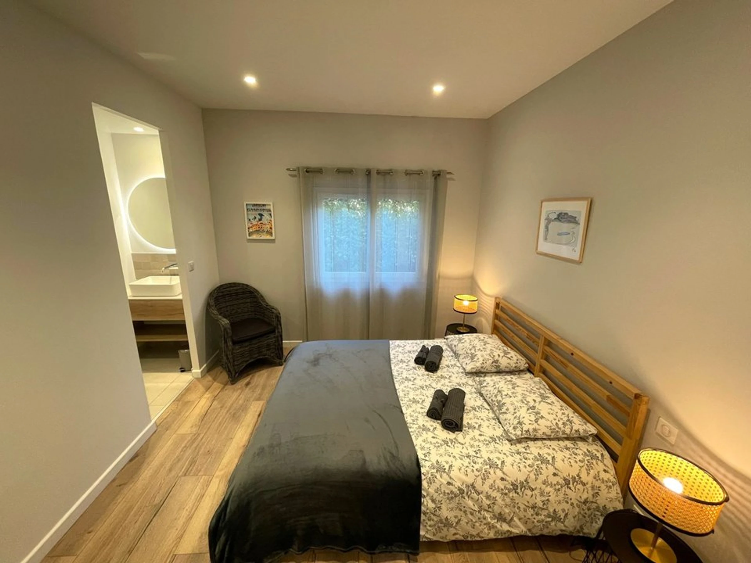 - une seconde suite parentale très spacieuse avec un lit 160cm, un très grand placard et sa salle d'eau attenante, douche à l'italienne et WC intégré, dotée d'un accès de plain-pied vers la terrasse principale.