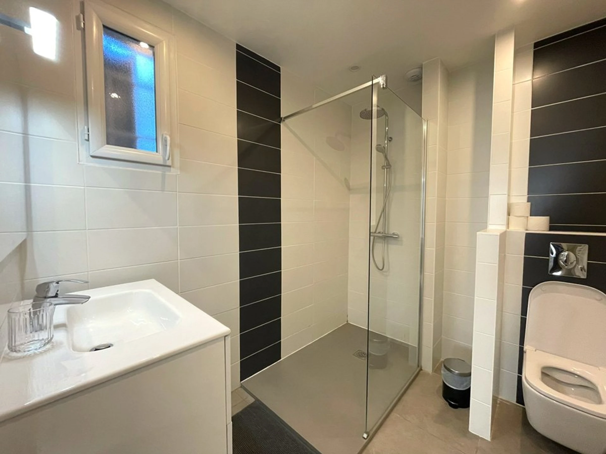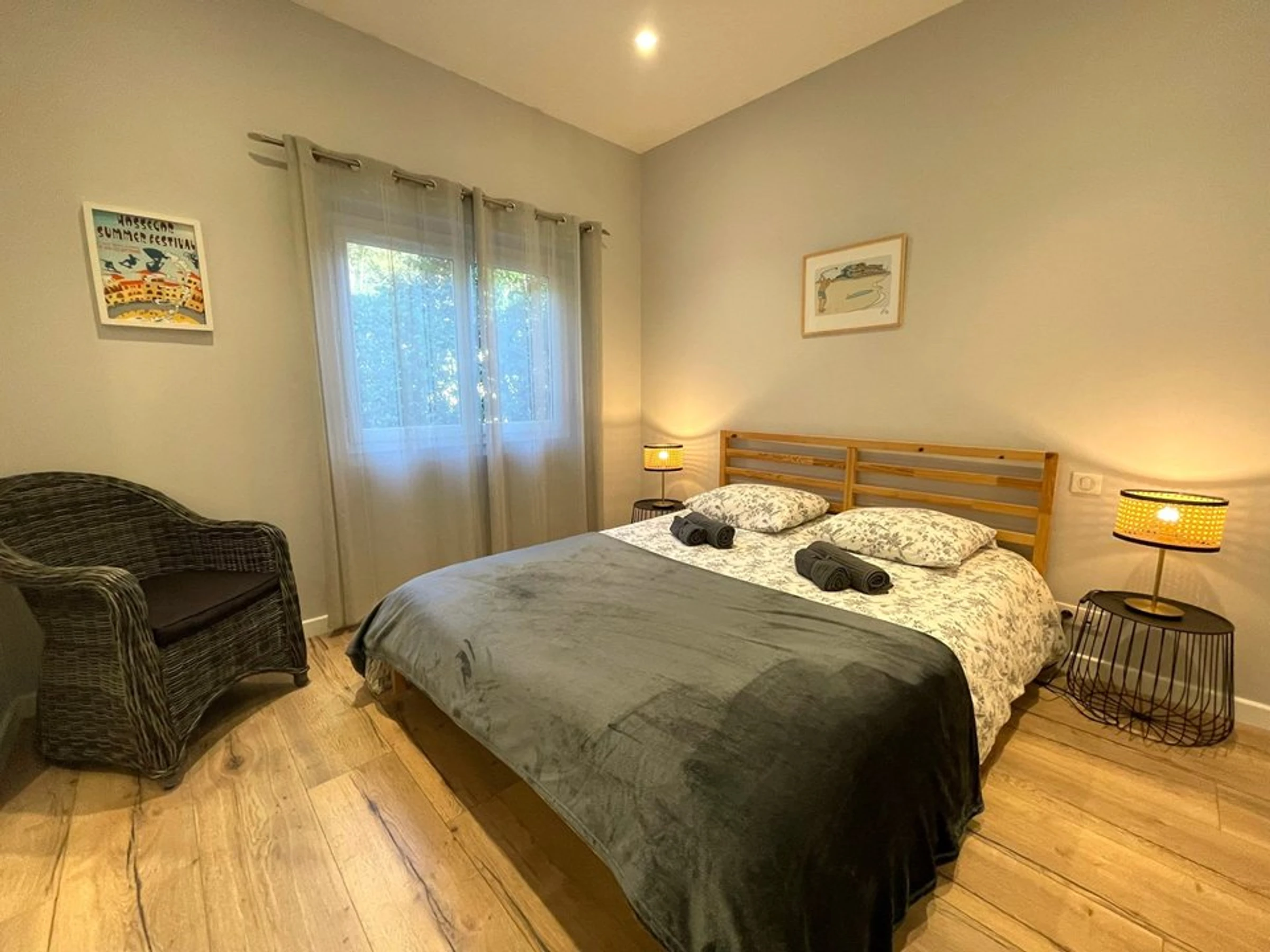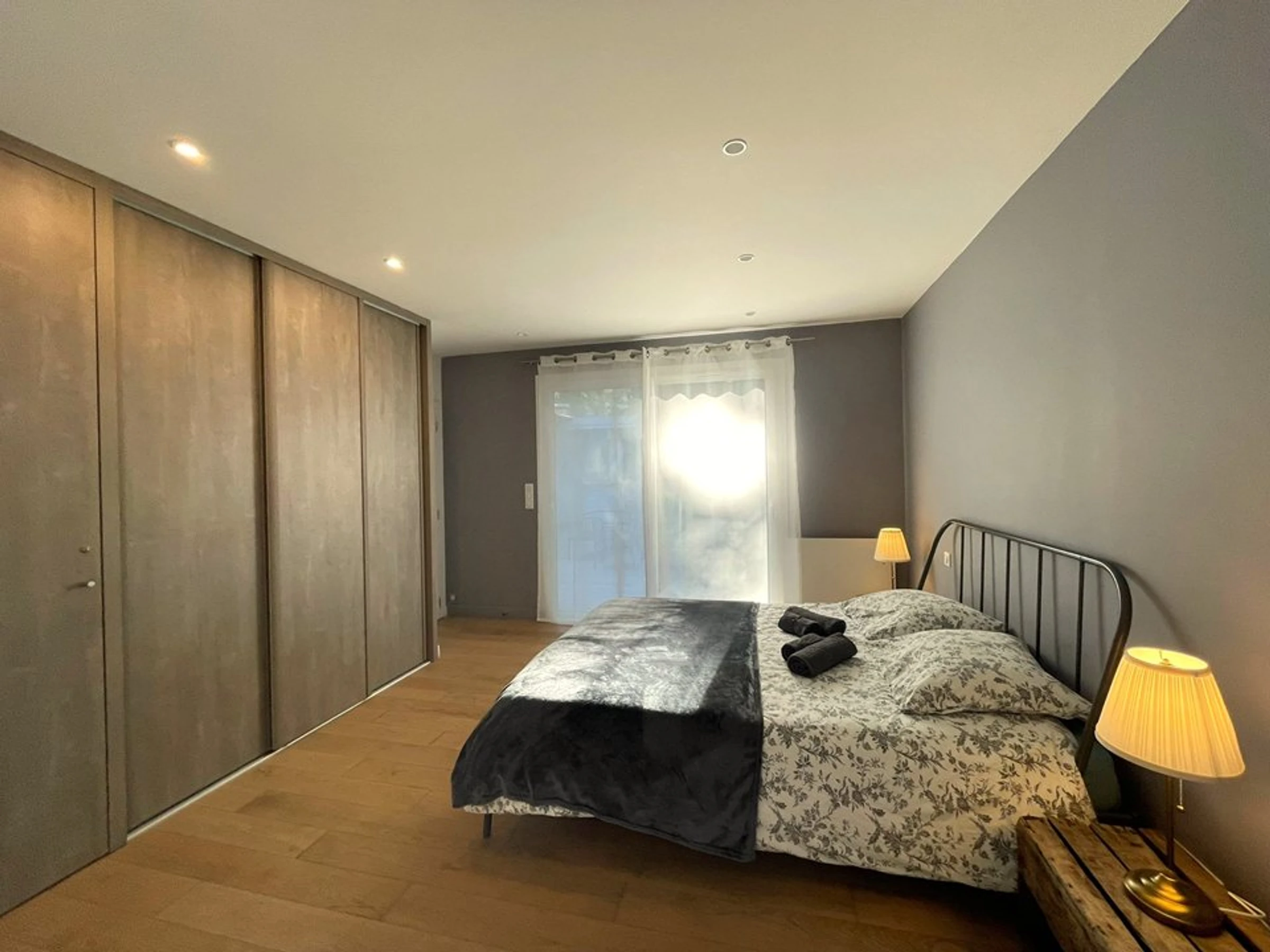 - une seconde suite parentale très spacieuse avec un lit 160cm, un très grand placard et sa salle d'eau attenante, douche à l'italienne et WC intégré, dotée d'un accès de plain-pied vers la terrasse principale.