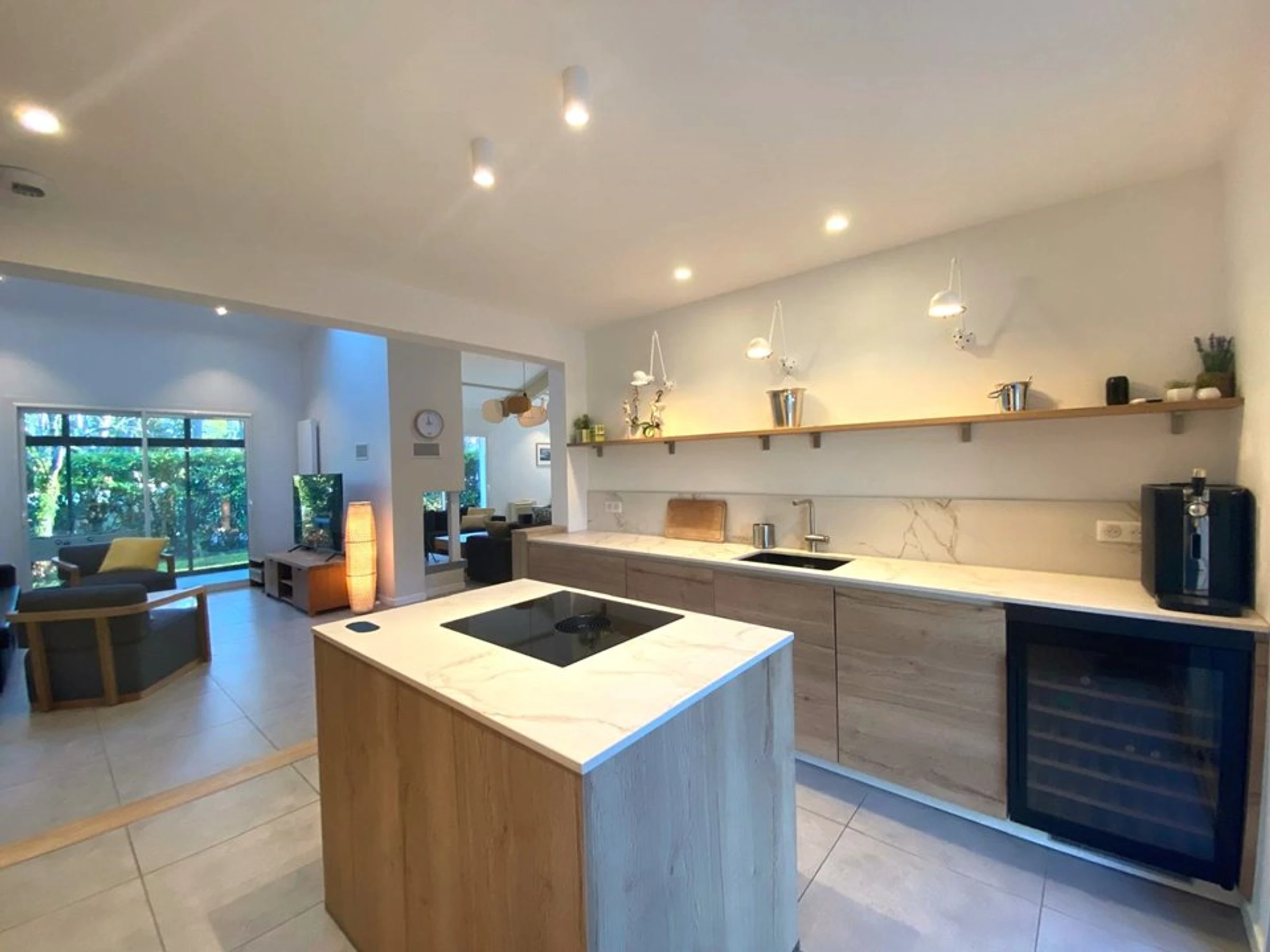 - une cuisine américaine rénovée et entièrement équipée, ouverte sur le séjour et dotée d'un accès de plain-pied vers la terrasse principale.