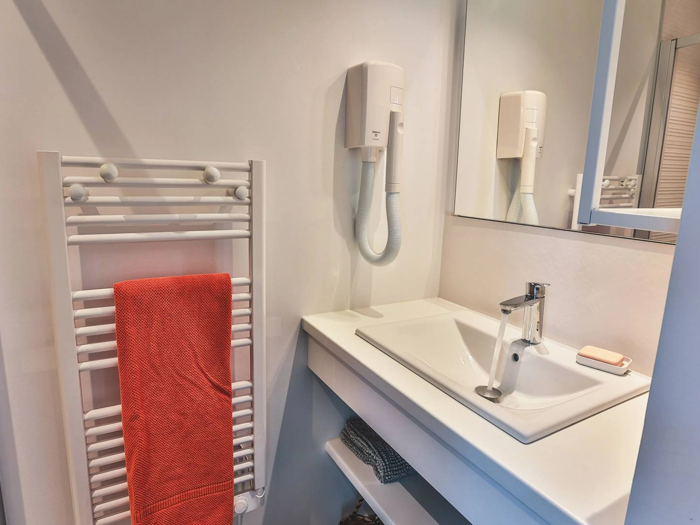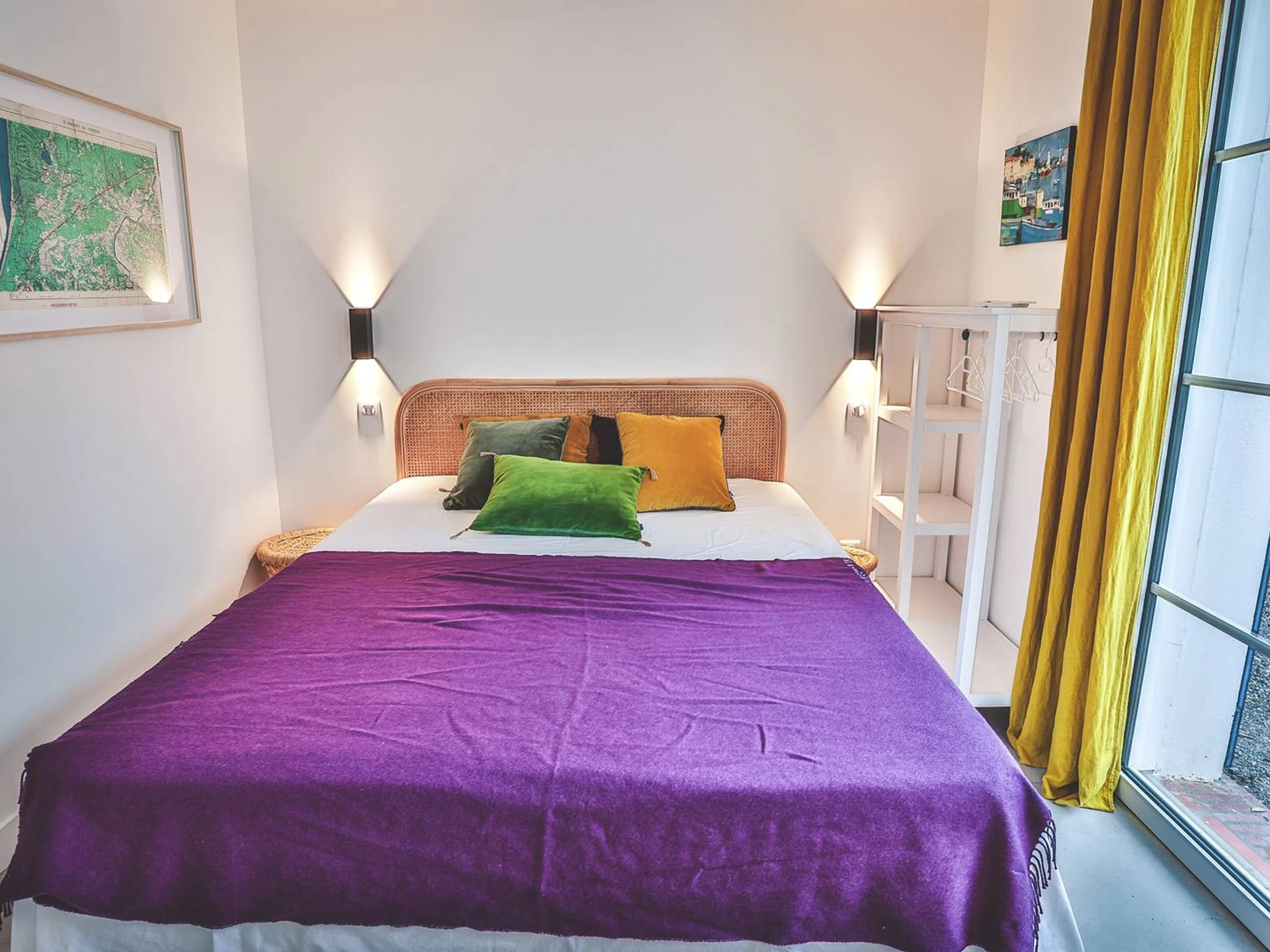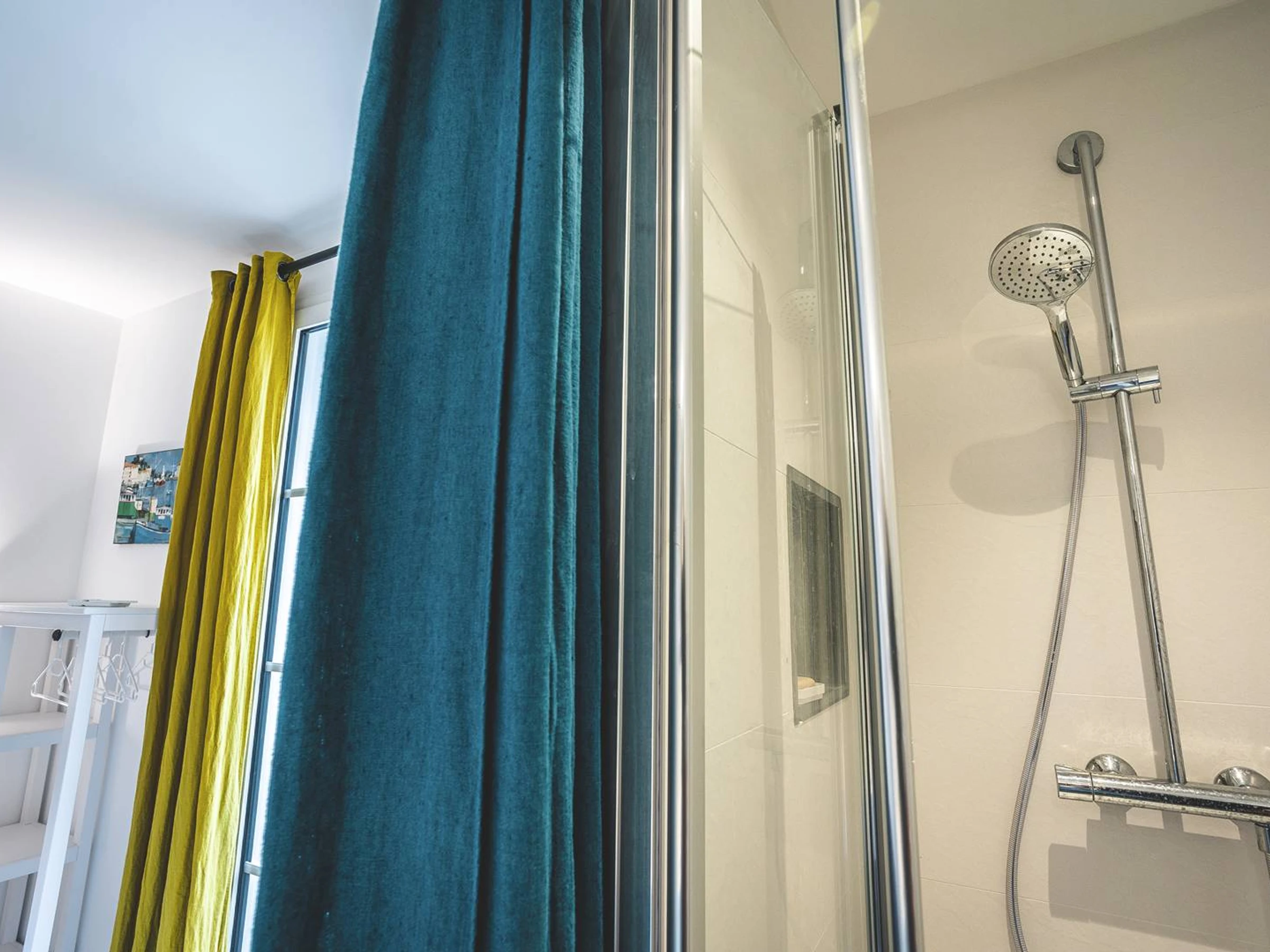 Bedroom (2.84 x 2.83) opening onto the street facade: 2 beds 80 close together (only one duvet). Adjoining shower room (2.17 x 0.90): shower and sink. Suspended WC with washbasin.
