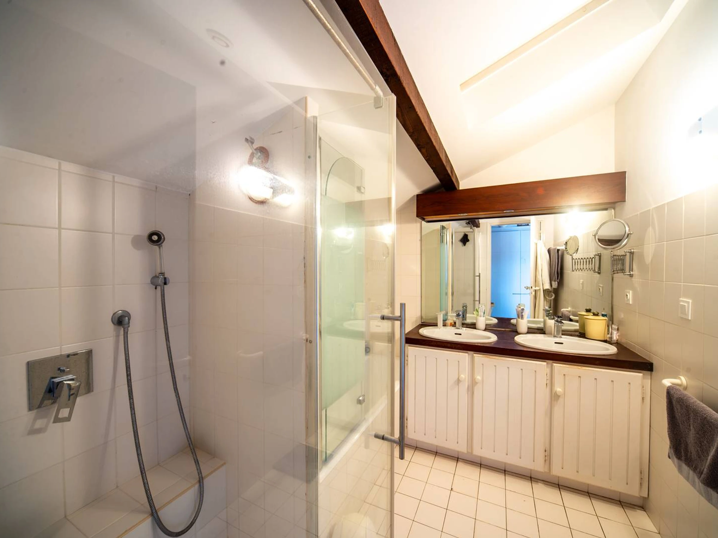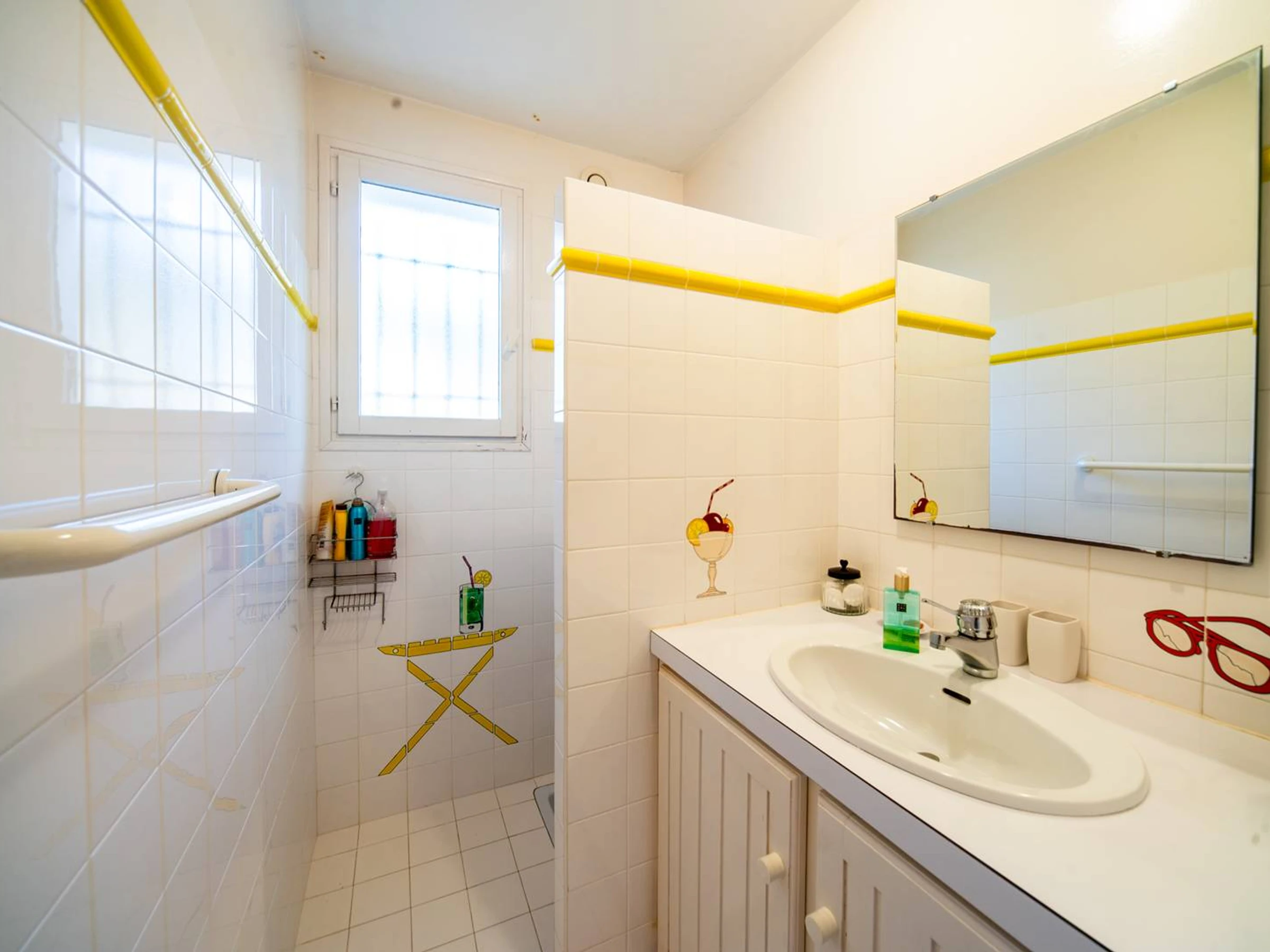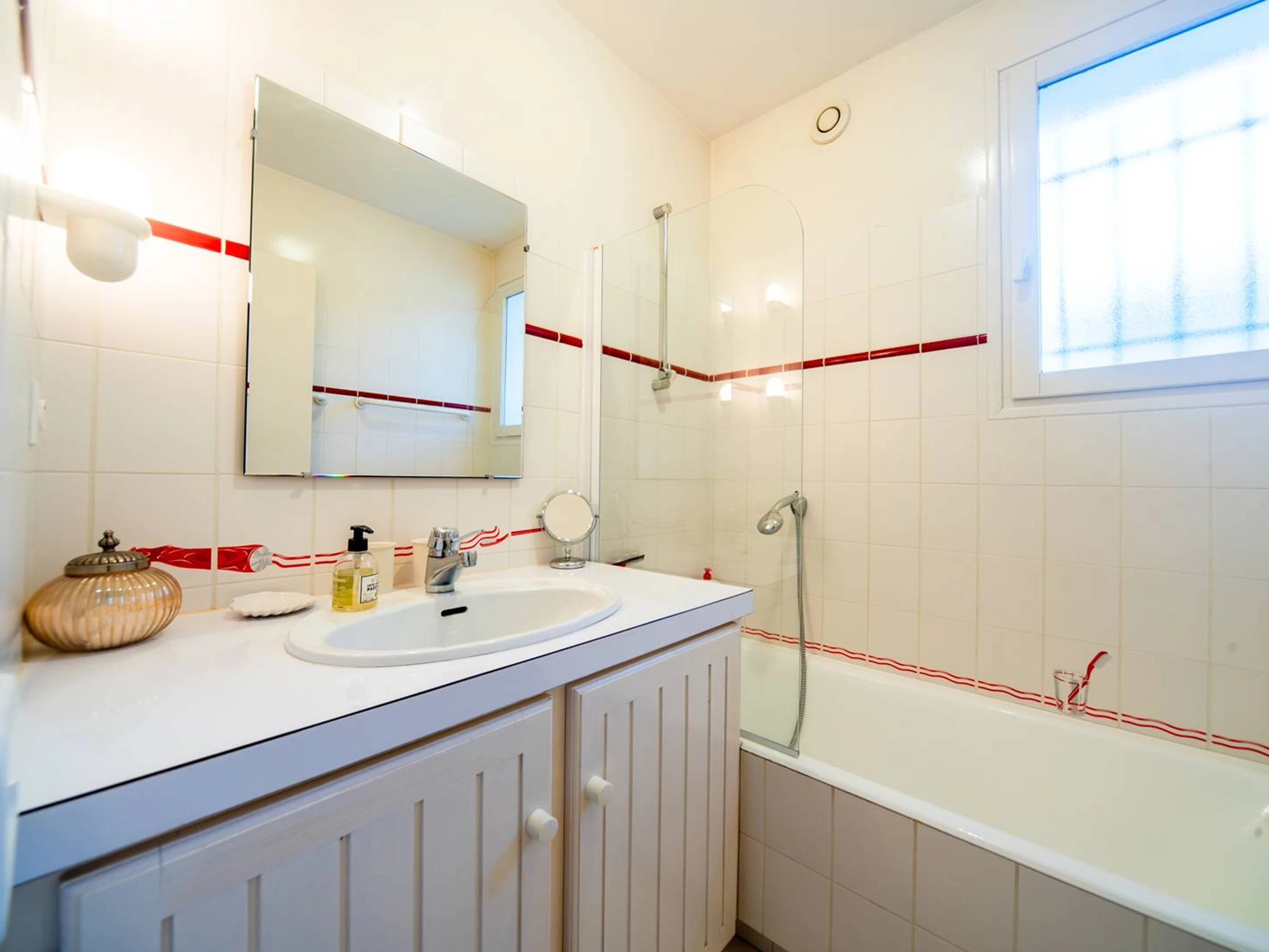 The ground floor has a sleeping area with four bedrooms, each with 2 single beds (0.90cm) close together and fitted with wardrobes, a shower room, a bathroom and separate WC for this sleeping area (an umbrella bed is available).