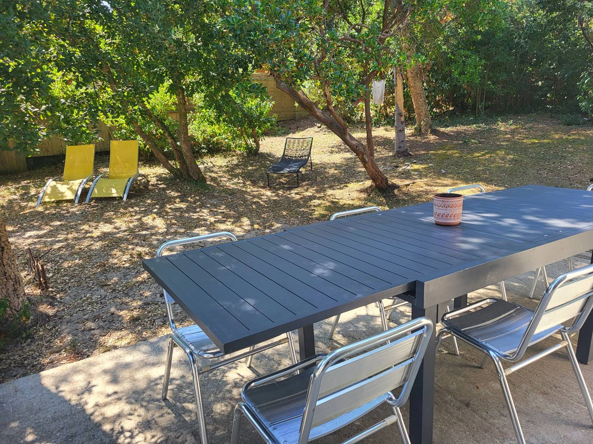 Highly sought after area for a good holiday. "The white beach" of the marine lake on foot and that of "la Gravière" nearby. The whole is simple and rustic, but the location is quiet and wooded. The terrace is cemented, the garden is partly sandy and undergrowth (arbutus and cork oaks). Ideal for family vacations. Household linen is not included in rentals. Out of season, provide heating package, contact us. Housing not accessible to people with reduced mobility.