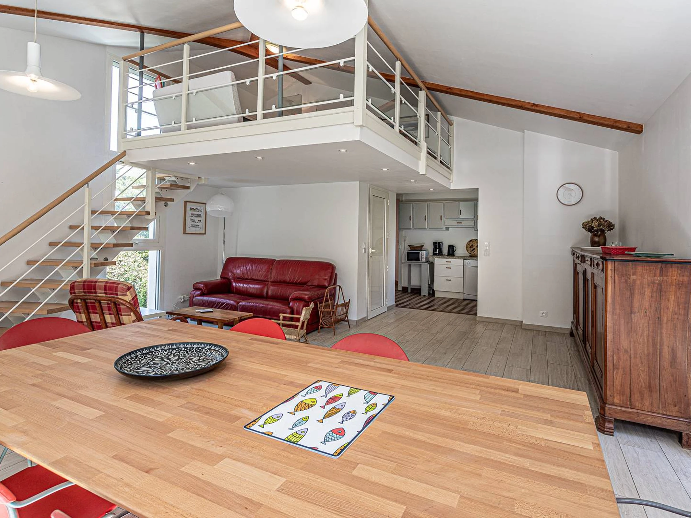 Mezzanine above the living room: 2 beds in 90.