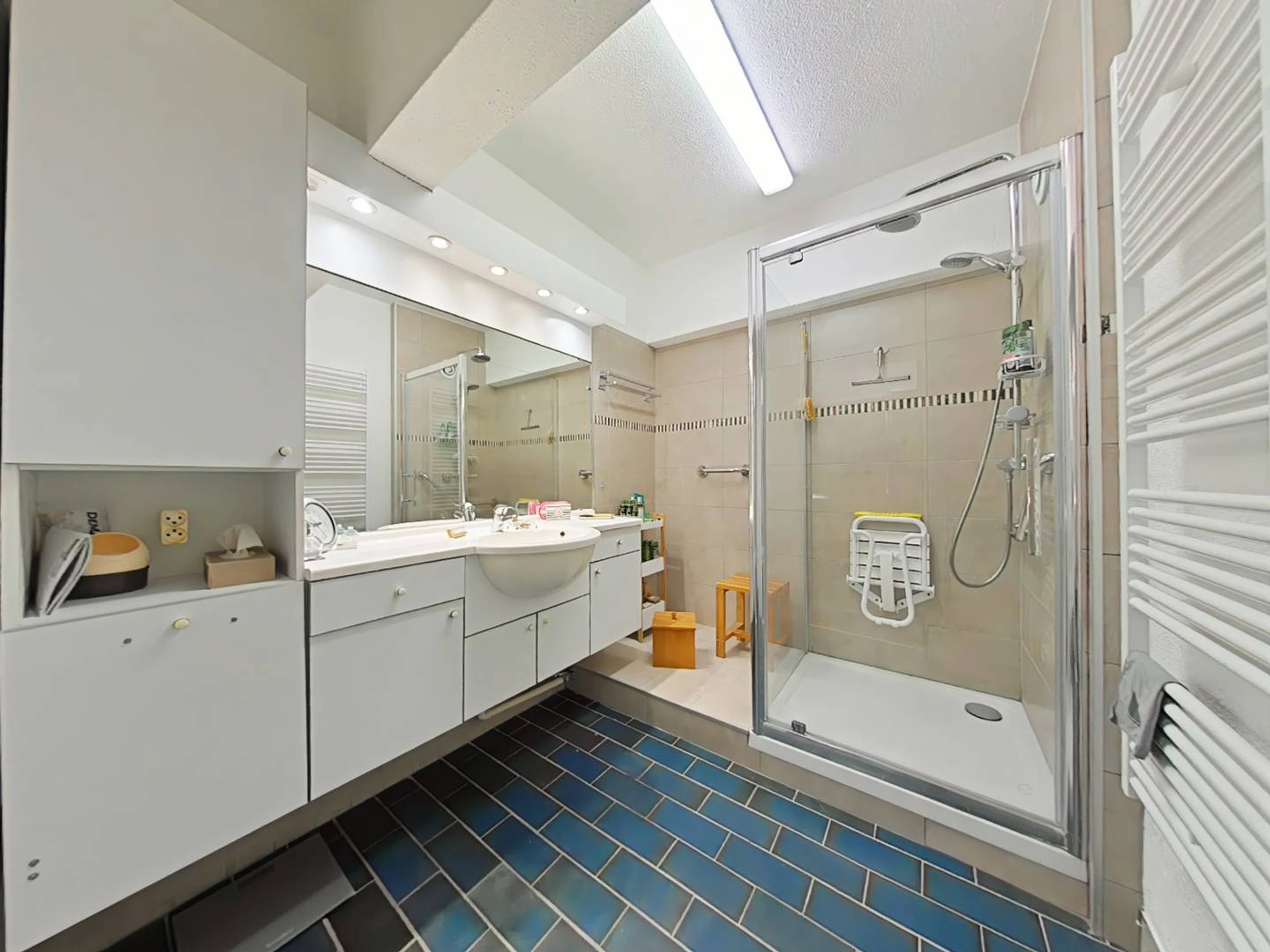This 3-room apartment features an entrance hall with ample storage space leading to a spacious living room with a fully fitted and equipped open kitchen (oven, hob, extractor hood, refrigerator-freezer, microwave, dishwasher) with direct access to the magnificent terrace with a 180° panoramic view that no one will ever tire of. There are also two air-conditioned bedrooms, a bathroom, and a separate toilet with a washing machine.