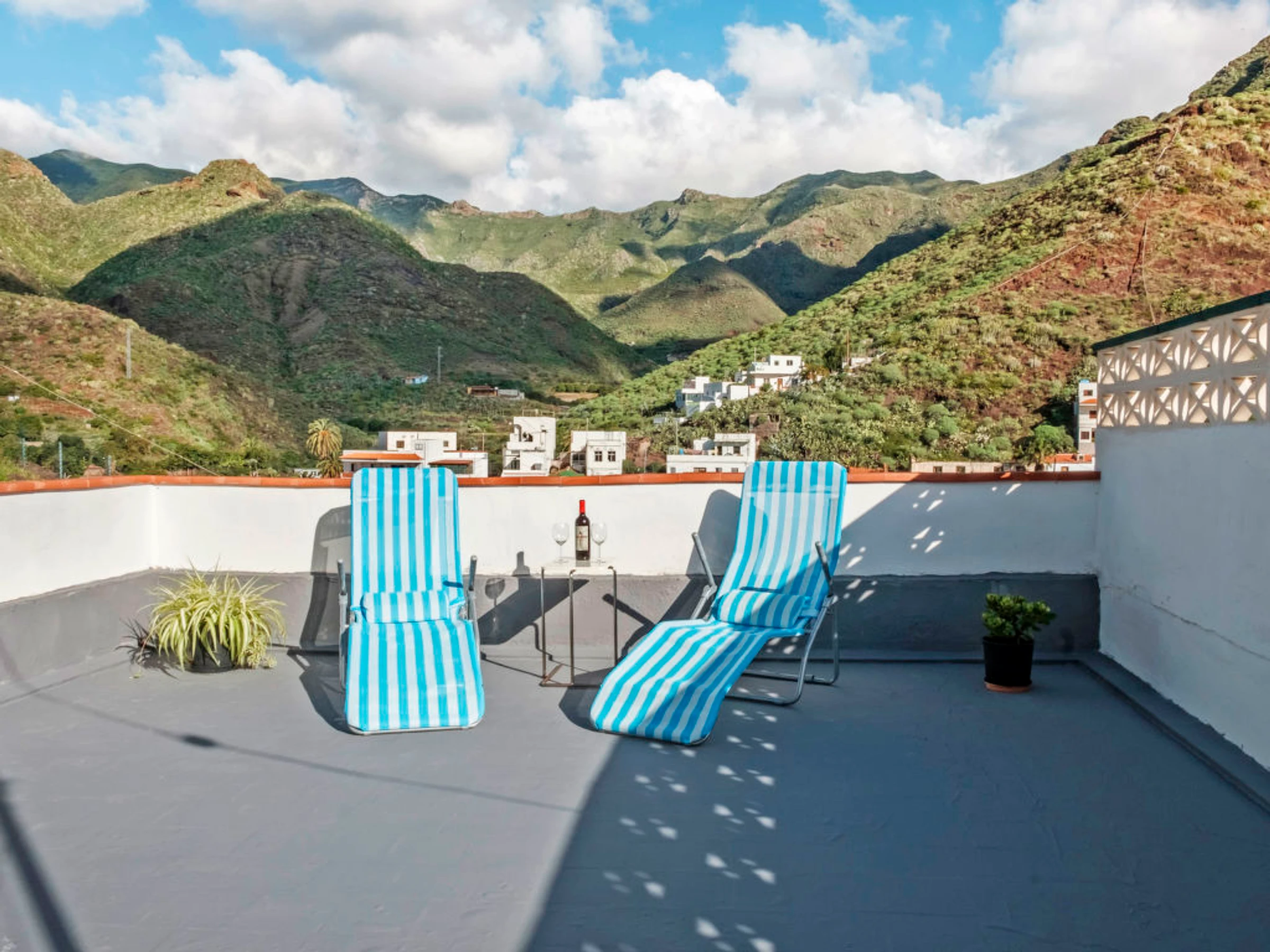 Lomo del llano 12 km from Santa Cruz: Beautiful, simple single-family house "Casita Canaria", 3 storeys, built in 2000, renovated in 2011. In the resort, in a quiet, sunny, elevated position on top of a hill, 300 m from the sea. Motor access (mountain road). 50 m stepped path (80 steps) to the house. Public parking on the road. Shop 12 km, grocery 100 m, supermarket 8 km, shopping centre 12 km, restaurant, bar, café, bus stop 100 m, sandy beach "Playa Igueste de San Andrés" 300 m, shingle beach "Playa Igueste de San Andrés" 300 m, outdoor swimming pool 12 km. Sports harbour 12 km. Nearby attractions: Centro Histórico Santa Cruz 12 km, Playa Las Teresitas 8 km, Parque Rural de Anaga (zona senderismo), Playa de Igueste (zona surfing). Please note: car recommended. Motorway 14 km from the property. Main road 50 m from the property. Nightclub/disco 12 km from the property.