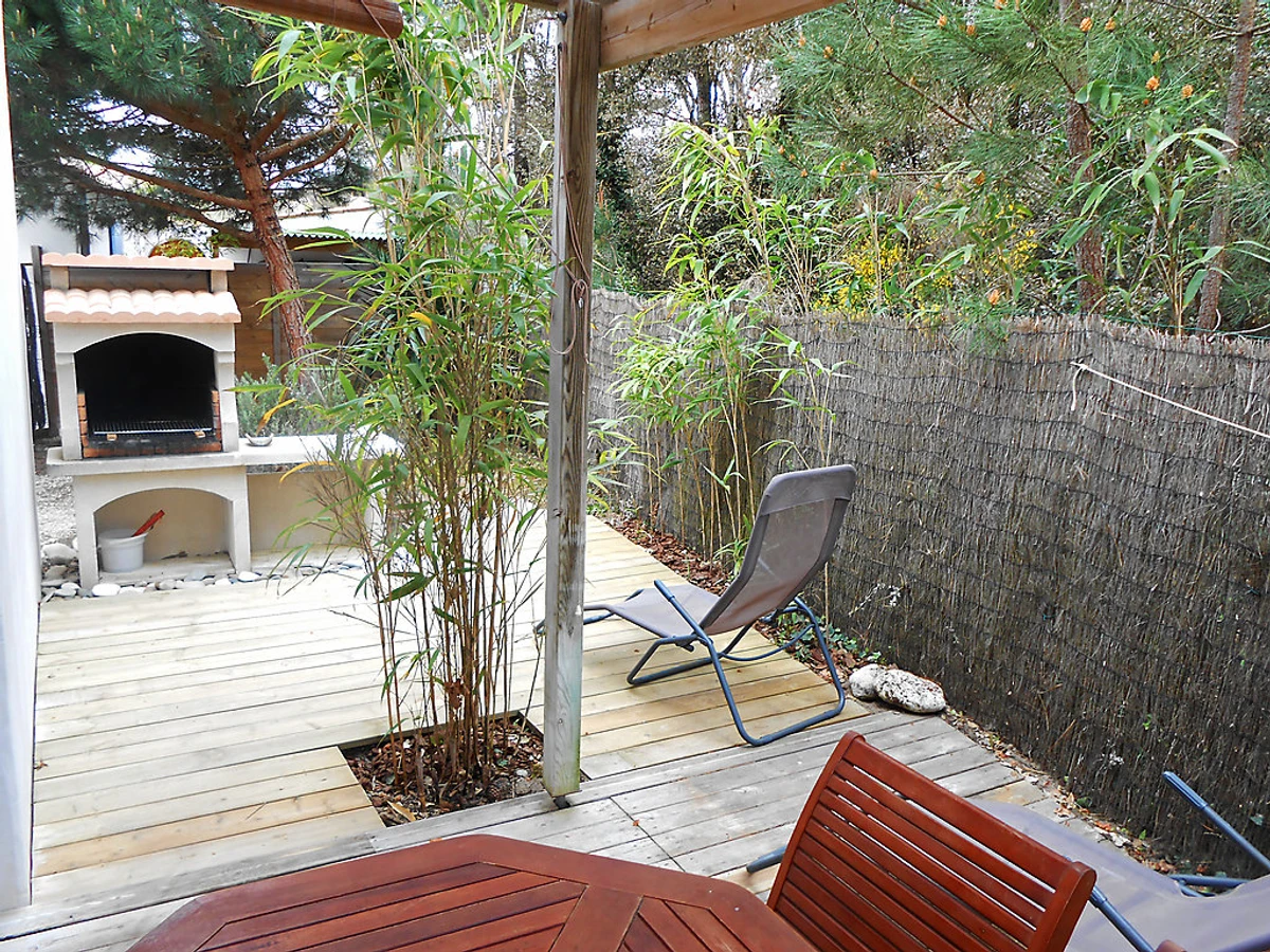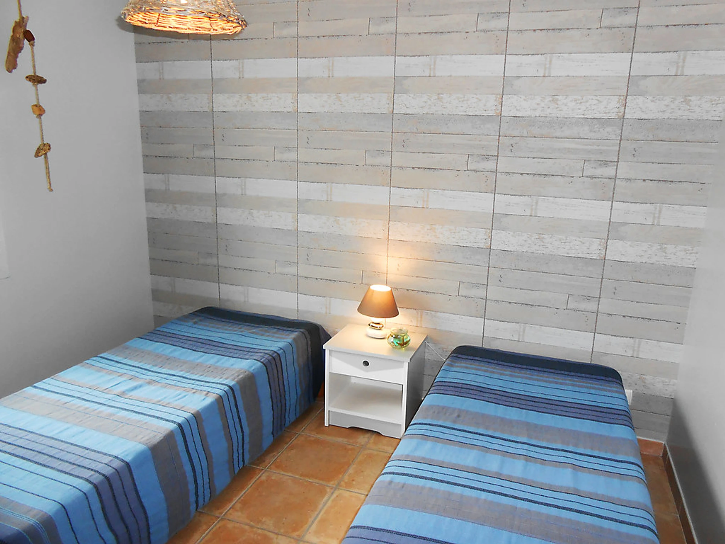 3-room house 55 m2. Practical furnishings: living/dining room with dining table and digital TV. Exit to the patio. 1 room with 1 french bed. 1 room with 2 beds (80 cm). Kitchenette (4 hot plates, oven, microwave). Shower, sep. WC. Electric heating. Terrace 12 m2, patio 100 m2. Terrace furniture, barbecue. Facilities: washing machine. Maximum 1 pet/ dog allowed.